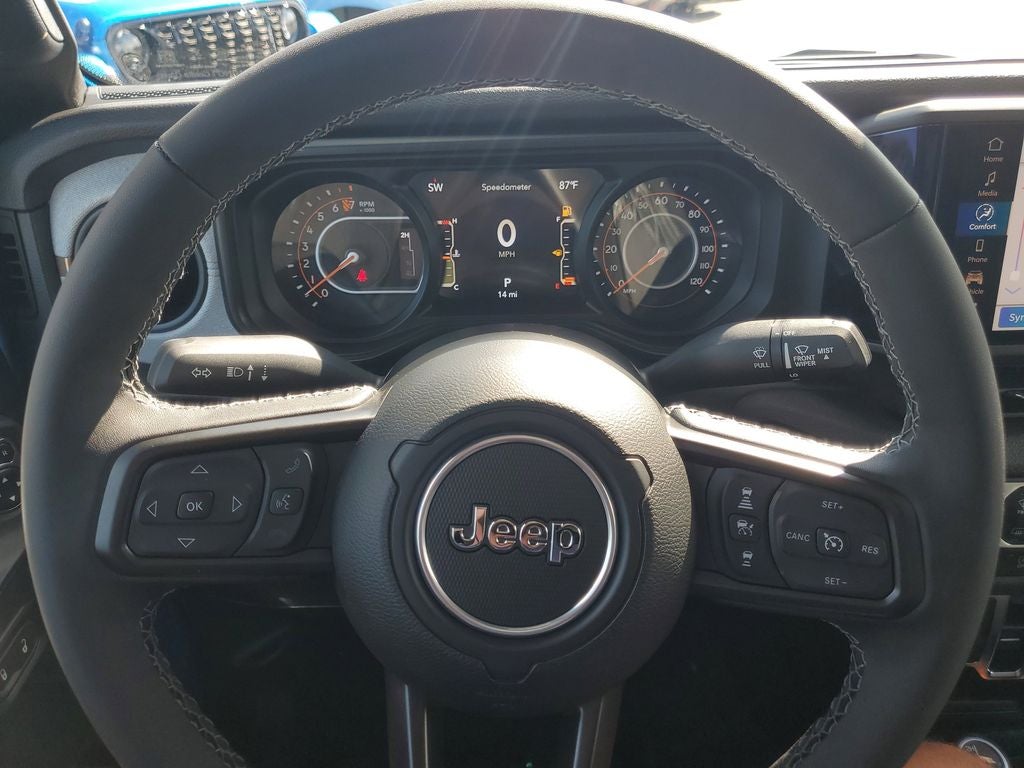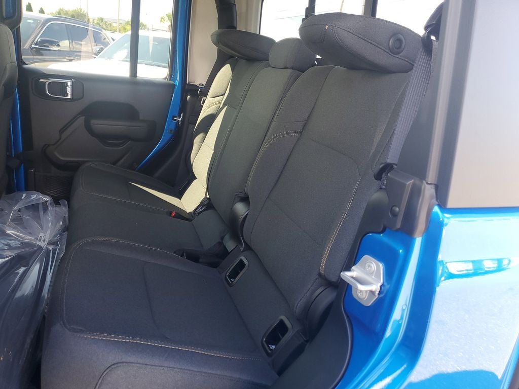Convenience Group (Corning Gorilla Glass, Daytime Running Lamp System, Emergency/Assistance Call, Front Door Locks 2-Door Passive Entry, Heated Front Seats, Heated Steering Wheel, Remote Start System, and Universal Garage Door Opener), Quick Order Package 24S Sport S (Advanced Brake Assist, Automatic Headlamps, Deep Tint Sunscreen Windows, Enhanced Adaptive Cruise Control, Full Speed Forward Collision Warning Plus, Normal Duty Plus Suspension, Power Heated Mirrors, Premium Wrapped Steering Wheel, Security Alarm, Sun Visors w/Illuminated Vanity Mirrors, and Wheels: 17 x 7.5 Gray), Safety Group (Auto High Beam Headlamp Control, Blind Spot & Cross Path Detection, LED Taillamps, and ParkSense Rear Park Assist System), Trailer Tow & Aux Switch Group (Auxiliary Switches, Class IV Receiver Hitch, Heavy-Duty Engine Cooling, and Trailer Hitch Zoom), 110 MPH Vehicle Max Speed Calibration, 12.3 Touchscreen Display, 3.73 Rear Axle Ratio, 4-Wheel Disc Brakes, 4G LTE Wi-Fi Hot Spot, 8 Speakers, ABS brakes, Air Conditioning, Alexa Built-In, AM/FM radio: SiriusXM, Apple CarPlay, Apple CarPlay/Android Auto, Black 3-Piece Hard Top, Brake assist, Cloth Low-Back Bucket Seats, Compass, Connectivity - US/Canada, Delay-off headlights, Driver door bin, Driver vanity mirror, Dual front impact airbags, Dual front side impact airbags, Electronic Stability Control, Freedom Panel Storage Bag, Front anti-roll bar, Front Bucket Seats, Front Center Armrest w/Storage, Front fog lights, Front License Plate Bracket, Front reading lights, Google Android Auto, Illuminated entry, Integrated roll-over protection, Low tire pressure warning, MOPAR All-Weather Slush Mats, Mopar Bright Door Sills, MOPAR Spray In Bedliner, Normal Duty Suspension, Occupant sensing airbag, Outside temperature display, Overhead airbag, Panic alarm, ParkView Rear Back-Up Camera, Passenger door bin, Passenger vanity mirror, Power steering, Power windows, Radio data system, Radio: Uconnect 5 w/12.3 Display, Rear anti-roll bar, Rear reading lights, Rear Sliding Window, Rear Window Defroster, Remote keyless entry, Speed control, Split folding rear seat, Steering wheel mounted audio controls, Tachometer, Telescoping steering wheel, Tilt steering wheel, Traction control, Trip computer, USB Host Flip, Variably intermittent wipers, Voltmeter, and Wheels: 17 x 7.5 Black Steel Styled.