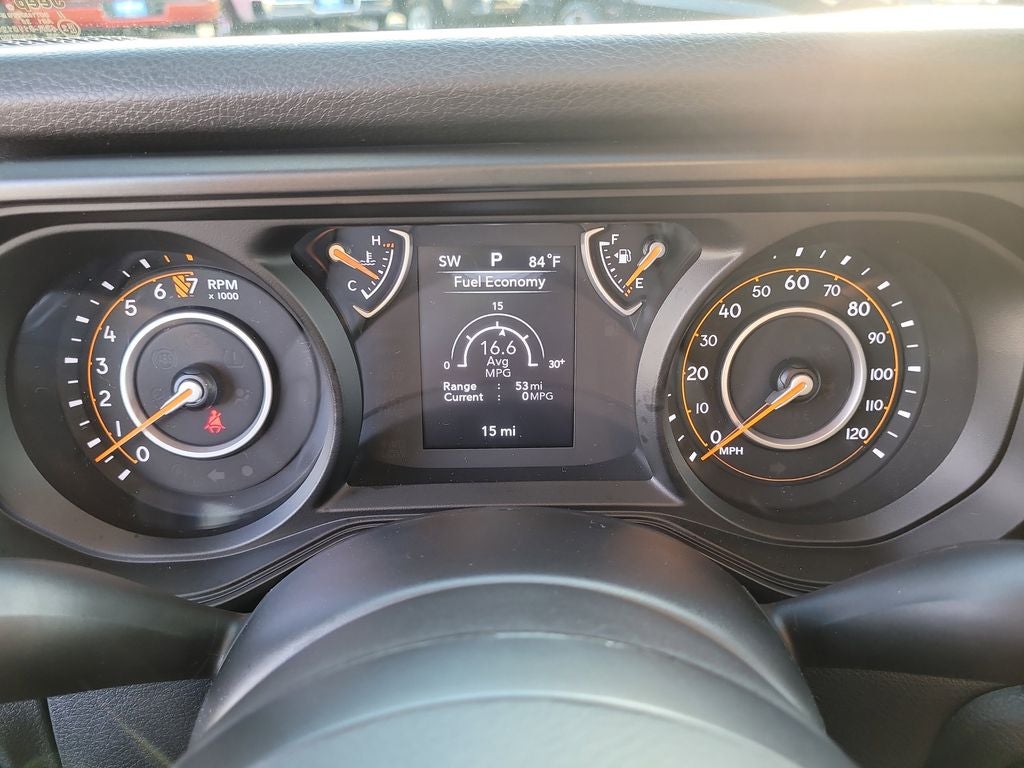 Dark Sky Appearance Package (Body Color Fender Flares (2-Piece), Daytime Running Lamp System, Mold In Color Bumper w/Gloss Black, and Performance Hood), Quick Order Package 24S Sport S (Advanced Brake Assist, Automatic Headlamps, Deep Tint Sunscreen Windows, Enhanced Adaptive Cruise Control, Full Speed Forward Collision Warning Plus, Normal Duty Plus Suspension, Power Heated Mirrors, Premium Wrapped Steering Wheel, Security Alarm, Sun Visors w/Illuminated Vanity Mirrors, and Wheels: 17 x 7.5 Gray), 110 MPH Vehicle Max Speed Calibration, 12.3 Touchscreen Display, 3.73 Rear Axle Ratio, 4-Wheel Disc Brakes, 4G LTE Wi-Fi Hot Spot, 8 Speakers, ABS brakes, Air Conditioning, Alexa Built-In, AM/FM radio: SiriusXM, Apple CarPlay, Apple CarPlay/Android Auto, Black 3-Piece Hard Top, Brake assist, Cloth Low-Back Bucket Seats, Compass, Connectivity - US/Canada, Delay-off headlights, Driver door bin, Driver vanity mirror, Dual front impact airbags, Dual front side impact airbags, Electronic Stability Control, Freedom Panel Storage Bag, Front anti-roll bar, Front Bucket Seats, Front Center Armrest w/Storage, Front fog lights, Front reading lights, Google Android Auto, Illuminated entry, Integrated roll-over protection, Low tire pressure warning, MOPAR All-Weather Slush Mats, MOPAR Doors Off Mirror Kit, MOPAR Spray In Bedliner, Normal Duty Suspension, Occupant sensing airbag, Outside temperature display, Overhead airbag, Panic alarm, ParkView Rear Back-Up Camera, Passenger door bin, Passenger vanity mirror, Power steering, Power windows, Radio data system, Radio: Uconnect 5 w/12.3 Display, Rear anti-roll bar, Rear reading lights, Rear Sliding Window, Rear Window Defroster, Remote keyless entry, Speed control, Split folding rear seat, Steering wheel mounted audio controls, Tachometer, Telescoping steering wheel, Tilt steering wheel, Traction control, Trip computer, USB Host Flip, Variably intermittent wipers, Voltmeter, and Wheels: 17 x 7.5 Black Steel Styled.