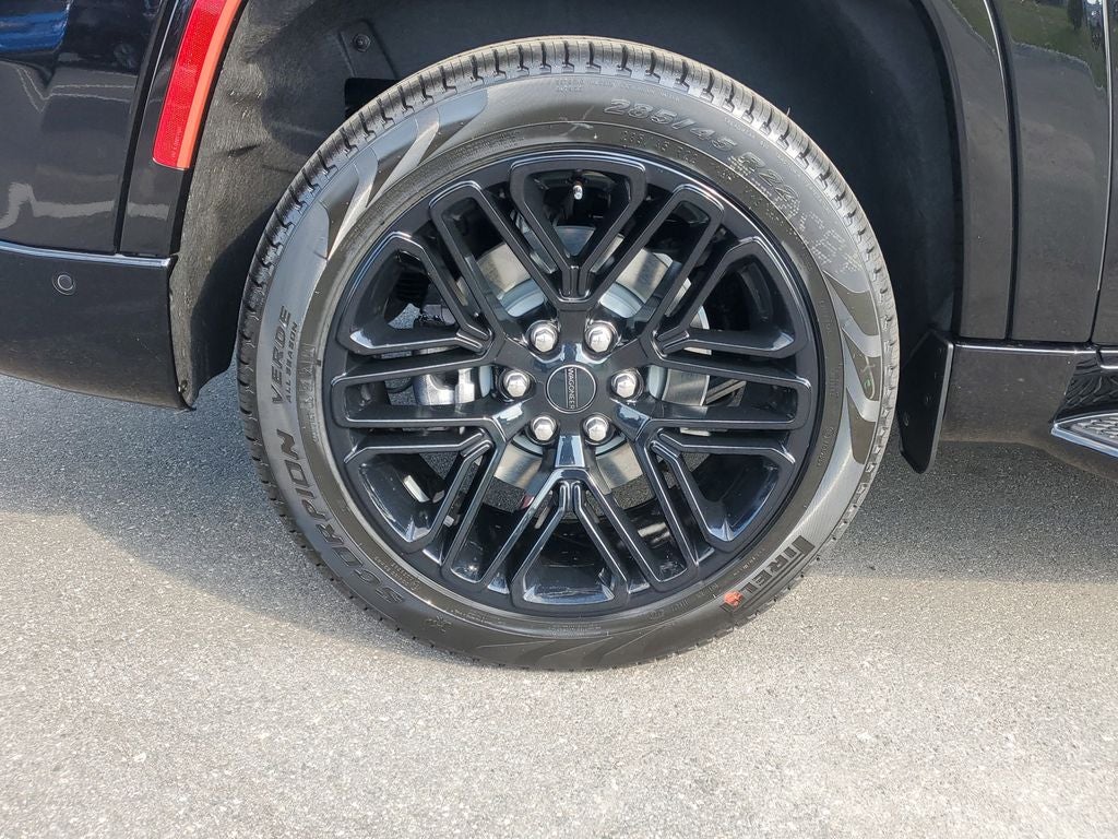 Carbide Appearance Package, Convenience Group I (2nd Row Manual Window Shades, Auto Adjust In Reverse Exterior Mirrors, Auto High Beam Headlamp Control, Auto Power Folding Exterior Mirrors, Auto Power-Folding Mirrors, Auto-Dimming Exterior Driver Mirror, Drowsy Driver Detection, Exterior Mirrors Approach Lamps, Exterior Mirrors w/Memory, Exterior Mirrors w/Supplemental Signals, Heads-Up Display, Heated Exterior Mirrors, Intersection Collision Assist System, P&P Park & Unpark Assist w/Stop System, Quadra-Lift Air Suspension, Rack Cargo Management System, Semi Active Damping, Side Distance Warning, Surround View Camera System, and Traffic Sign Recognition), HD Trailer Tow Package (118 MPH Maximum Speed Calibration, 2 Speed On Demand Transfer Case, Electronic Rear Limited Slip Differential, Heavy-Duty Engine Cooling, Removable Rear Tow Hook, Selec-Speed Control, Trailer Brake Control, Trailer Hitch Zoom, and Vapor Tow Hooks), Premium Group I (3 Panel Sunroof, Adjustable Roof Rail Crossbars, and Reversible Carpet/Vinyl Cargo Mat), Quick Order Package 25F Carbide (Piano Black Exterior Accents and Wheels: 20 x 9.0 Aluminum Painted Gloss Black), Rear Seat Video Group 1 (Amazon Fire TV Built-In, Seatback Video Screens, and Video USB Port), 10 Speakers, 3rd row seats: bench, 4-Wheel Disc Brakes, ABS brakes, Air Conditioning, Alloy wheels, AM/FM radio: SiriusXM with 360L, Anti-whiplash front head restraints, Apple CarPlay/Android Auto, Audio memory, Auto-dimming door mirrors, Auto-dimming Rear-View mirror, Auto-leveling suspension, Automatic temperature control, Brake assist, Bumpers: body-color, Compass, Delay-off headlights, Driver door bin, Driver vanity mirror, Driver's Seat Mounted Armrest, Dual front impact airbags, Dual front side impact airbags, Electronic Stability Control, Emergency communication system: Jeep Connect, Four wheel independent suspension, Front anti-roll bar, Front Bucket Seats, Front Center Armrest w/Storage, Front dual zone A/C, Front fog lights, Front reading lights, Fully automatic headlights, Garage door transmitter, Genuine wood console insert, Genuine wood dashboard insert, Genuine wood door panel insert, Heated door mirrors, Heated front seats, Heated rear seats, Heated steering wheel, Illuminated entry, Knee airbag, Leather Trimmed Bucket Seats, Low tire pressure warning, Memory seat, Navigation System, Normal Duty Suspension, Occupant sensing airbag, Outside temperature display, Overhead airbag, Overhead console, Panic alarm, ParkView Rear Back-Up Camera, Passenger door bin, Passenger seat mounted armrest, Passenger vanity mirror, Power adjustable front head restraints, Power door mirrors, Power driver seat, Power Liftgate, Power passenger seat, Power steering, Power windows, Radio data system, Radio: Uconnect 5 Nav w/10.1 Display, Rain sensing wipers, Rear air conditioning, Rear anti-roll bar, Rear reading lights, Rear seat center armrest, Rear window defroster, Rear window wiper, Reclining 3rd row seat, Remote keyless entry, Security system, Speed control, Speed-sensing steering, Speed-Sensitive Wipers, Split folding rear seat, Steering wheel memory, Steering wheel mounted audio controls, Tachometer, Telescoping steering wheel, Tilt steering wheel, Traction control, Trip computer, Turn signal indicator mirrors, Variably intermittent wipers, Ventilated front seats, Voltmeter, Wheels: 20 x 9.0 Premium 2 Aluminum, and Wheels: 22 x 9.0 Painted Gloss Black.