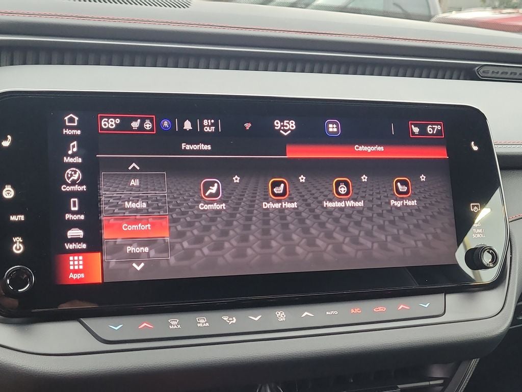 Quick Order Package 22P Scat Pack, Two Tone Paint Group, AWD, Black Artificial Leather, 10 Speakers, 2-Way Manual Adjust Front Head Restraints, 2-Way Power Driver Lumbar Adjust, 4-Wheel Disc Brakes, 4G LTE Wi-Fi Hot Spot, 8-Way Power Driver Seat Adjust, ABS brakes, Active Noise Control System, Air Conditioning, Alloy wheels, AM/FM radio: SiriusXM w/360L, Apple CarPlay/Android Auto, Auto-dimming Rear-View mirror, Automatic temperature control, Black Seats, Brake assist, Bumpers: body-color, Compass, Connectivity - US/Canada, Delay-off headlights, Disassociated Touchscreen Display, Driver door bin, Driver vanity mirror, Dual front impact airbags, Dual front side impact airbags, Electronic Stability Control, Emergency communication system: Dodge Connect, Four wheel independent suspension, Front anti-roll bar, Front Bucket Seats, Front Center Armrest, Front dual zone A/C, Front reading lights, Fully automatic headlights, Garage door transmitter, Heated door mirrors, Heated Exterior Mirrors, Heated Front Seats, Heated front seats, Heated steering wheel, Illuminated entry, Integrated Center Stack Radio, Knee airbag, Leather Shift Knob, Leatherette/Cloth Performance Seats, Low Back Bucket Seats, Low tire pressure warning, Occupant sensing airbag, Outside temperature display, Overhead airbag, Overhead console, Panic alarm, ParkView Rear Back-Up Camera, Passenger door bin, Passenger vanity mirror, Power Adjust Mirrors, Power door mirrors, Power driver seat, Power steering, Power windows, Radio data system, Radio: Uconnect 5 with 12.3 Display, Rear anti-roll bar, Rear reading lights, Rear seat center armrest, Rear window defroster, Remote keyless entry, Security system, Speed control, Split folding rear seat, Spoiler, Sport steering wheel, Steering wheel mounted audio controls, Tachometer, Telescoping steering wheel, Tilt steering wheel, Traction control, Trip computer, Variably intermittent wipers, Wheels: 20 x 10 Aluminum, Wireless Apple CarPlay, and Wireless Google Android Auto.