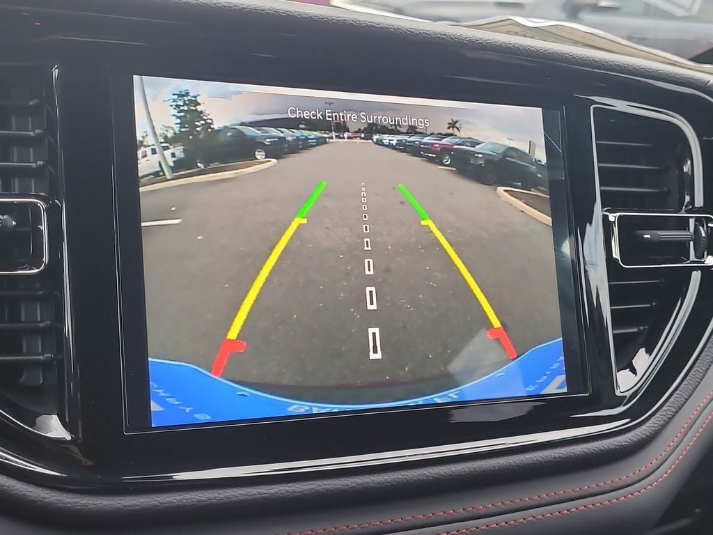 Blacktop Package (Black Roof Rails, Gloss Black Badges, Gloss Black Exterior Mirrors, GT Gloss Black Badging, Integrated Roof Rail Crossbars, Satin Black Dodge Tail Lamp Badge, and Wheels: 20 x 8 Black Noise Aluminum), Quick Order Package 2BD GT, Trailer Tow Group IV (7 and 4 Pin Wiring Harness, Blind Spot with Trailer Detection, Class IV Receiver Hitch, Heavy-Duty Engine Cooling, Rear Load Leveling Suspension, and Trailer Brake Control), 18 x 8 Painted Aluminum Wheels, 3.27 Rear Axle Ratio, 3rd row seats: split-bench, 4-Wheel Disc Brakes, 6 Speakers, ABS brakes, Air Conditioning, Alloy wheels, AM/FM radio: SiriusXM w/360L, Apple CarPlay/Android Auto, Auto-dimming Rear-View mirror, Auto-leveling suspension, Automatic temperature control, Brake assist, Bumpers: body-color, Cloth Bucket Seats with Shift Insert, Compass, Delay-off headlights, Driver door bin, Driver vanity mirror, Dual front impact airbags, Dual front side impact airbags, Electronic Stability Control, Emergency communication system: Dodge Connect, Four wheel independent suspension, Front anti-roll bar, Front Bucket Seats, Front Center Armrest w/Storage, Front dual zone A/C, Front License Plate Bracket, Front reading lights, Fully automatic headlights, Garage door transmitter, Heated door mirrors, Heated front seats, Heated steering wheel, Illuminated entry, Knee airbag, Leather steering wheel, Low tire pressure warning, Mopar Black Tubular Side Steps, Navigation System, Occupant sensing airbag, Outside temperature display, Overhead airbag, Overhead console, Panic alarm, ParkView Rear Back-Up Camera, Passenger door bin, Passenger vanity mirror, Power door mirrors, Power driver seat, Power Liftgate, Power steering, Power windows, Radio data system, Radio: Uconnect 5 Nav with 10.1 Display, Rear air conditioning, Rear anti-roll bar, Rear reading lights, Rear seat center armrest, Rear window defroster, Rear window wiper, Remote keyless entry, Speed control, Speed-sensing steering, Speed-Sensitive Wipers, Split folding rear seat, Spoiler, Sport steering wheel, Steering wheel mounted audio controls, Tachometer, Telescoping steering wheel, Tilt steering wheel, Traction control, Trip computer, Variably intermittent wipers, and Voltmeter.