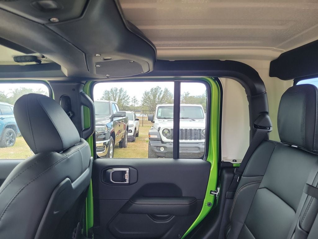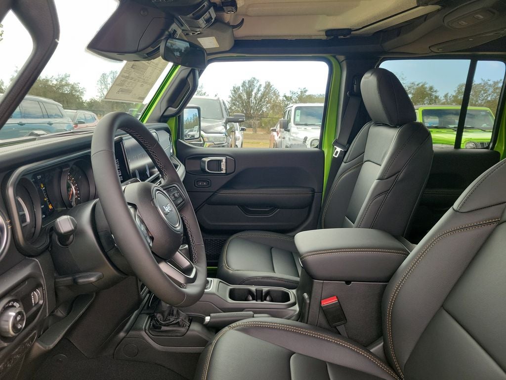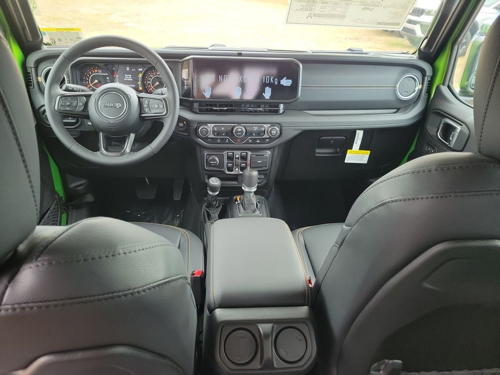 LED Headlamp and Fog Lamp Group (Daytime Running Lamps LED Accents, Front LED Fog Lamps, and LED Premium Reflector Headlamps), Quick Order Package 24H Sahara (110 Mph Vehicle Max Speed Calibration, 2-Piece Body Color Fender Flares, Advanced Brake Assist, Air Conditioning with Auto Temp Control, Automatic Headlamps, Body Color 3-Piece Hard Top, Central ADAS Decision Module (CADM), Cluster 7.0 TFT Color Display, Corning Gorilla Glass, Daytime Running Lamp System, Deep Tint Sunscreen Windows, Emergency/Assistance Call, Freedom Panel Storage Bag, Front Door Locks 2-Door Passive Entry, Full Length Floor Console Premium Armrest, Full Speed Forward Collision Warning Plus, Hard Seat Back, Heated Front Seats, Heated Steering Wheel, Leather Wrapped Park Brake Handle, Leather Wrapped Shift Knob, Normal Duty Plus Suspension, Power 4-Way Driver Lumbar Adjust, Power 4-Way Passenger Lumbar Adjust, Power Adjust 8-Way Driver Seat, Power Adjust 8-Way Front Passenger Seat, Power Heated Mirrors, Premium Door Trim Panel, Premium McKinley Trimmed Seats, Premium Wrapped Steering Wheel, Rear Armrest with Cupholder Seat, Rear Sliding Window, Rear Window Defroster, Remote Start System, Sahara, Sahara Badge Neutral Gray, Security Alarm, Sun Visors with Illuminated Vanity Mirrors, Universal Garage Door Opener, and Wheels: 18 x 7.5 Machined/Painted Gray), Safety Group (Auto High Beam Headlamp Control, Blind Spot and Cross Path Detection, LED Taillamps, and ParkSense Rear Park Assist System), Trailer Tow and Auxiliary Switch Group (Auxiliary Switches, Class IV Receiver Hitch, Heavy-Duty Engine Cooling, and Trailer Hitch Zoom), 12.3 Touchscreen Display, 3.73 Rear Axle Ratio, 4-Wheel Disc Brakes, 4G LTE Wi-Fi Hot Spot, 8 Speakers, ABS brakes, Air Conditioning, Alexa Built-in, AM/FM radio: SiriusXM with 360L, Apple CarPlay, Apple CarPlay/Android Auto, Brake assist, Compass, Connectivity - US/Canada, Delay-off headlights, Driver door bin, Driver vanity mirror, Dual front impact airbags, Dual front side impact airbags, Electronic Stability Control, For Details, Visit DriveUconnect.com, Front anti-roll bar, Front Bucket Seats, Front Center Armrest w/Storage, Front fog lights, Front License Plate Bracket, Front reading lights, Google Android Auto, Illuminated entry, Integrated Center Stack Radio, Integrated roll-over protection, Low tire pressure warning, MOPAR All-Weather Slush Mats, MOPAR Doors Off Mirror Kit, MOPAR Spray in Bedliner, Normal Duty Suspension, Occupant sensing airbag, Outside temperature display, Overhead airbag, Panic alarm, ParkView Rear Back-Up Camera, Passenger door bin, Passenger vanity mirror, Power steering, Power windows, Radio data system, Radio: Uconnect 5 with 12.3 Display, Rear anti-roll bar, Rear reading lights, Remote keyless entry, SiriusXM Radio Service, SiriusXM with 360L, Speed control, Split folding rear seat, Steering wheel mounted audio controls, Tachometer, Telescoping steering wheel, Tilt steering wheel, Traction control, Trip computer, USB Host Flip, Variably intermittent wipers, Voltmeter, and Wheels: 17 x 7.5 Black Steel StyleD.