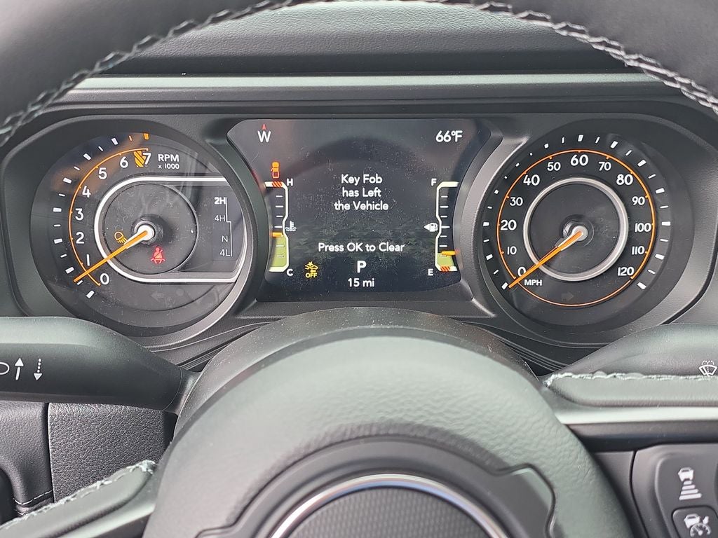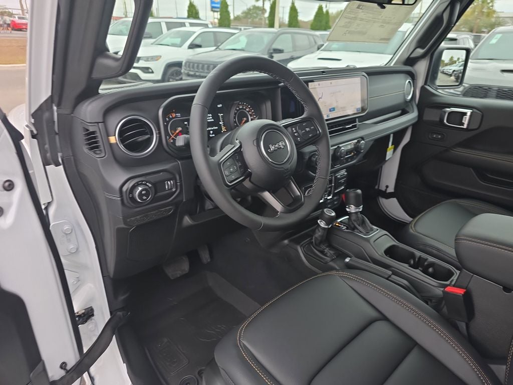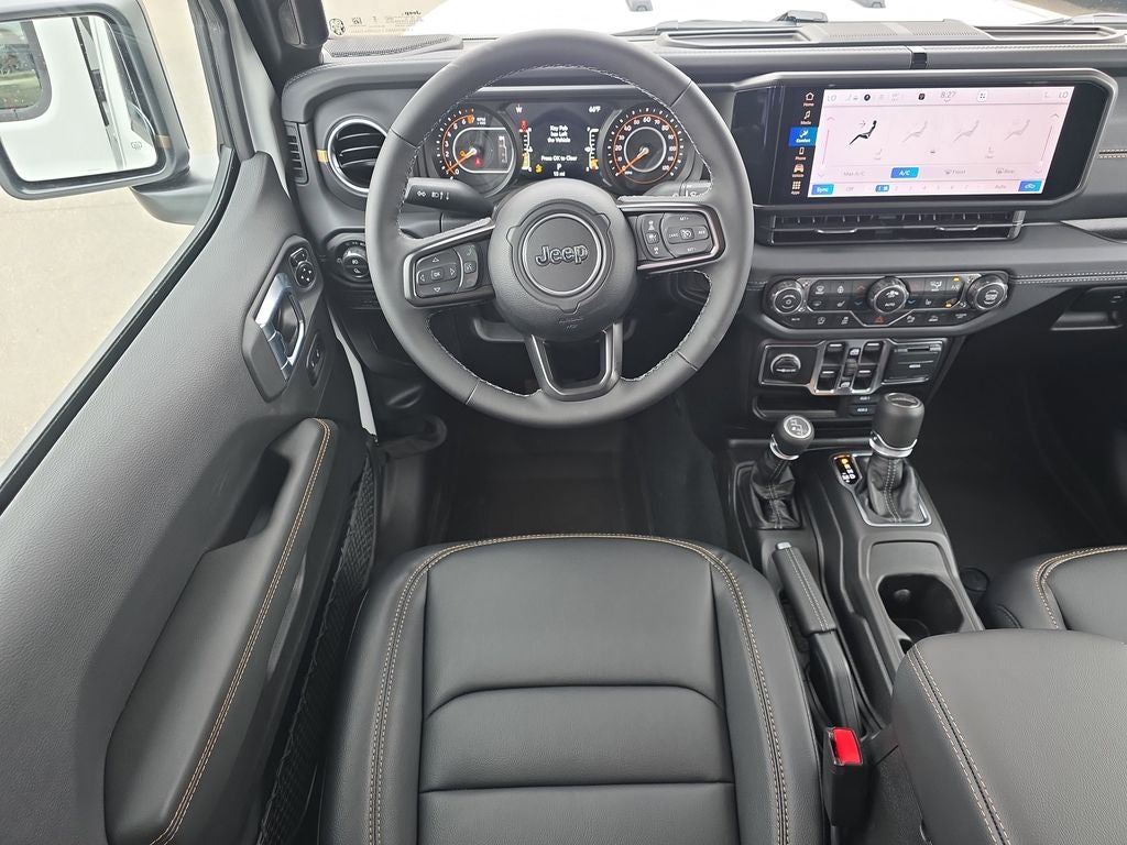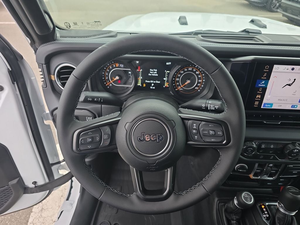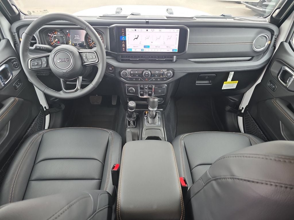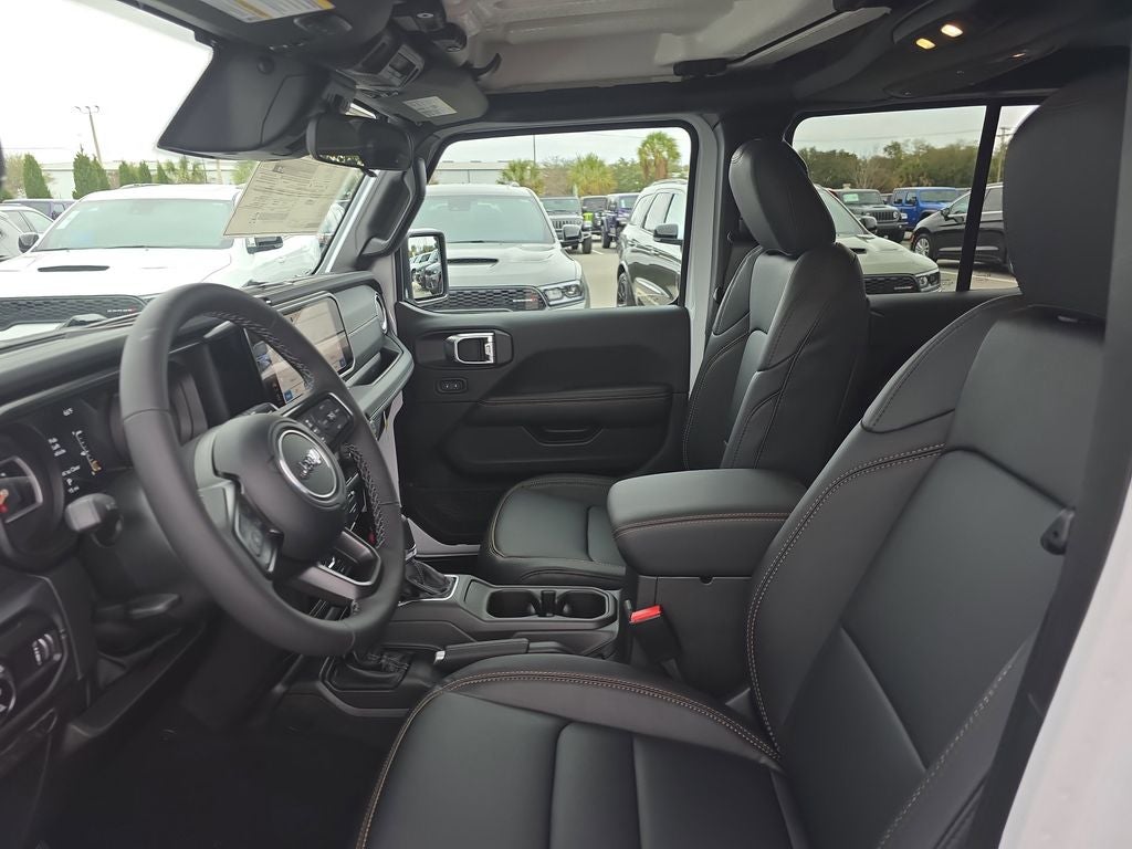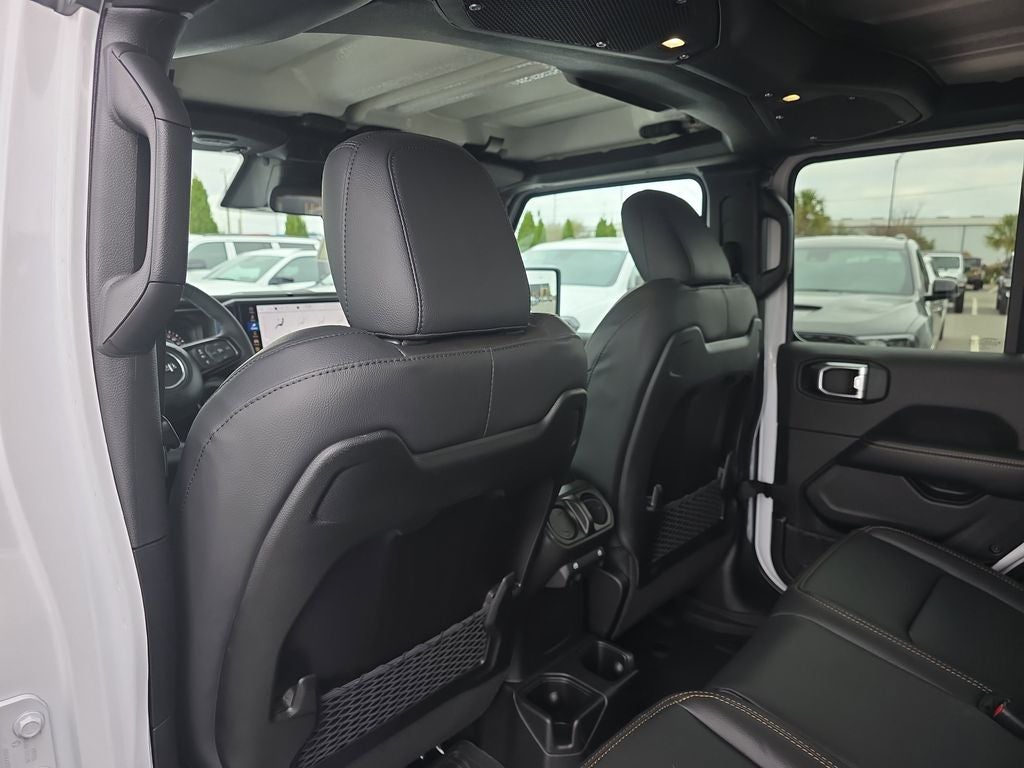 LED Headlamp and Fog Lamp Group (Daytime Running Lamps LED Accents, Front LED Fog Lamps, and LED Premium Reflector Headlamps), Quick Order Package 24H Sahara (110 Mph Vehicle Max Speed Calibration, 2-Piece Body Color Fender Flares, Advanced Brake Assist, Air Conditioning with Auto Temp Control, Automatic Headlamps, Body Color 3-Piece Hard Top, Central ADAS Decision Module (CADM), Cluster 7.0 TFT Color Display, Corning Gorilla Glass, Daytime Running Lamp System, Deep Tint Sunscreen Windows, Emergency/Assistance Call, Freedom Panel Storage Bag, Front Door Locks 2-Door Passive Entry, Full Length Floor Console Premium Armrest, Full Speed Forward Collision Warning Plus, Hard Seat Back, Heated Front Seats, Heated Steering Wheel, Leather Wrapped Park Brake Handle, Leather Wrapped Shift Knob, Normal Duty Plus Suspension, Power 4-Way Driver Lumbar Adjust, Power 4-Way Passenger Lumbar Adjust, Power Adjust 8-Way Driver Seat, Power Adjust 8-Way Front Passenger Seat, Power Heated Mirrors, Premium Door Trim Panel, Premium McKinley Trimmed Seats, Premium Wrapped Steering Wheel, Rear Armrest with Cupholder Seat, Rear Sliding Window, Rear Window Defroster, Remote Start System, Sahara, Sahara Badge Neutral Gray, Security Alarm, Sun Visors with Illuminated Vanity Mirrors, Universal Garage Door Opener, and Wheels: 18 x 7.5 Machined/Painted Gray), Safety Group (Auto High Beam Headlamp Control, Blind Spot and Cross Path Detection, LED Taillamps, and ParkSense Rear Park Assist System), Trailer Tow and Auxiliary Switch Group (Auxiliary Switches, Class IV Receiver Hitch, Heavy-Duty Engine Cooling, and Trailer Hitch Zoom), 12.3 Touchscreen Display, 3.73 Rear Axle Ratio, 4-Wheel Disc Brakes, 4G LTE Wi-Fi Hot Spot, 8 Speakers, ABS brakes, Air Conditioning, Alexa Built-in, AM/FM radio: SiriusXM with 360L, Apple CarPlay, Apple CarPlay/Android Auto, Brake assist, Compass, Connectivity - US/Canada, Delay-off headlights, Driver door bin, Driver vanity mirror, Dual front impact airbags, Dual front side impact airbags, Electronic Stability Control, For Details, Visit DriveUconnect.com, Front anti-roll bar, Front Bucket Seats, Front Center Armrest w/Storage, Front fog lights, Front License Plate Bracket, Front reading lights, Google Android Auto, Illuminated entry, Integrated Center Stack Radio, Integrated roll-over protection, Low tire pressure warning, MOPAR All-Weather Slush Mats, MOPAR Doors Off Mirror Kit, MOPAR Spray in Bedliner, Normal Duty Suspension, Occupant sensing airbag, Outside temperature display, Overhead airbag, Panic alarm, ParkView Rear Back-Up Camera, Passenger door bin, Passenger vanity mirror, Power steering, Power windows, Radio data system, Radio: Uconnect 5 with 12.3 Display, Rear anti-roll bar, Rear reading lights, Remote keyless entry, SiriusXM Radio Service, SiriusXM with 360L, Speed control, Split folding rear seat, Steering wheel mounted audio controls, Tachometer, Telescoping steering wheel, Tilt steering wheel, Traction control, Trip computer, USB Host Flip, Variably intermittent wipers, Voltmeter, and Wheels: 17 x 7.5 Black Steel StyleD.