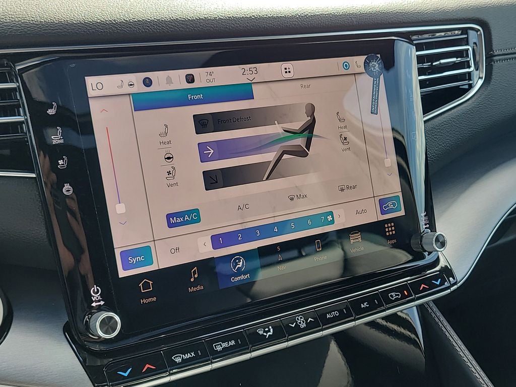 ABS brakes, Active Cruise Control, Alloy wheels, Compass, Electronic Stability Control, Front dual zone A/C, Heated door mirrors, Heated Exterior Mirrors, Heated front seats, Illuminated entry, Low tire pressure warning, Navigation System, Power Liftgate, Remote keyless entry, Traction control, 118 MPH Maximum Speed Calibration, 3.55 Rear Axle Ratio, 3rd row seats: bench, 4-Wheel Disc Brakes, 9 Speakers, Air Conditioning, AM/FM radio: SiriusXM with 360L, Anti-whiplash front head restraints, Apple CarPlay/Android Auto, Audio memory, Auto Adjust in Reverse Exterior Mirrors, Auto High-beam Headlights, Auto-dimming door mirrors, Auto-Dimming Exterior Driver Mirror, Auto-dimming Rear-View mirror, Auto-leveling suspension, Automatic temperature control, Brake assist, Bumpers: body-color, Delay-off headlights, Driver door bin, Driver vanity mirror, Driver's Seat Mounted Armrest, Dual front impact airbags, Dual front side impact airbags, Emergency communication system: Jeep Connect, Exterior Mirrors Approach Lamps, Exterior Mirrors with Memory, Exterior Mirrors with Supplemental Signals, Exterior Parking Camera Rear, Four wheel independent suspension, Front anti-roll bar, Front Bucket Seats, Front Center Armrest w/Storage, Front fog lights, Front reading lights, Fully automatic headlights, Garage door transmitter, Heated steering wheel, Knee airbag, Leather Trimmed Bucket Seats, Memory seat, Normal Duty Suspension, Occupant sensing airbag, Outside temperature display, Overhead airbag, Overhead console, Panic alarm, Passenger door bin, Passenger seat mounted armrest, Passenger vanity mirror, Power door mirrors, Power driver seat, Power passenger seat, Power steering, Power windows, Radio data system, Radio: Uconnect 5 Nav with 12 Display, Rain sensing wipers, Rear air conditioning, Rear anti-roll bar, Rear reading lights, Rear seat center armrest, Rear window defroster, Rear window wiper, Reclining 3rd row seat, Security system, Speed control, Speed-sensing steering, Speed-Sensitive Wipers, Split folding rear seat, Steering wheel memory, Steering wheel mounted audio controls, Tachometer, Telescoping steering wheel, Tilt steering wheel, Trip computer, Turn signal indicator mirrors, Variably intermittent wipers, Ventilated front seats, Voltmeter, and Wheels: 20 x 9.0 Machine Face Painted Aluminum.