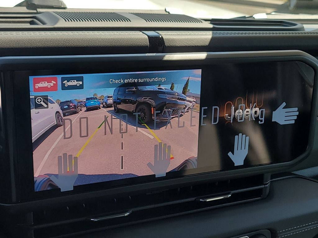 Cargo Group with Trail Rail System (Exterior 115V AC Outlet, Lockable Rear Underseat Storage, Roll-Up Tonneau Cover, and Trail Rails), Quick Order Package 24A Mojave X (Alpine Premium Audio System, Auto High Beam Headlamp Control, Auto-Dimming Rear-View Mirror, Blind Spot and Cross Path Detection, Bluetooth® Wireless Speaker, Body Color 3-Piece Hard Top, Body Color Rubicon Highline Flare, Freedom Panel Storage Bag, Full Length Floor Console Premium Armrest, Heated Front Seats, Heated Steering Wheel, Integrated Off-Road Camera, Integrated Voice Command with Bluetooth®, Leather Trimmed Bucket Seats, Leather Wrapped Park Brake Handle, Leather Wrapped Shift Knob, Mojave Top Hood Decal, MOPAR Hardtop Headliner, ParkSense Rear Park Assist System, Power 4-Way Driver Lumbar Adjust, Power 4-Way Passenger Lumbar Adjust, Power Adjust 8-Way Driver Seat, Power Adjust 8-Way Front Passenger Seat, Premium Door Trim Panel, Radio: Uconnect 5 Navigation with 12.3 Display, Rear Armrest with Cupholder Seat, Rear Sliding Window, Rear Window Defroster, Steel Front Bumper, Steel Rear Bumper, Universal Garage Door Opener, and USB Host Flip), 110 Mph Vehicle Max Speed Calibration, 12.3 Touchscreen Display, 4-Wheel Disc Brakes, 4.10 Rear Axle Ratio, 4G LTE Wi-Fi Hot Spot, 8 Speakers, ABS brakes, Air Conditioning, Alexa Built-in, Alloy wheels, AM/FM radio: SiriusXM with 360L, Apple CarPlay, Apple CarPlay/Android Auto, Automatic temperature control, Brake assist, Compass, Connectivity - US/Canada, Delay-off headlights, Driver door bin, Driver vanity mirror, Dual front impact airbags, Dual front side impact airbags, Electronic Stability Control, Emergency communication system: Jeep Connect, For Details, Visit DriveUconnect.com, Front anti-roll bar, Front Bucket Seats, Front Center Armrest w/Storage, Front dual zone A/C, Front fog lights, Front License Plate Bracket, Front reading lights, Fully automatic headlights, Google Android Auto, Heated door mirrors, Heavy Duty Suspension with Gas Shocks, Illuminated entry, Integrated Center Stack Radio, Integrated roll-over protection, Jeep Trail Rated Kit, Low tire pressure warning, Manufacturer's Statement of Origin, Mopar Bright Door Sills, MOPAR Doors Off Mirror Kit, MOPAR Spray in Bedliner, MOPAR Sunrider For Hardtop, MOPAR Tool Kit JPP/Jeep, MOPAR Triple Hoop Grille Guard, Occupant sensing airbag, Outside temperature display, Overhead airbag, Panic alarm, Passenger door bin, Passenger vanity mirror, Power door mirrors, Power steering, Power windows, Premium Cloth Seats with Sport Bolsters, Radio data system, Radio: Uconnect 5 with 12.3 Display, Rear anti-roll bar, Rear reading lights, Remote keyless entry, Security system, SiriusXM Radio Service, SiriusXM with 360L, Speed control, Split folding rear seat, Steering wheel mounted audio controls, Tachometer, Telescoping steering wheel, Tilt steering wheel, Traction control, Trip computer, Variably intermittent wipers, Voltmeter, Wheels: 17 x 7.5 Dark Gray Painted, and Wheels: 17 x 7.5 Machined/Painted Dark GraY.