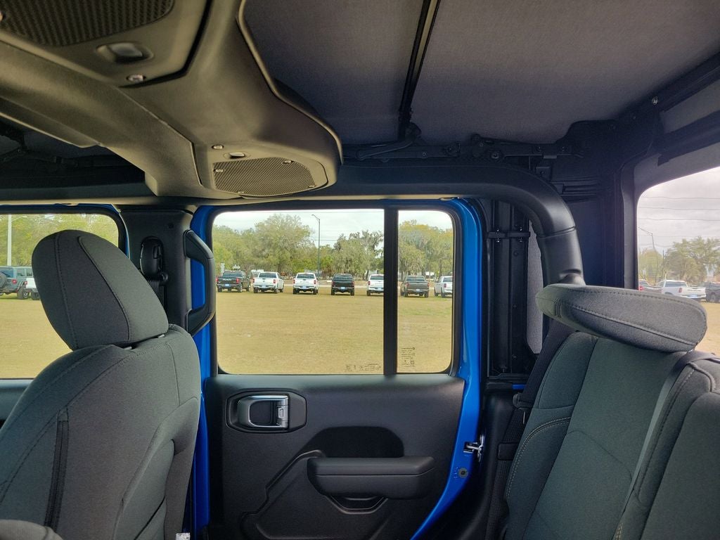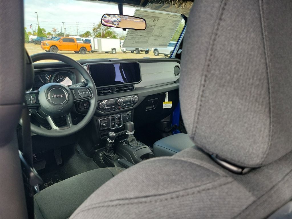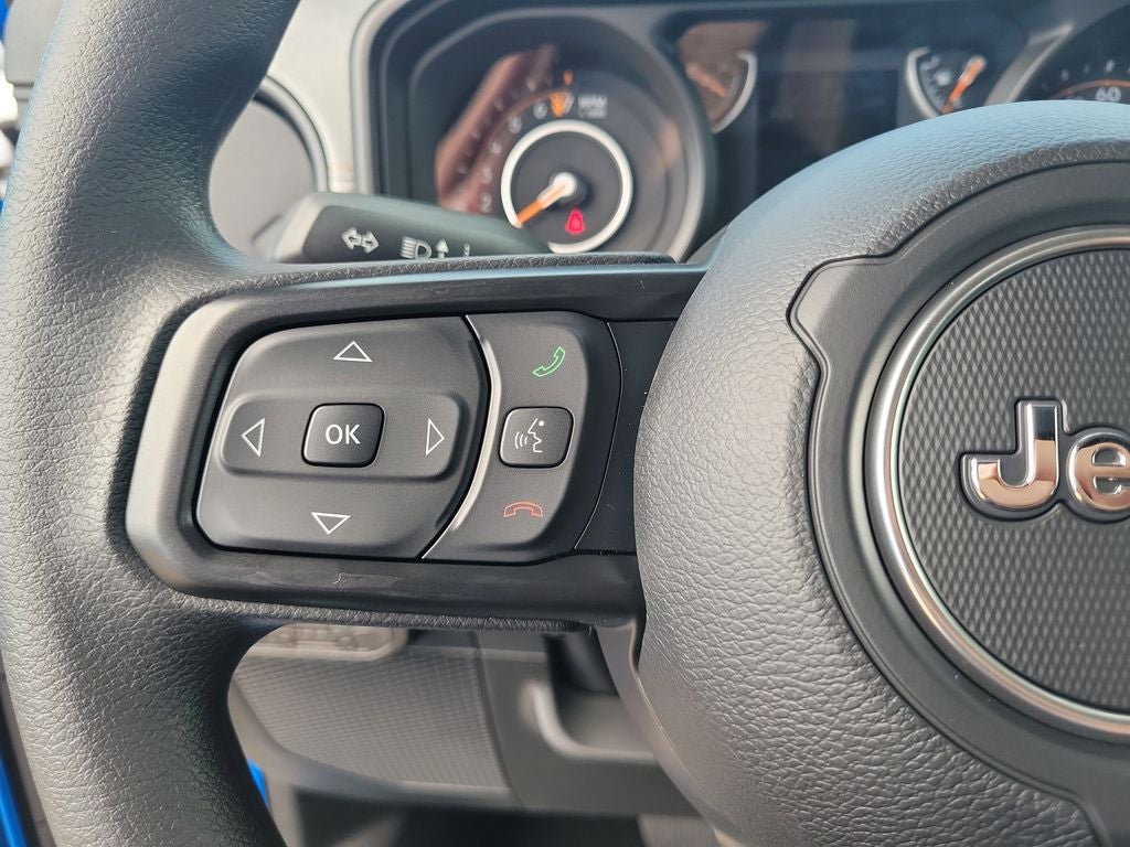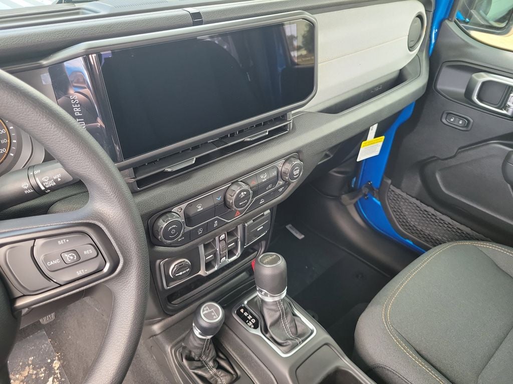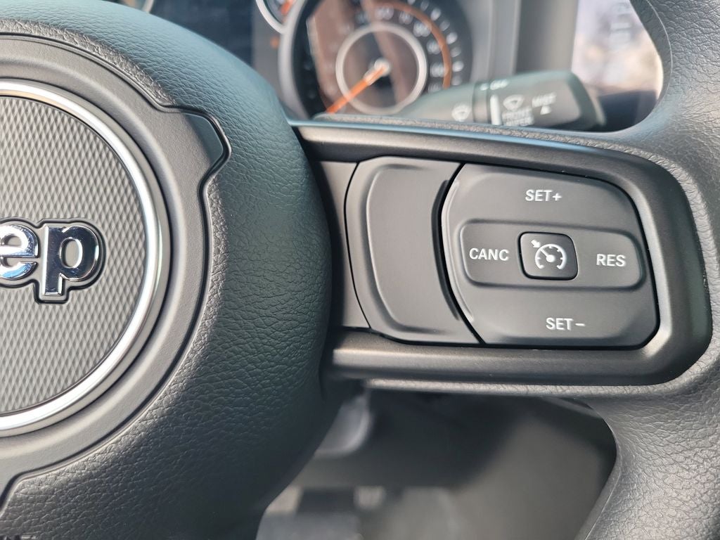 Quick Order Package 24B Sport, 110 Mph Vehicle Max Speed Calibration, 12.3 Touchscreen Display, 3.73 Rear Axle Ratio, 4-Wheel Disc Brakes, 4G LTE Wi-Fi Hot Spot, 8 Speakers, ABS brakes, Air Conditioning, Alexa Built-in, AM/FM radio: SiriusXM with 360L, Apple CarPlay, Apple CarPlay/Android Auto, Brake assist, Compass, Connectivity - US/Canada, Delay-off headlights, Driver door bin, Driver vanity mirror, Dual front impact airbags, Dual front side impact airbags, Electronic Stability Control, For Details, Visit DriveUconnect.com, Front anti-roll bar, Front Bucket Seats, Front Center Armrest w/Storage, Front fog lights, Front License Plate Bracket, Front reading lights, Google Android Auto, Illuminated entry, Integrated Center Stack Radio, Integrated roll-over protection, Low tire pressure warning, Manufacturer's Statement of Origin, MOPAR All-Weather Slush Mats, MOPAR American Flag Hood Decal, MOPAR Doors Off Mirror Kit, MOPAR Spray in Bedliner, Normal Duty Suspension, Occupant sensing airbag, Outside temperature display, Overhead airbag, Panic alarm, ParkView Rear Back-Up Camera, Passenger door bin, Passenger vanity mirror, Power steering, Power windows, Radio data system, Radio: Uconnect 5 with 12.3 Display, Rear anti-roll bar, Rear reading lights, Remote keyless entry, SiriusXM Radio Service, SiriusXM with 360L, Soft Top Window Storage Bag, Speed control, Split folding rear seat, Steering wheel mounted audio controls, Tachometer, Telescoping steering wheel, Tilt steering wheel, Traction control, Trip computer, USB Host Flip, Variably intermittent wipers, Voltmeter, and Wheels: 17 x 7.5 Black Steel StyleD.