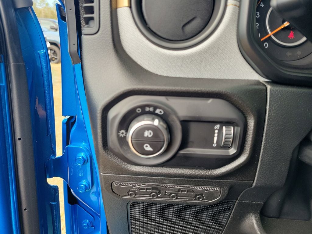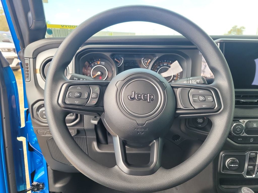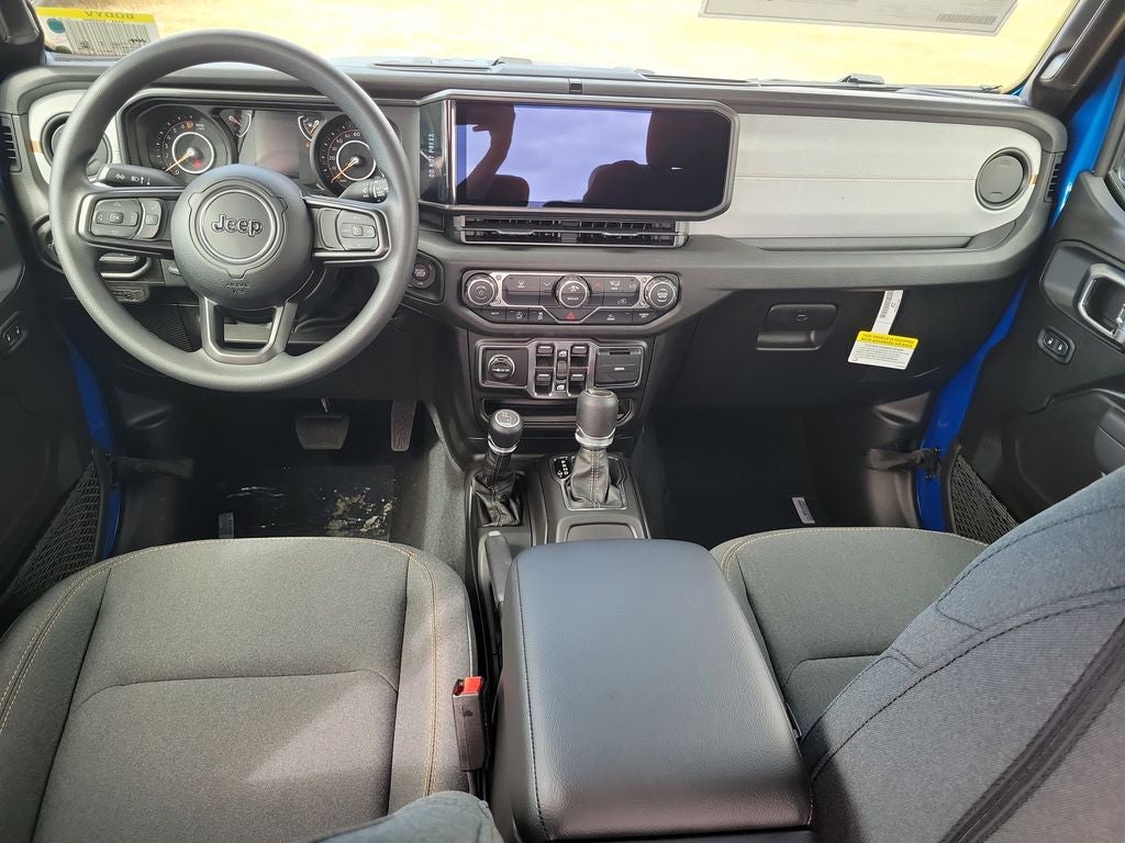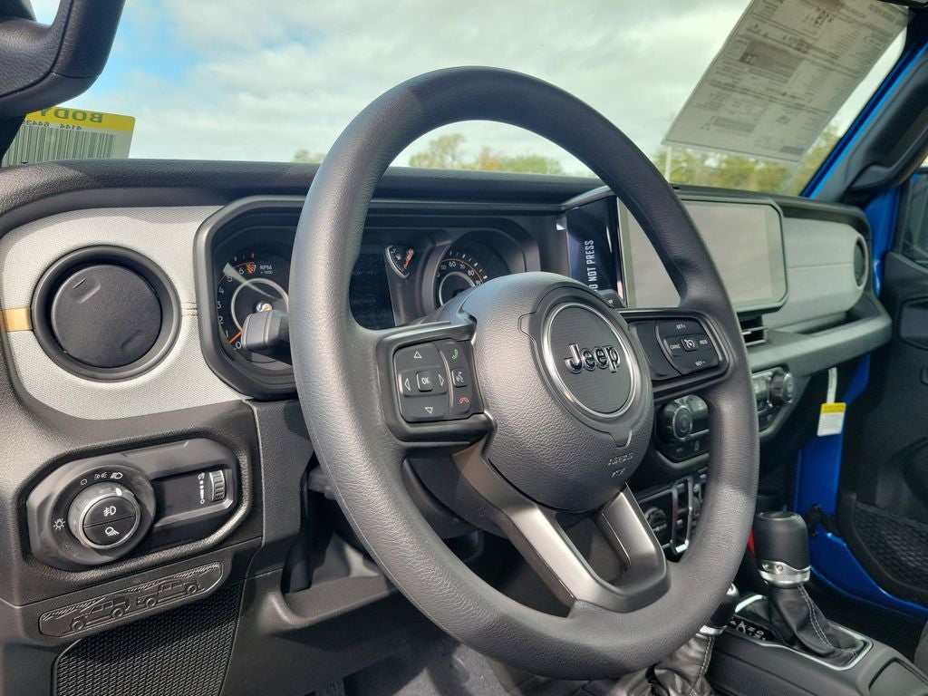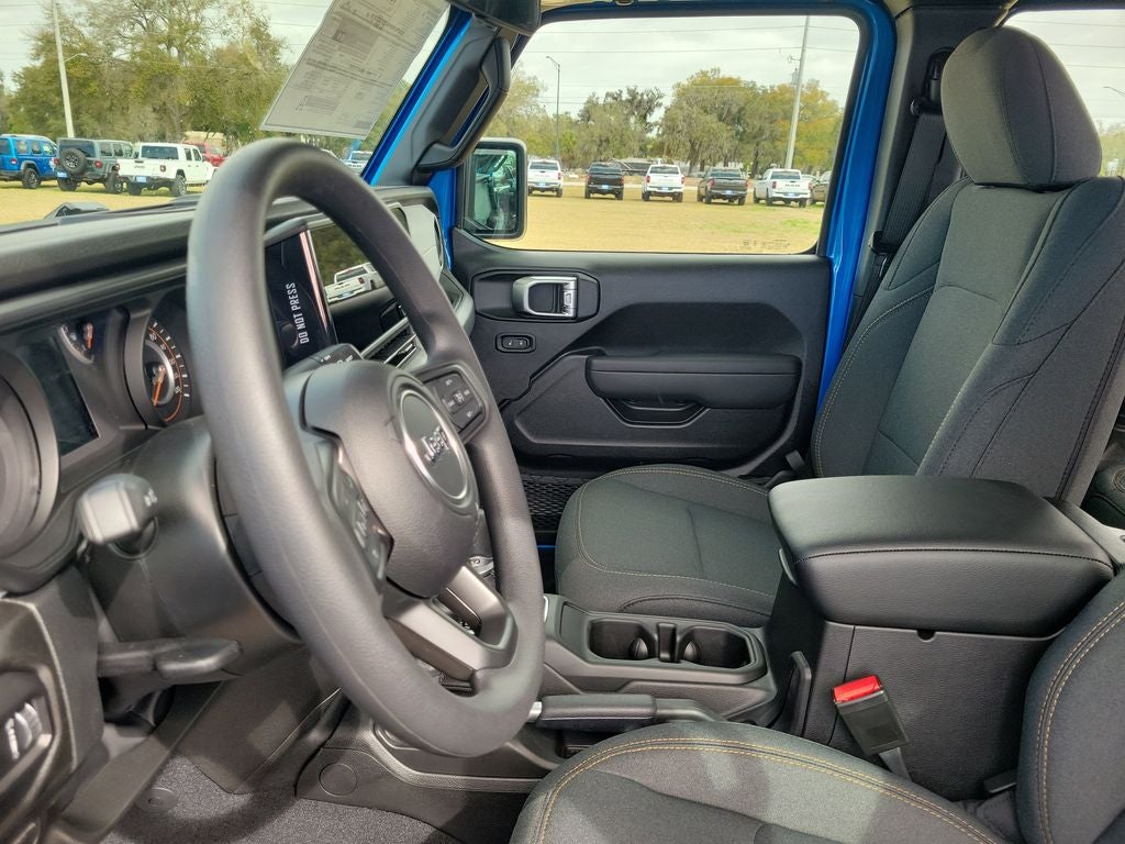 Quick Order Package 24B Sport, 110 Mph Vehicle Max Speed Calibration, 12.3 Touchscreen Display, 3.73 Rear Axle Ratio, 4-Wheel Disc Brakes, 4G LTE Wi-Fi Hot Spot, 8 Speakers, ABS brakes, Air Conditioning, Alexa Built-in, AM/FM radio: SiriusXM with 360L, Apple CarPlay, Apple CarPlay/Android Auto, Brake assist, Compass, Connectivity - US/Canada, Delay-off headlights, Driver door bin, Driver vanity mirror, Dual front impact airbags, Dual front side impact airbags, Electronic Stability Control, For Details, Visit DriveUconnect.com, Front anti-roll bar, Front Bucket Seats, Front Center Armrest w/Storage, Front fog lights, Front License Plate Bracket, Front reading lights, Google Android Auto, Illuminated entry, Integrated Center Stack Radio, Integrated roll-over protection, Low tire pressure warning, Manufacturer's Statement of Origin, MOPAR All-Weather Slush Mats, MOPAR American Flag Hood Decal, MOPAR Doors Off Mirror Kit, MOPAR Spray in Bedliner, Normal Duty Suspension, Occupant sensing airbag, Outside temperature display, Overhead airbag, Panic alarm, ParkView Rear Back-Up Camera, Passenger door bin, Passenger vanity mirror, Power steering, Power windows, Radio data system, Radio: Uconnect 5 with 12.3 Display, Rear anti-roll bar, Rear reading lights, Remote keyless entry, SiriusXM Radio Service, SiriusXM with 360L, Soft Top Window Storage Bag, Speed control, Split folding rear seat, Steering wheel mounted audio controls, Tachometer, Telescoping steering wheel, Tilt steering wheel, Traction control, Trip computer, USB Host Flip, Variably intermittent wipers, Voltmeter, and Wheels: 17 x 7.5 Black Steel StyleD.