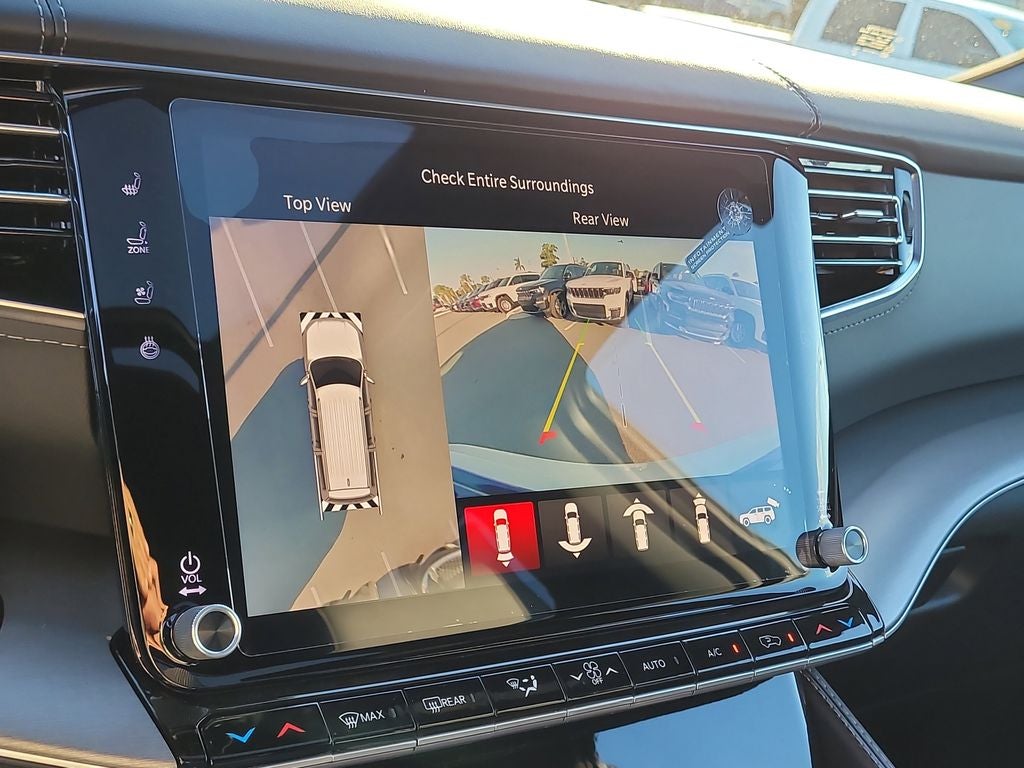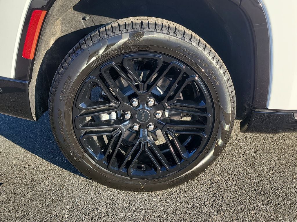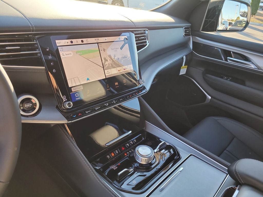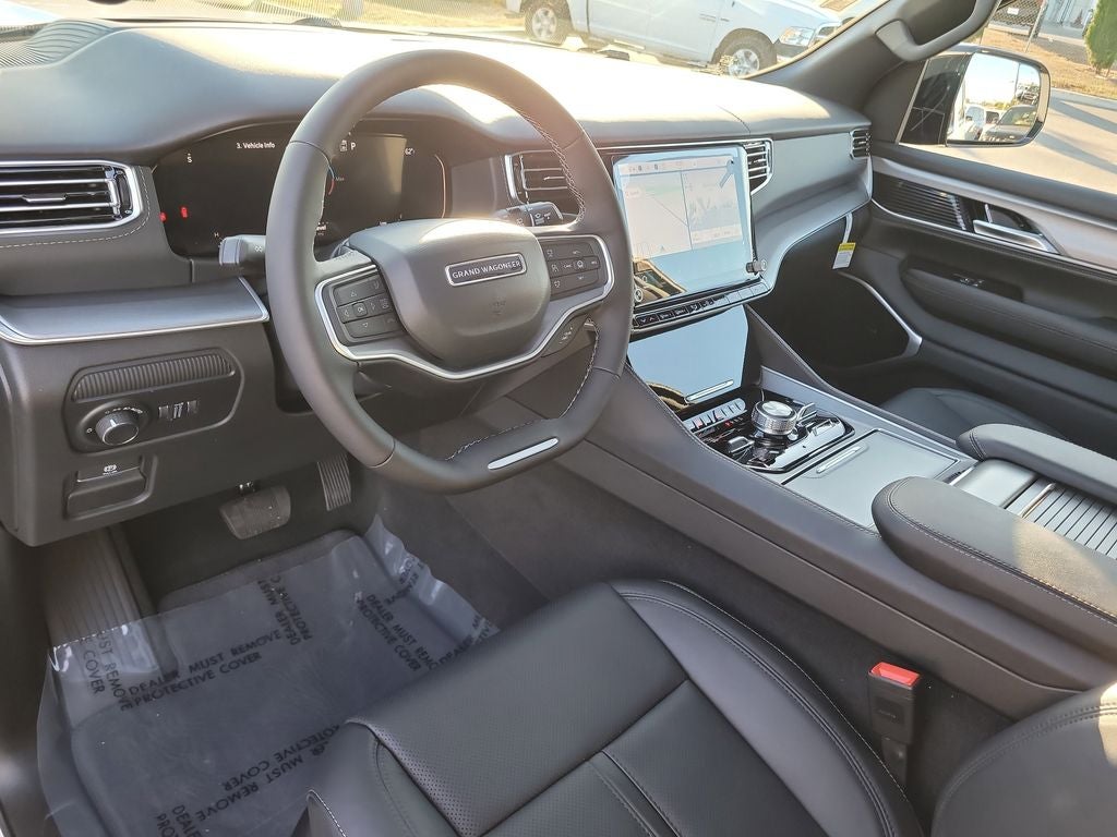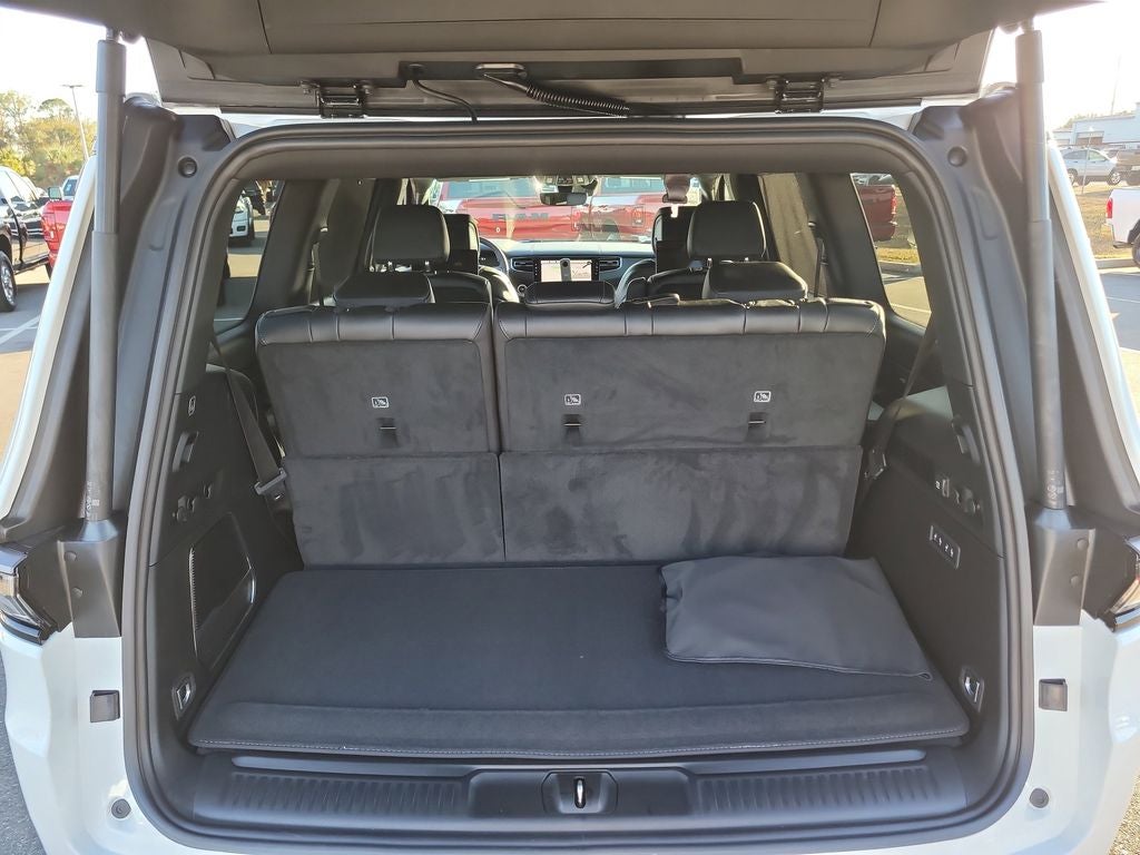 Black Appearance Package (118 Mph Maximum Speed Calibration, Black Exterior Accents, Titanium Daylight Opening Upper, Titanium Upper Grille Applique, and Wheels: 22 x 9 Painted Gloss Black), Limited Reserve Package, Quick Order Package 29D Reserve (19 Speaker McIntosh Audio System, 2nd Row Manual Window Shades, 3 Panel Sunroof, Cargo Cover, Cluster 12 TFT Color Display, Heads-Up Display, Instrument Panel, Interior Rear Facing Camera, Luxury Front and Rear Floor Mats, P and P Park and Unpark Assist with Stop System, Power Deployable Running Boards, Quadra-Lift Air Suspension, Reversible Carpet/Vinyl Cargo Mat, Semi Active Damping, Side Distance Warning, Smartphone as a Key Prep, and Surround View Camera System), Rear Seat Video Group I (Amazon Fire TV Built-in, Seatback Video Screens, and Video USB Port), 3.55 Rear Axle Ratio, 3rd row seats: bench, 4-Wheel Disc Brakes, 9 Speakers, ABS brakes, Air Conditioning, Alloy wheels, AM/FM radio: SiriusXM with 360L, Anti-whiplash front head restraints, Apple CarPlay/Android Auto, Audio memory, Auto Adjust in Reverse Exterior Mirrors, Auto High-beam Headlights, Auto-dimming door mirrors, Auto-Dimming Exterior Driver Mirror, Auto-dimming Rear-View mirror, Auto-leveling suspension, Automatic temperature control, Brake assist, Bumpers: body-color, Compass, Delay-off headlights, Driver door bin, Driver vanity mirror, Driver's Seat Mounted Armrest, Dual front impact airbags, Dual front side impact airbags, Electronic Stability Control, Emergency communication system: Jeep Connect, Exterior Mirrors Approach Lamps, Exterior Mirrors with Memory, Exterior Mirrors with Supplemental Signals, Exterior Parking Camera Rear, Four wheel independent suspension, Front anti-roll bar, Front Bucket Seats, Front Center Armrest w/Storage, Front dual zone A/C, Front fog lights, Front reading lights, Fully automatic headlights, Garage door transmitter, Heated door mirrors, Heated Exterior Mirrors, Heated front seats, Heated rear seats, Heated steering wheel, Illuminated entry, Knee airbag, Leather Trimmed Bucket Seats, Low tire pressure warning, Manufacturer Statement of Origin, Memory seat, Navigation System, Normal Duty Suspension, Occupant sensing airbag, Outside temperature display, Overhead airbag, Overhead console, Panic alarm, Passenger door bin, Passenger seat mounted armrest, Passenger vanity mirror, Power door mirrors, Power driver seat, Power Liftgate, Power passenger seat, Power steering, Power windows, Radio data system, Radio: Uconnect 5 Nav with 12.0 Display, Rain sensing wipers, Rear air conditioning, Rear anti-roll bar, Rear reading lights, Rear seat center armrest, Rear window defroster, Rear window wiper, Reclining 3rd row seat, Remote keyless entry, Security system, Speed control, Speed-sensing steering, Speed-Sensitive Wipers, Split folding rear seat, Steering wheel memory, Steering wheel mounted audio controls, Tachometer, Telescoping steering wheel, Tilt steering wheel, Traction control, Trip computer, Turn signal indicator mirrors, Variably intermittent wipers, Ventilated front seats, Ventilated rear seats, and Voltmeter.