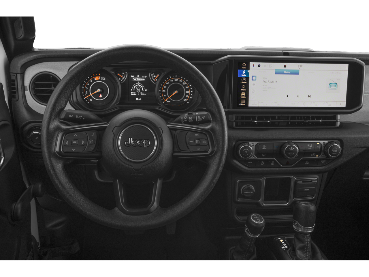 Convenience Group (Heated Front Seats, Heated Steering Wheel, and Universal Garage Door Opener), Quick Order Package 23R Rubicon, Safety Group (Auto High Beam Headlamp Control, Blind Spot and Cross Path Detection, and ParkSense Rear Park Assist System), Steel Performance Hood Package (Performance Hood), Technology Group (12.3 Touchscreen Display, 4G LTE Wi-Fi Hot Spot, Apple CarPlay, Auto-Dimming Rear-View Mirror, Connected Travel and Traffic Services, Connectivity - US/Canada, For More Info, Call 800-643-2112, Google Android Auto, GPS Navigation, HD Radio, Integrated Center Stack Radio, Integrated Off-Road Camera, Integrated Voice Command with Bluetooth®, Radio: Uconnect 5 Navigation with 12.3 Display, SiriusXM Radio Service, and SiriusXM with 360L), 4-Wheel Disc Brakes, 4.10 Rear Axle Ratio, 8 Speakers, ABS brakes, Air Conditioning, Alloy wheels, Alpine Premium Audio System, AM/FM radio: SiriusXM with 360L, Apple CarPlay/Android Auto, Automatic temperature control, Aux Battery, Auxiliary Switches, Brake assist, Class II Receiver Hitch, Cloth Low-Back Bucket Seats, Compass, Delay-off headlights, Driver door bin, Driver vanity mirror, Dual front impact airbags, Dual front side impact airbags, Electronic Stability Control, Emergency communication system: Jeep Connect, Front anti-roll bar, Front Bucket Seats, Front Center Armrest w/Storage, Front dual zone A/C, Front fog lights, Front License Plate Bracket, Front reading lights, Fully automatic headlights, Heated door mirrors, Illuminated entry, Integrated roll-over protection, Jeep Trail Rated Kit, Low tire pressure warning, MOPAR All-Weather Floor Mats, Non-Lock Fuel Cap Without Discriminator, Occupant sensing airbag, Outside temperature display, Overhead airbag, Panic alarm, ParkView Rear Back-Up Camera, Passenger door bin, Passenger vanity mirror, Performance Suspension, Power door mirrors, Power steering, Power windows, Radio data system, Radio: Uconnect 5 with 12.3 Display, Rear anti-roll bar, Rear reading lights, Remote keyless entry, Security system, Speed control, Steering wheel mounted audio controls, Stop-Start Dual Battery System, Tachometer, Telescoping steering wheel, Tilt steering wheel, Traction control, Trip computer, Variably intermittent wipers, Voltmeter, and Wheels: 17 x 7.5 Machined/Painted Black.