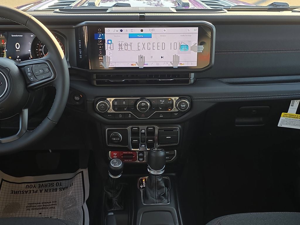 Convenience Group (Heated Front Seats, Heated Steering Wheel, and Universal Garage Door Opener), Quick Order Package 22R Rubicon, Technology Group (12.3 Touchscreen Display, 4G LTE Wi-Fi Hot Spot, Apple CarPlay, Auto-Dimming Rear-View Mirror, Connected Travel and Traffic Services, Connectivity - US/Canada, For More Info, Call 800-643-2112, Google Android Auto, GPS Navigation, HD Radio, Integrated Center Stack Radio, Integrated Off-Road Camera, Integrated Voice Command with Bluetooth®, Radio: Uconnect 5 Navigation with 12.3 Display, SiriusXM Radio Service, and SiriusXM with 360L), 4-Wheel Disc Brakes, 4.10 Rear Axle Ratio, 8 Speakers, ABS brakes, Air Conditioning, Alloy wheels, Alpine Premium Audio System, AM/FM radio: SiriusXM with 360L, Apple CarPlay/Android Auto, Automatic temperature control, Aux Battery, Auxiliary Switches, Black 3-Piece Hard Top, Brake assist, Class II Receiver Hitch, Cloth Low-Back Bucket Seats, Compass, Delay-off headlights, Driver door bin, Driver vanity mirror, Dual front impact airbags, Dual front side impact airbags, Electronic Stability Control, Emergency communication system: Jeep Connect, Freedom Panel Storage Bag, Front anti-roll bar, Front Bucket Seats, Front Center Armrest w/Storage, Front dual zone A/C, Front fog lights, Front reading lights, Fully automatic headlights, Heated door mirrors, Illuminated entry, Integrated roll-over protection, Jeep Trail Rated Kit, Low tire pressure warning, MOPAR All-Weather Floor Mats, No Soft Top, Non-Lock Fuel Cap Without Discriminator, Occupant sensing airbag, Outside temperature display, Overhead airbag, Panic alarm, ParkView Rear Back-Up Camera, Passenger door bin, Passenger vanity mirror, Performance Suspension, Power door mirrors, Power steering, Power windows, Radio data system, Radio: Uconnect 5 with 12.3 Display, Rear anti-roll bar, Rear reading lights, Rear Window Defroster, Rear Window Wiper/Washer, Remote keyless entry, Security system, Speed control, Split folding rear seat, Steering wheel mounted audio controls, Stop-Start Dual Battery System, Tachometer, Telescoping steering wheel, Tilt steering wheel, Traction control, Trip computer, Variably intermittent wipers, Voltmeter, and Wheels: 17 x 7.5 Machined/Painted Black.