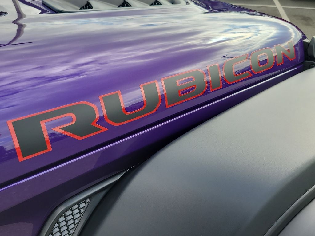 Convenience Group (Heated Front Seats, Heated Steering Wheel, and Universal Garage Door Opener), Quick Order Package 22R Rubicon, Technology Group (12.3 Touchscreen Display, 4G LTE Wi-Fi Hot Spot, Apple CarPlay, Auto-Dimming Rear-View Mirror, Connected Travel and Traffic Services, Connectivity - US/Canada, For More Info, Call 800-643-2112, Google Android Auto, GPS Navigation, HD Radio, Integrated Center Stack Radio, Integrated Off-Road Camera, Integrated Voice Command with Bluetooth®, Radio: Uconnect 5 Navigation with 12.3 Display, SiriusXM Radio Service, and SiriusXM with 360L), Xtreme 35 Tire Package (35 Tire Suspension, Anti-Lock 4-Wheel Disc Perf Brakes, MOPAR Hinge-Gate Reinforcement, MOPAR Jack Spacer, MOPAR Tire Relocation Kit, Wheel Flare Extensions, and Wheels: 17 x 8 Machined with Black Pockets), 4-Wheel Disc Brakes, 8 Speakers, ABS brakes, Air Conditioning, Alloy wheels, Alpine Premium Audio System, AM/FM radio: SiriusXM with 360L, Apple CarPlay/Android Auto, Automatic temperature control, Aux Battery, Auxiliary Switches, Body Color 3-Piece Hard Top, Brake assist, Class II Receiver Hitch, Cloth Low-Back Bucket Seats, Compass, Delay-off headlights, Driver door bin, Driver vanity mirror, Dual front impact airbags, Dual front side impact airbags, Electronic Stability Control, Emergency communication system: Jeep Connect, Freedom Panel Storage Bag, Front anti-roll bar, Front Bucket Seats, Front Center Armrest w/Storage, Front dual zone A/C, Front fog lights, Front License Plate Bracket, Front reading lights, Fully automatic headlights, Heated door mirrors, Illuminated entry, Integrated roll-over protection, Jeep Trail Rated Kit, Low tire pressure warning, MOPAR All-Weather Floor Mats, MOPAR Doors Off Mirror Kit, MOPAR Multi-Function Accessory Rail, MOPAR Stainless Door Sill Guards, No Soft Top, Non-Lock Fuel Cap Without Discriminator, Occupant sensing airbag, Outside temperature display, Overhead airbag, Panic alarm, ParkView Rear Back-Up Camera, Passenger door bin, Passenger vanity mirror, Performance Suspension, Power door mirrors, Power steering, Power windows, Radio data system, Radio: Uconnect 5 with 12.3 Display, Rear anti-roll bar, Rear reading lights, Rear Window Defroster, Rear Window Wiper/Washer, Remote keyless entry, Security system, Speed control, Split folding rear seat, Steering wheel mounted audio controls, Stop-Start Dual Battery System, Tachometer, Telescoping steering wheel, Tilt steering wheel, Traction control, Trip computer, Variably intermittent wipers, Voltmeter, and Wheels: 17 x 7.5 Machined/Painted Black.