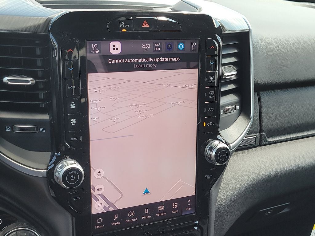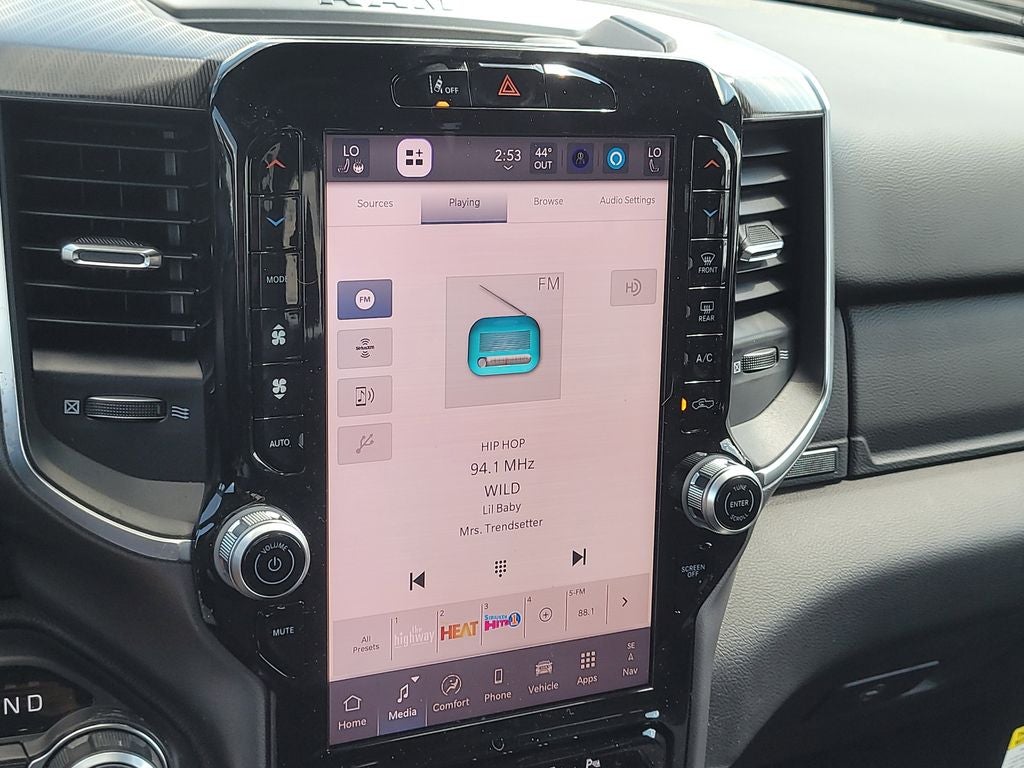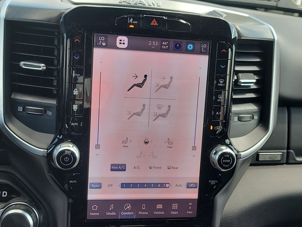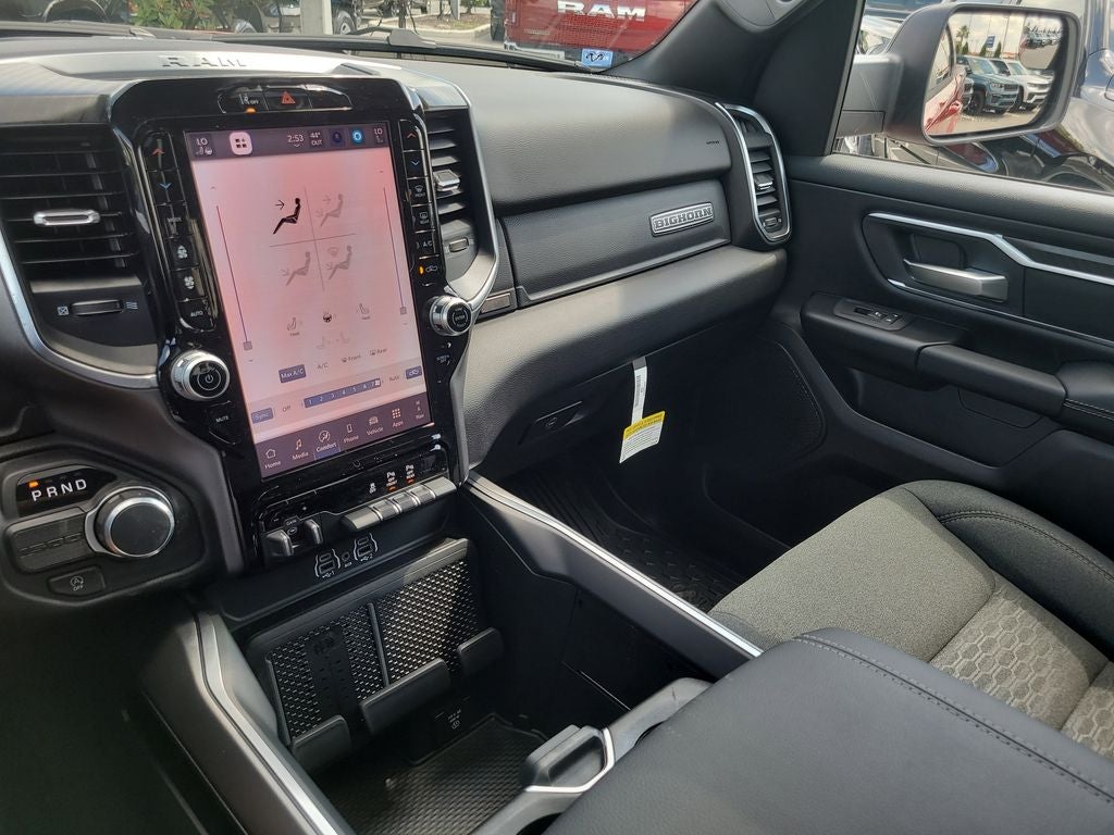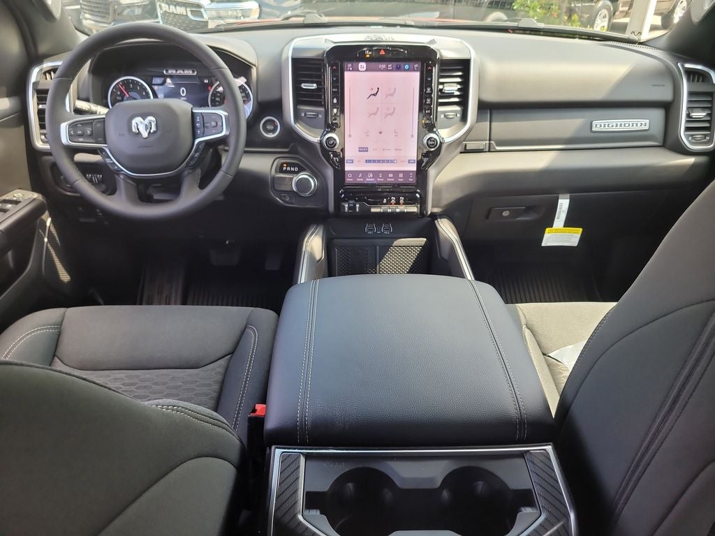 Bed Utility Group (Exterior 115V AC Outlet, MOPAR 4 Adjustable Cargo Tie-Down Hooks, MOPAR Spray in Bedliner, and Pick-Up Box Lighting), Big Horn Level 2 Equipment Group (115V Auxiliary Power Outlet, 115V Auxiliary Rear Power Outlet, 12 Touchscreen Display, 2nd Row in Floor Storage Bins, 3 Rear Seat Head Restraints, 4 Way Front Headrests, 400W Inverter, 4G LTE Wi-Fi Hot Spot, 9 Amplified Speakers with Subwoofer, Air Conditioning ATC with Dual Zone Control, Apple CarPlay, Auto Power-Folding Mirrors, Auto-Dimming Exterior Driver Mirror, Auto-Dimming Rear-View Mirror, Black Exterior Mirrors, Black Premium Power Mirrors, Body Color Fender Flares, Bucket Seats, Center Console Parts Module, Cluster 7.0 TFT Color Display, Configurable Drive Mode, Connected Travel and Traffic Services, Connectivity - US/Canada, Convex Wide-Angle Exterior Mirror Insert, Deluxe Cloth Bucket Seats, Disassociated Touchscreen Display, Exterior Mirrors Courtesy Lamps, Exterior Mirrors with Heating Element, Exterior Mirrors with Supplemental Signals, Front Seat Back Map Pockets, Full Length Floor Console, Global Telematics Box Module, Glove Box Lamp, Google Android Auto, GPS Antenna Input, GPS Navigation, HD Radio, Heated Front Seats, Heated Steering Wheel, Integrated Center Stack Radio, Integrated Voice Command with Bluetooth®, Leather Wrapped Steering Wheel, LED Dome Lamp with on/Off Switch, LED Footwell Lighting, Manual Adjust 4-Way Front Passenger Seat, Media Hub with 2 Charge Only USBs, Overhead LED Lamps, Power 2-Way Driver Lumbar Adjust, Power Adjust 8-Way Driver Seat, Power Adjustable Pedals, Premium Overhead Console, Radio: Uconnect 5 Navigation with 12.0 Display, Rear 60/40 Folding Seat, Rear Center Armrest, Rear Power Sliding Window, Rear Window Defroster, Remote Tailgate Release, Security Alarm, SiriusXM Radio Service, SiriusXM with 360L, Steering Wheel Mounted Audio Controls, Sun Visors with Illuminated Vanity Mirrors, Universal Garage Door Opener, and USB Host Flip), Quick Order Package 21Z Big Horn, Sport Appearance Package (Black Interior Accents, Body Color Door Handles, Body Color Front Bumper, Body Color Rear Bumper with Step Pads, Body Color Tailgate Handle, Grille Surround 1 Body Color Texture 1 Black, and RAM Grille Badge - Chrome), 4-Wheel Disc Brakes, 48V Belt Starter Generator, 6 Speakers, ABS brakes, Accent Color Tailgate Handle, Air Conditioning, Alloy wheels, AM/FM radio, Anti-Spin Differential Rear Axle, Apple CarPlay/Android Auto, Auto High-beam Headlights, Brake assist, Bumpers: chrome, Cloth Bucket Seats, Compass, Delay-off headlights, Dome Dual LED Reading Lamp, Driver door bin, Dual front impact airbags, Dual front side impact airbags, Dual-Pane Panoramic Sunroof, Electronic Stability Control, Exterior Parking Camera Rear, Front anti-roll bar, Front Bucket Seats, Front Center Armrest w/Storage, Front fog lights, Front License Plate Bracket, Front reading lights, Front wheel independent suspension, Fully automatic headlights, Heated door mirrors, Illuminated entry, Low tire pressure warning, Manual Adjust 4-Way Driver Seat, Manual Folding Exterior Mirrors, Manufacturer's Statement of Origin, MOPAR Front and Rear Rubber Floor Mats, Multi-Function Tailgate, Occupant sensing airbag, Outside temperature display, Overhead airbag, Overhead console, Panic alarm, Passenger door bin, Passenger vanity mirror, Power door mirrors, Power steering, Power windows, Radio data system, Radio: Uconnect 5 W with 8.4 Display, RAM's Head Badge, RamBox Cargo Management System, Rear anti-roll bar, Rear step bumper, Rear Underseat Compartment Storage, Remote keyless entry, Speed control, Supplier Part Tracking (J-1), Tachometer, Telescoping steering wheel, Tilt steering wheel, Traction control, Trailer Brake Control, Trip computer, Variably intermittent wipers, Voltmeter, and Wheels: 18 x 8 Cast-Aluminum Painted.