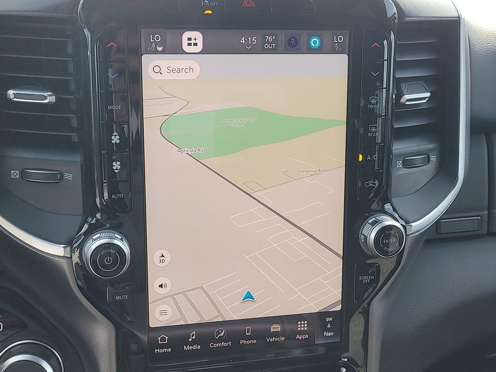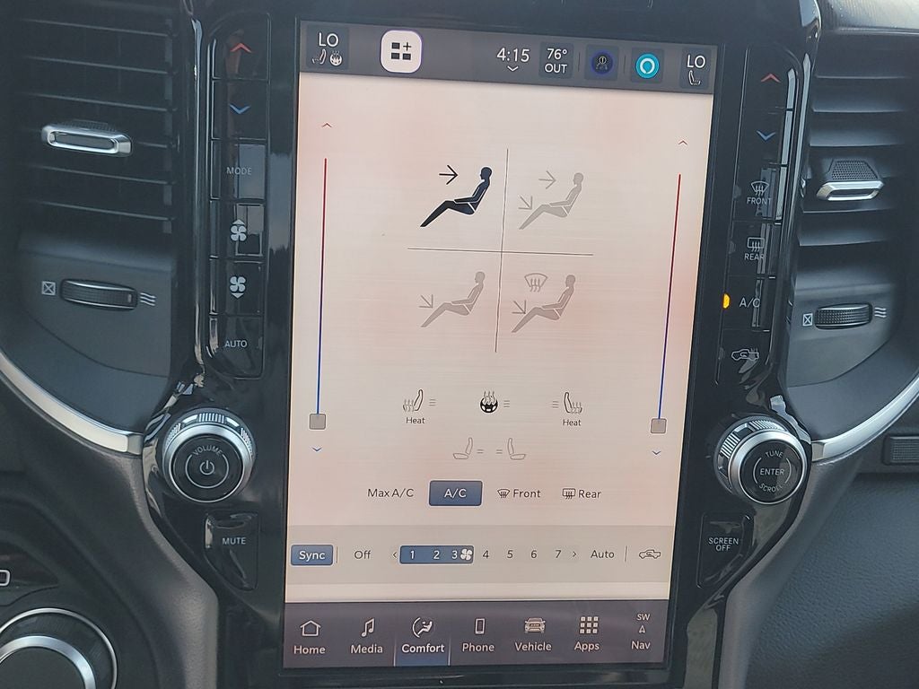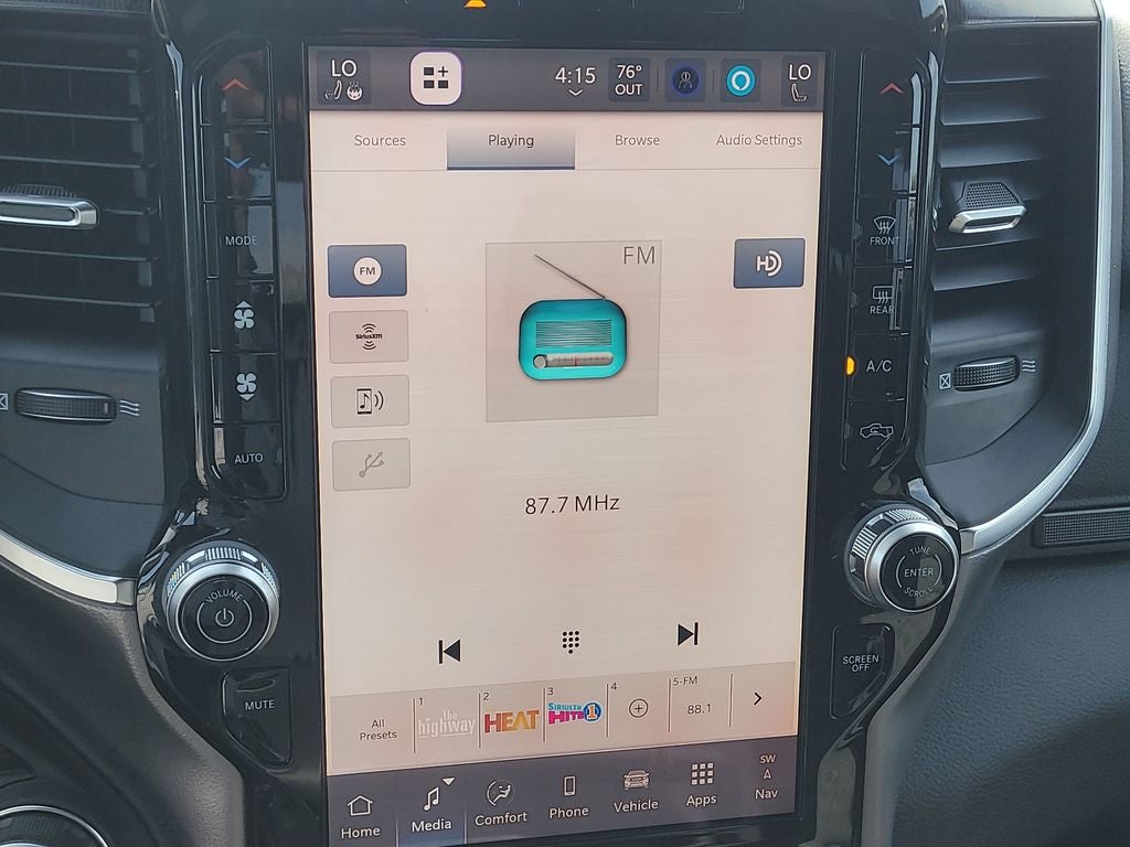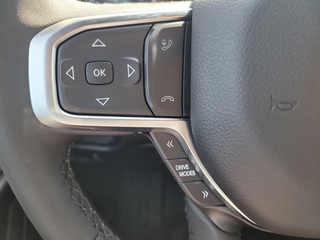 Big Horn Level 2 Equipment Group (115V Auxiliary Power Outlet, 115V Auxiliary Rear Power Outlet, 12 Touchscreen Display, 2nd Row in Floor Storage Bins, 3 Rear Seat Head Restraints, 4 Way Front Headrests, 400W Inverter, 4G LTE Wi-Fi Hot Spot, 9 Amplified Speakers with Subwoofer, Air Conditioning ATC with Dual Zone Control, Apple CarPlay, Auto Power-Folding Mirrors, Auto-Dimming Exterior Driver Mirror, Auto-Dimming Rear-View Mirror, Black Exterior Mirrors, Black Premium Power Mirrors, Body Color Fender Flares, Bucket Seats, Center Console Parts Module, Cluster 7.0 TFT Color Display, Configurable Drive Mode, Connected Travel and Traffic Services, Connectivity - US/Canada, Convex Wide-Angle Exterior Mirror Insert, Deluxe Cloth Bucket Seats, Disassociated Touchscreen Display, Exterior Mirrors Courtesy Lamps, Exterior Mirrors with Heating Element, Exterior Mirrors with Supplemental Signals, Front Seat Back Map Pockets, Full Length Floor Console, Global Telematics Box Module, Glove Box Lamp, Google Android Auto, GPS Antenna Input, GPS Navigation, HD Radio, Heated Front Seats, Heated Steering Wheel, Integrated Center Stack Radio, Integrated Voice Command with Bluetooth®, Leather Wrapped Steering Wheel, LED Dome Lamp with on/Off Switch, LED Footwell Lighting, Manual Adjust 4-Way Front Passenger Seat, Media Hub with 2 Charge Only USBs, Overhead LED Lamps, Power 2-Way Driver Lumbar Adjust, Power Adjust 8-Way Driver Seat, Power Adjustable Pedals, Premium Overhead Console, Radio: Uconnect 5 Navigation with 12.0 Display, Rear 60/40 Folding Seat, Rear Center Armrest, Rear Power Sliding Window, Rear Window Defroster, Remote Tailgate Release, Security Alarm, SiriusXM Radio Service, SiriusXM with 360L, Steering Wheel Mounted Audio Controls, Sun Visors with Illuminated Vanity Mirrors, Universal Garage Door Opener, and USB Host Flip), Night Edition (Accent Color Door Handles, Accent Color Premium Power Mirrors, Accent Color Tailgate Handle, Anti-Spin Differential Rear Axle, Black Exterior Truck Badging, Black Headlamp Bezels, Black Interior Accents, Black Painted Exterior Mirrors Caps, Black Tail Lamp Bezels, Body Color Front Bumper, Body Color Rear Bumper with Step Pads, Dual Exhaust with Black Tips, Grille Black Surround Black Mesh, RAM Grille Badge - Black, and Wheels: 20 x 9.0 Aluminum Painted Clad), Quick Order Package 21Z Big Horn, 4-Wheel Disc Brakes, 48V Belt Starter Generator, 6 Speakers, ABS brakes, Air Conditioning, Alloy wheels, AM/FM radio, Apple CarPlay/Android Auto, Auto High-beam Headlights, Brake assist, Bumpers: chrome, Cloth Bucket Seats, Cluster 12 TFT Color Display, Compass, Delay-off headlights, Driver door bin, Dual front impact airbags, Dual front side impact airbags, Electronic Stability Control, Front anti-roll bar, Front Bucket Seats, Front Center Armrest w/Storage, Front fog lights, Front reading lights, Front wheel independent suspension, Fully automatic headlights, Heated door mirrors, Illuminated entry, Low tire pressure warning, Manual Adjust 4-Way Driver Seat, Manual Folding Exterior Mirrors, MOPAR Front and Rear Rubber Floor Mats, Occupant sensing airbag, Outside temperature display, Overhead airbag, Overhead console, Panic alarm, ParkView Rear Back-Up Camera, Passenger door bin, Passenger vanity mirror, Power door mirrors, Power steering, Power windows, Radio data system, Radio: Uconnect 5 W with 8.4 Display, RAM Grille Badge - Chrome, Rear anti-roll bar, Rear step bumper, Rear Wheelhouse Liners, Remote keyless entry, Speed control, Supplier Part Tracking (J-1), Tachometer, Telescoping steering wheel, Tilt steering wheel, Traction control, Trailer Brake Control, Trip computer, Variably intermittent wipers, and Voltmeter.