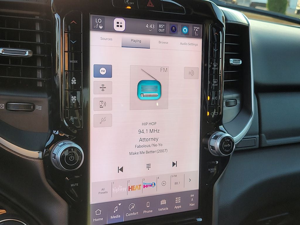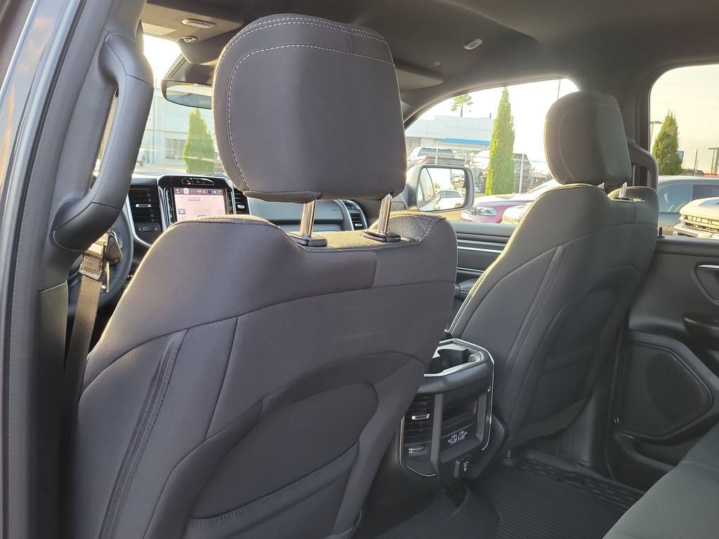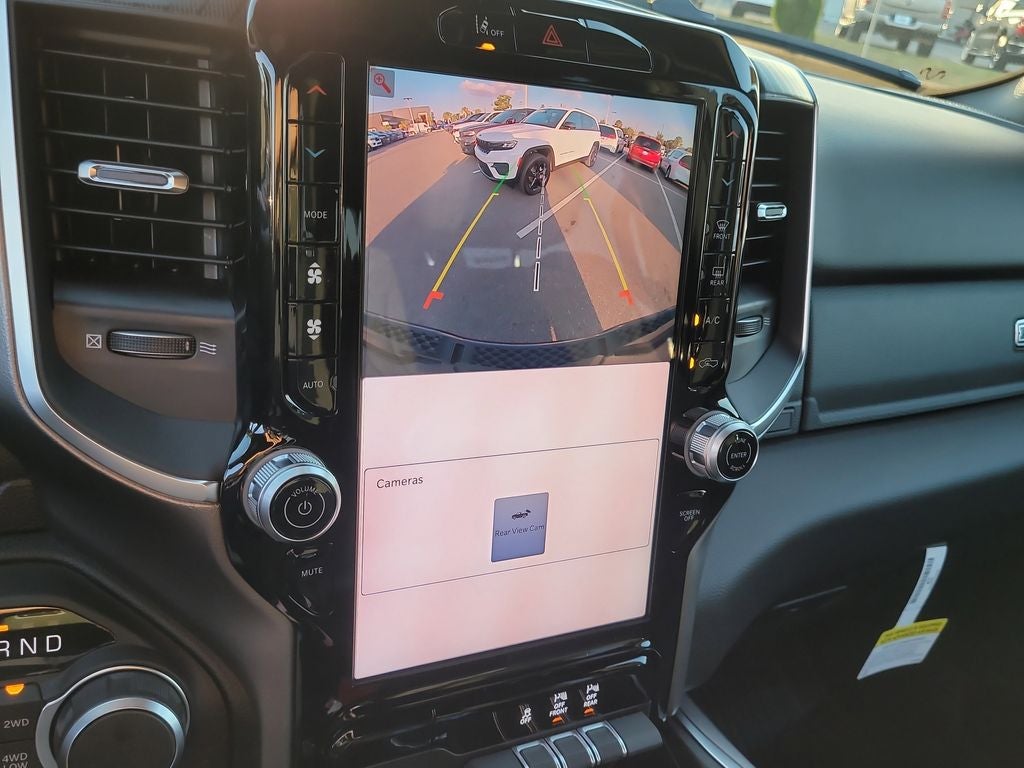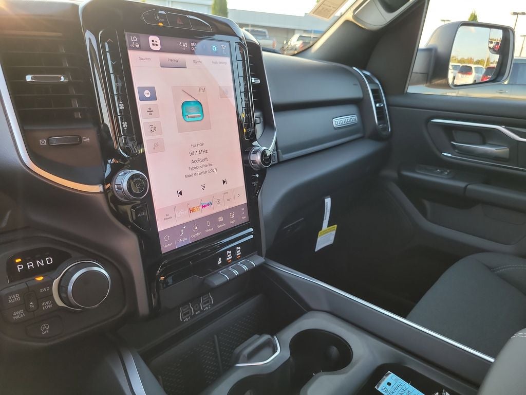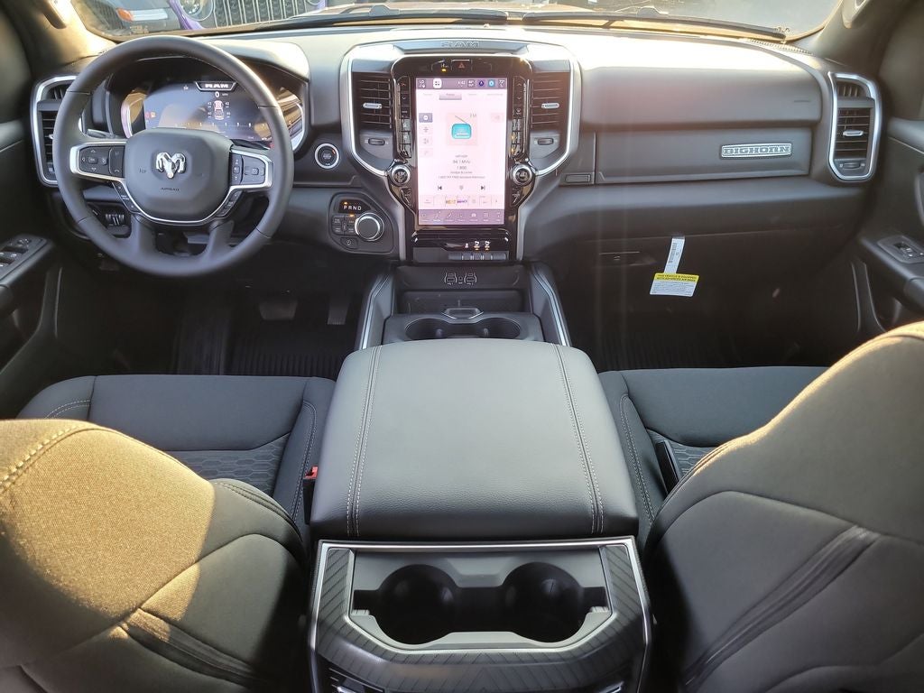 Big Horn Level 2 Equipment Group (115V Auxiliary Power Outlet, 115V Auxiliary Rear Power Outlet, 12 Touchscreen Display, 2nd Row in Floor Storage Bins, 3 Rear Seat Head Restraints, 4 Way Front Headrests, 400W Inverter, 4G LTE Wi-Fi Hot Spot, 9 Amplified Speakers with Subwoofer, Air Conditioning ATC with Dual Zone Control, Apple CarPlay, Auto Power-Folding Mirrors, Auto-Dimming Exterior Driver Mirror, Auto-Dimming Rear-View Mirror, Black Exterior Mirrors, Black Premium Power Mirrors, Body Color Fender Flares, Bucket Seats, Center Console Parts Module, Cluster 7.0 TFT Color Display, Configurable Drive Mode, Connected Travel and Traffic Services, Connectivity - US/Canada, Convex Wide-Angle Exterior Mirror Insert, Deluxe Cloth Bucket Seats, Disassociated Touchscreen Display, Exterior Mirrors Courtesy Lamps, Exterior Mirrors with Heating Element, Exterior Mirrors with Supplemental Signals, Front Seat Back Map Pockets, Full Length Floor Console, Global Telematics Box Module, Glove Box Lamp, Google Android Auto, GPS Antenna Input, GPS Navigation, HD Radio, Heated Front Seats, Heated Steering Wheel, Integrated Center Stack Radio, Integrated Voice Command with Bluetooth®, Leather Wrapped Steering Wheel, LED Dome Lamp with on/Off Switch, LED Footwell Lighting, Manual Adjust 4-Way Front Passenger Seat, Media Hub with 2 Charge Only USBs, Overhead LED Lamps, Power 2-Way Driver Lumbar Adjust, Power Adjust 8-Way Driver Seat, Power Adjustable Pedals, Premium Overhead Console, Radio: Uconnect 5 Navigation with 12.0 Display, Rear 60/40 Folding Seat, Rear Center Armrest, Rear Power Sliding Window, Rear Window Defroster, Remote Tailgate Release, Security Alarm, SiriusXM Radio Service, SiriusXM with 360L, Steering Wheel Mounted Audio Controls, Sun Visors with Illuminated Vanity Mirrors, Universal Garage Door Opener, and USB Host Flip), Night Edition (Accent Color Door Handles, Accent Color Premium Power Mirrors, Accent Color Tailgate Handle, Anti-Spin Differential Rear Axle, Black Exterior Truck Badging, Black Headlamp Bezels, Black Interior Accents, Black Painted Exterior Mirrors Caps, Black Tail Lamp Bezels, Body Color Front Bumper, Body Color Rear Bumper with Step Pads, Dual Exhaust with Black Tips, Grille Black Surround Black Mesh, RAM Grille Badge - Black, and Wheels: 20 x 9.0 Aluminum Painted Clad), Quick Order Package 21Z Big Horn, 4-Wheel Disc Brakes, 48V Belt Starter Generator, 6 Speakers, ABS brakes, Air Conditioning, Alloy wheels, AM/FM radio, Apple CarPlay/Android Auto, Auto High-beam Headlights, Brake assist, Bumpers: chrome, Cloth Bucket Seats, Cluster 12 TFT Color Display, Compass, Delay-off headlights, Driver door bin, Dual front impact airbags, Dual front side impact airbags, Electronic Stability Control, Front anti-roll bar, Front Bucket Seats, Front Center Armrest w/Storage, Front fog lights, Front reading lights, Front wheel independent suspension, Fully automatic headlights, Heated door mirrors, Illuminated entry, Low tire pressure warning, Manual Adjust 4-Way Driver Seat, Manual Folding Exterior Mirrors, MOPAR Front and Rear Rubber Floor Mats, Occupant sensing airbag, Outside temperature display, Overhead airbag, Overhead console, Panic alarm, ParkView Rear Back-Up Camera, Passenger door bin, Passenger vanity mirror, Power door mirrors, Power steering, Power windows, Radio data system, Radio: Uconnect 5 W with 8.4 Display, RAM Grille Badge - Chrome, Rear anti-roll bar, Rear step bumper, Rear Wheelhouse Liners, Remote keyless entry, Speed control, Supplier Part Tracking (J-1), Tachometer, Telescoping steering wheel, Tilt steering wheel, Traction control, Trip computer, Variably intermittent wipers, and Voltmeter.