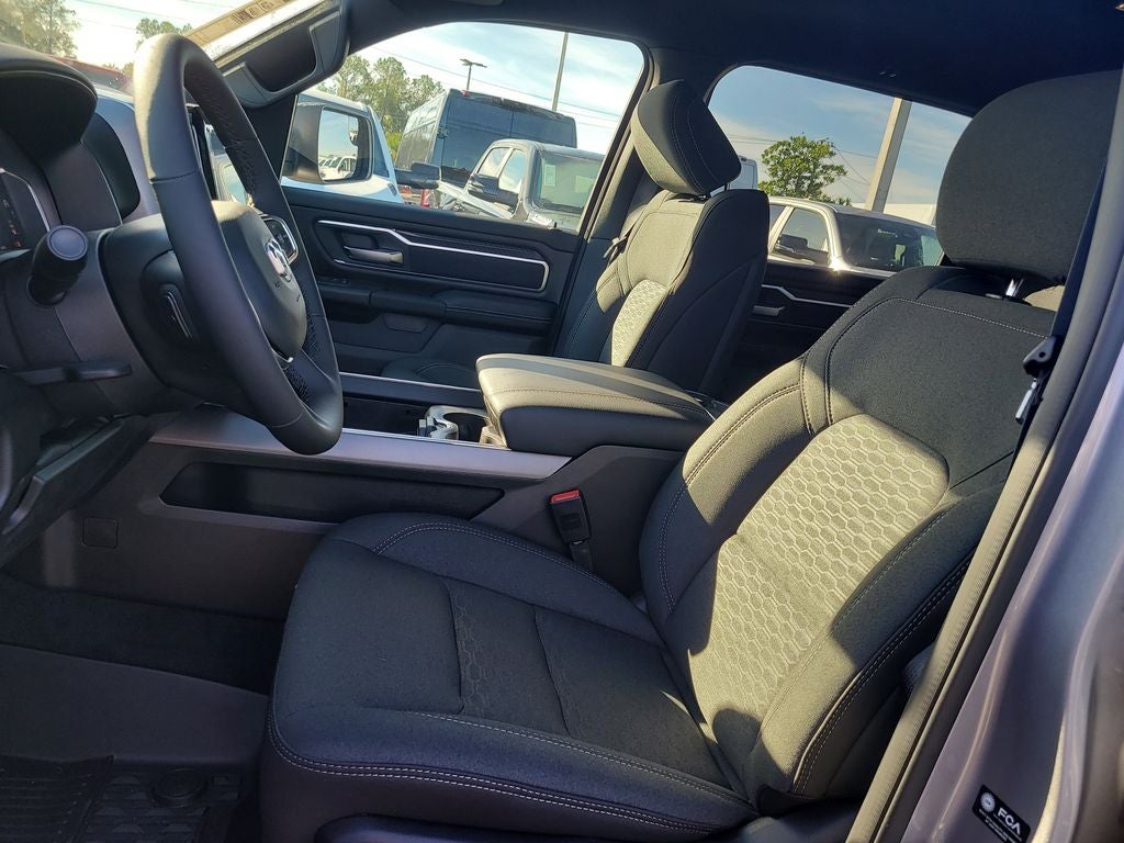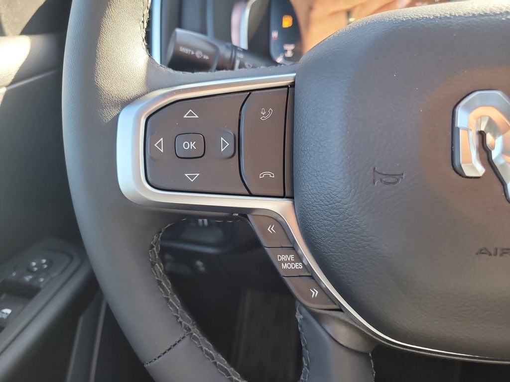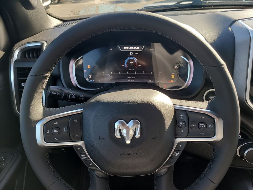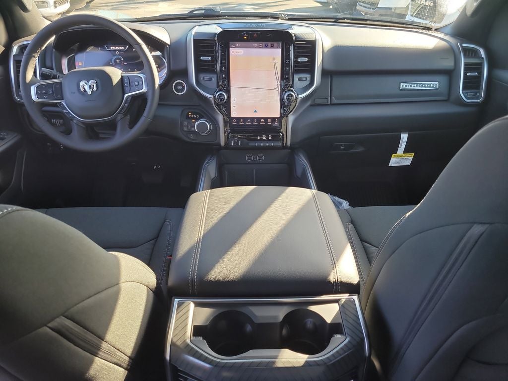 Big Horn Level 2 Equipment Group (115V Auxiliary Power Outlet, 115V Auxiliary Rear Power Outlet, 12 Touchscreen Display, 2nd Row in Floor Storage Bins, 3 Rear Seat Head Restraints, 4 Way Front Headrests, 400W Inverter, 4G LTE Wi-Fi Hot Spot, 9 Amplified Speakers with Subwoofer, Air Conditioning ATC with Dual Zone Control, Apple CarPlay, Auto Power-Folding Mirrors, Auto-Dimming Exterior Driver Mirror, Auto-Dimming Rear-View Mirror, Black Exterior Mirrors, Black Premium Power Mirrors, Body Color Fender Flares, Bucket Seats, Center Console Parts Module, Cluster 7.0 TFT Color Display, Configurable Drive Mode, Connected Travel and Traffic Services, Connectivity - US/Canada, Convex Wide-Angle Exterior Mirror Insert, Deluxe Cloth Bucket Seats, Disassociated Touchscreen Display, Exterior Mirrors Courtesy Lamps, Exterior Mirrors with Heating Element, Exterior Mirrors with Supplemental Signals, Front Seat Back Map Pockets, Full Length Floor Console, Global Telematics Box Module, Glove Box Lamp, Google Android Auto, GPS Antenna Input, GPS Navigation, HD Radio, Heated Front Seats, Heated Steering Wheel, Integrated Center Stack Radio, Integrated Voice Command with Bluetooth®, Leather Wrapped Steering Wheel, LED Dome Lamp with on/Off Switch, LED Footwell Lighting, Manual Adjust 4-Way Front Passenger Seat, Media Hub with 2 Charge Only USBs, Overhead LED Lamps, Power 2-Way Driver Lumbar Adjust, Power Adjust 8-Way Driver Seat, Power Adjustable Pedals, Premium Overhead Console, Radio: Uconnect 5 Navigation with 12.0 Display, Rear 60/40 Folding Seat, Rear Center Armrest, Rear Power Sliding Window, Rear Window Defroster, Remote Tailgate Release, Security Alarm, SiriusXM Radio Service, SiriusXM with 360L, Steering Wheel Mounted Audio Controls, Sun Visors with Illuminated Vanity Mirrors, Universal Garage Door Opener, and USB Host Flip), Night Edition (Accent Color Door Handles, Accent Color Premium Power Mirrors, Accent Color Tailgate Handle, Anti-Spin Differential Rear Axle, Black Exterior Truck Badging, Black Headlamp Bezels, Black Interior Accents, Black Painted Exterior Mirrors Caps, Black Tail Lamp Bezels, Body Color Front Bumper, Body Color Rear Bumper with Step Pads, Dual Exhaust with Black Tips, Grille Black Surround Black Mesh, RAM Grille Badge - Black, and Wheels: 20 x 9.0 Aluminum Painted Clad), Quick Order Package 21Z Big Horn, 4-Wheel Disc Brakes, 48V Belt Starter Generator, 6 Speakers, ABS brakes, Air Conditioning, Alloy wheels, AM/FM radio, Apple CarPlay/Android Auto, Auto High-beam Headlights, Brake assist, Bumpers: chrome, Cloth Bucket Seats, Cluster 12 TFT Color Display, Compass, Delay-off headlights, Driver door bin, Dual front impact airbags, Dual front side impact airbags, Electronic Stability Control, Front anti-roll bar, Front Bucket Seats, Front Center Armrest w/Storage, Front fog lights, Front reading lights, Front wheel independent suspension, Fully automatic headlights, Heated door mirrors, Illuminated entry, Low tire pressure warning, Manual Adjust 4-Way Driver Seat, Manual Folding Exterior Mirrors, MOPAR Front and Rear Rubber Floor Mats, Occupant sensing airbag, Outside temperature display, Overhead airbag, Overhead console, Panic alarm, ParkView Rear Back-Up Camera, Passenger door bin, Passenger vanity mirror, Power door mirrors, Power steering, Power windows, Radio data system, Radio: Uconnect 5 W with 8.4 Display, RAM Grille Badge - Chrome, Rear anti-roll bar, Rear step bumper, Rear Wheelhouse Liners, Remote keyless entry, Speed control, Supplier Part Tracking (J-1), Tachometer, Telescoping steering wheel, Tilt steering wheel, Traction control, Trailer Brake Control, Trip computer, Variably intermittent wipers, and Voltmeter.