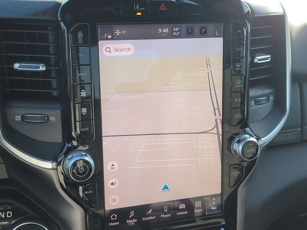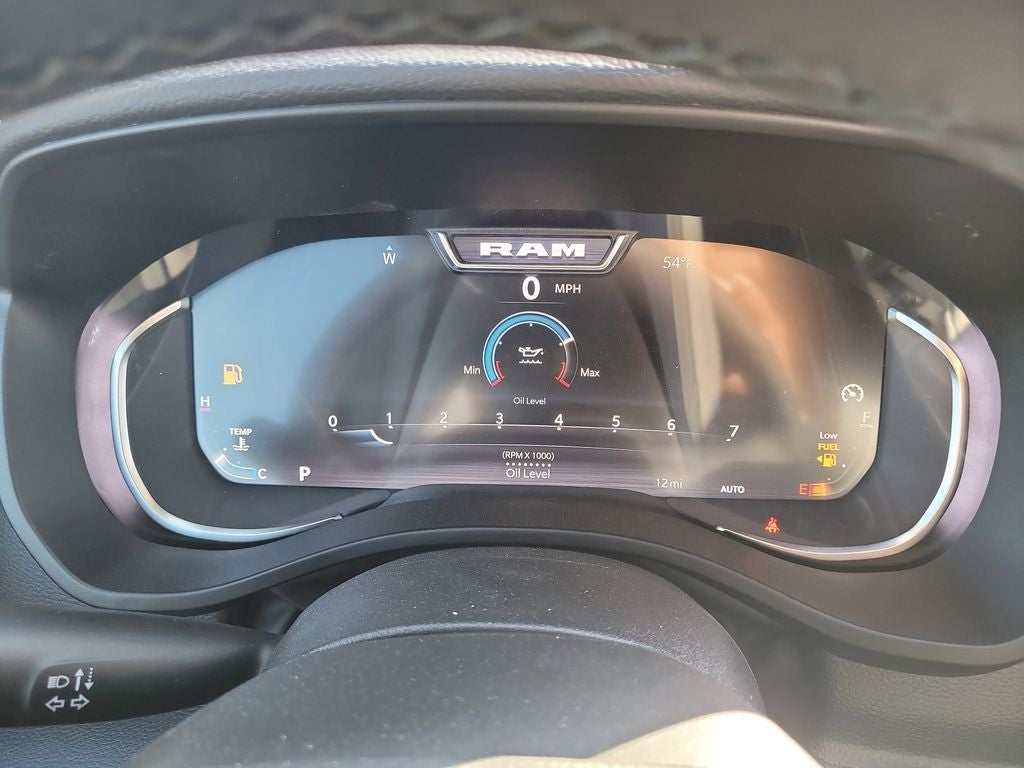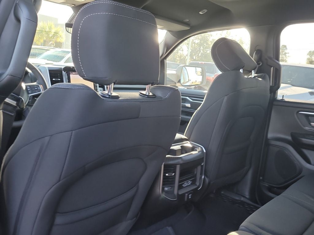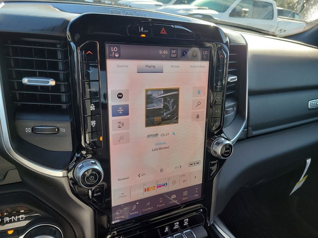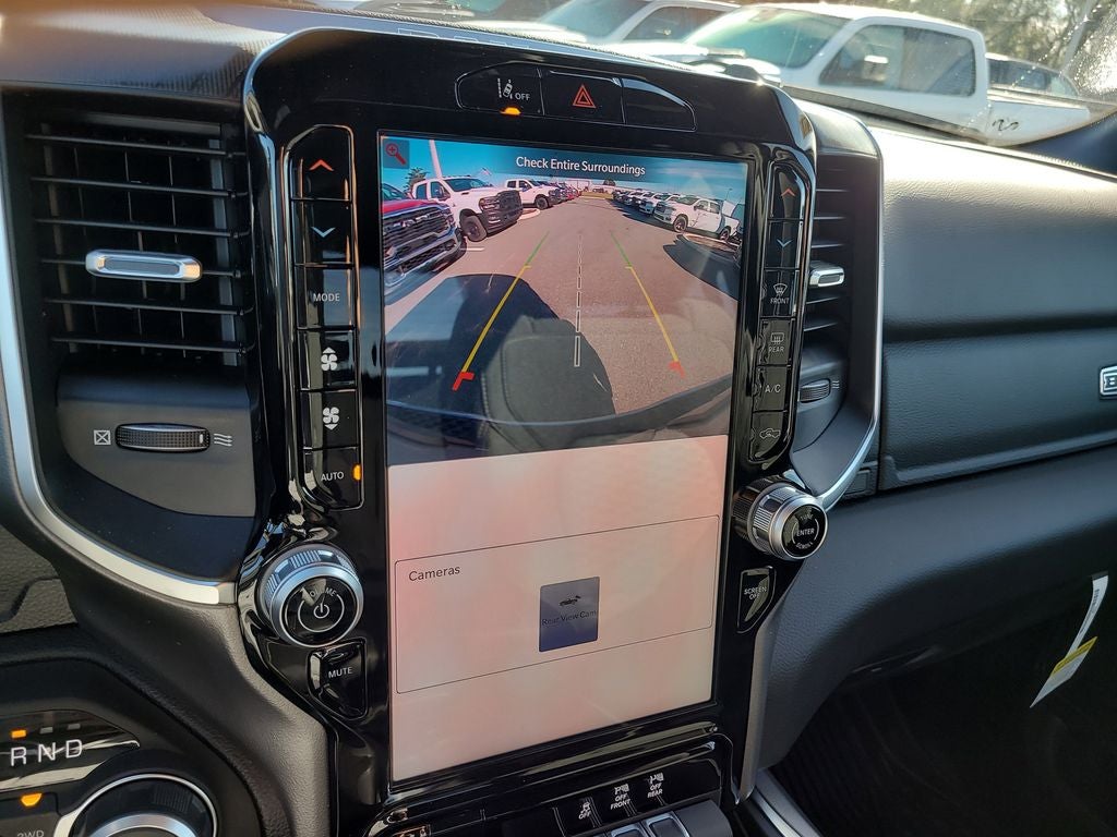 Big Horn Level 2 Equipment Group (115V Auxiliary Power Outlet, 115V Auxiliary Rear Power Outlet, 12 Touchscreen Display, 2nd Row in Floor Storage Bins, 3 Rear Seat Head Restraints, 4 Way Front Headrests, 400W Inverter, 4G LTE Wi-Fi Hot Spot, 9 Amplified Speakers with Subwoofer, Air Conditioning ATC with Dual Zone Control, Apple CarPlay, Auto Power-Folding Mirrors, Auto-Dimming Exterior Driver Mirror, Auto-Dimming Rear-View Mirror, Black Exterior Mirrors, Black Premium Power Mirrors, Body Color Fender Flares, Bucket Seats, Center Console Parts Module, Cluster 7.0 TFT Color Display, Configurable Drive Mode, Connected Travel and Traffic Services, Connectivity - US/Canada, Convex Wide-Angle Exterior Mirror Insert, Deluxe Cloth Bucket Seats, Disassociated Touchscreen Display, Exterior Mirrors Courtesy Lamps, Exterior Mirrors with Heating Element, Exterior Mirrors with Supplemental Signals, Front Seat Back Map Pockets, Full Length Floor Console, Global Telematics Box Module, Glove Box Lamp, Google Android Auto, GPS Antenna Input, GPS Navigation, HD Radio, Heated Front Seats, Heated Steering Wheel, Integrated Center Stack Radio, Integrated Voice Command with Bluetooth®, Leather Wrapped Steering Wheel, LED Dome Lamp with on/Off Switch, LED Footwell Lighting, Manual Adjust 4-Way Front Passenger Seat, Media Hub with 2 Charge Only USBs, Overhead LED Lamps, Power 2-Way Driver Lumbar Adjust, Power Adjust 8-Way Driver Seat, Power Adjustable Pedals, Premium Overhead Console, Radio: Uconnect 5 Navigation with 12.0 Display, Rear 60/40 Folding Seat, Rear Center Armrest, Rear Power Sliding Window, Rear Window Defroster, Remote Tailgate Release, Security Alarm, SiriusXM Radio Service, SiriusXM with 360L, Steering Wheel Mounted Audio Controls, Sun Visors with Illuminated Vanity Mirrors, Universal Garage Door Opener, and USB Host Flip), Night Edition (Accent Color Door Handles, Accent Color Premium Power Mirrors, Accent Color Tailgate Handle, Anti-Spin Differential Rear Axle, Black Exterior Truck Badging, Black Headlamp Bezels, Black Interior Accents, Black Painted Exterior Mirrors Caps, Black Tail Lamp Bezels, Body Color Front Bumper, Body Color Rear Bumper with Step Pads, Dual Exhaust with Black Tips, Grille Black Surround Black Mesh, RAM Grille Badge - Black, and Wheels: 20 x 9.0 Aluminum Painted Clad), Quick Order Package 21Z Big Horn, 4-Wheel Disc Brakes, 48V Belt Starter Generator, 6 Speakers, ABS brakes, Air Conditioning, Alloy wheels, AM/FM radio, Apple CarPlay/Android Auto, Auto High-beam Headlights, Brake assist, Bumpers: chrome, Cloth Bucket Seats, Cluster 12 TFT Color Display, Compass, Delay-off headlights, Driver door bin, Dual front impact airbags, Dual front side impact airbags, Electronic Stability Control, Front anti-roll bar, Front Bucket Seats, Front Center Armrest w/Storage, Front fog lights, Front reading lights, Front wheel independent suspension, Fully automatic headlights, Heated door mirrors, Illuminated entry, Low tire pressure warning, Manual Adjust 4-Way Driver Seat, Manual Folding Exterior Mirrors, MOPAR Front and Rear Rubber Floor Mats, Occupant sensing airbag, Outside temperature display, Overhead airbag, Overhead console, Panic alarm, ParkView Rear Back-Up Camera, Passenger door bin, Passenger vanity mirror, Power door mirrors, Power steering, Power windows, Radio data system, Radio: Uconnect 5 W with 8.4 Display, RAM Grille Badge - Chrome, Rear anti-roll bar, Rear step bumper, Rear Wheelhouse Liners, Remote keyless entry, Speed control, Supplier Part Tracking (J-1), Tachometer, Telescoping steering wheel, Tilt steering wheel, Traction control, Trailer Brake Control, Trip computer, Variably intermittent wipers, and Voltmeter.