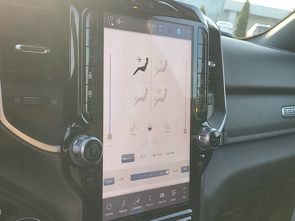 Big Horn Level 2 Equipment Group (115V Auxiliary Power Outlet, 115V Auxiliary Rear Power Outlet, 12 Touchscreen Display, 2nd Row in Floor Storage Bins, 3 Rear Seat Head Restraints, 4 Way Front Headrests, 400W Inverter, 4G LTE Wi-Fi Hot Spot, 9 Amplified Speakers with Subwoofer, Air Conditioning ATC with Dual Zone Control, Apple CarPlay, Auto Power-Folding Mirrors, Auto-Dimming Exterior Driver Mirror, Auto-Dimming Rear-View Mirror, Black Exterior Mirrors, Black Premium Power Mirrors, Body Color Fender Flares, Bucket Seats, Center Console Parts Module, Cluster 7.0 TFT Color Display, Configurable Drive Mode, Connected Travel and Traffic Services, Connectivity - US/Canada, Convex Wide-Angle Exterior Mirror Insert, Deluxe Cloth Bucket Seats, Disassociated Touchscreen Display, Exterior Mirrors Courtesy Lamps, Exterior Mirrors with Heating Element, Exterior Mirrors with Supplemental Signals, Front Seat Back Map Pockets, Full Length Floor Console, Global Telematics Box Module, Glove Box Lamp, Google Android Auto, GPS Antenna Input, GPS Navigation, HD Radio, Heated Front Seats, Heated Steering Wheel, Integrated Center Stack Radio, Integrated Voice Command with Bluetooth®, Leather Wrapped Steering Wheel, LED Dome Lamp with on/Off Switch, LED Footwell Lighting, Manual Adjust 4-Way Front Passenger Seat, Media Hub with 2 Charge Only USBs, Overhead LED Lamps, Power 2-Way Driver Lumbar Adjust, Power Adjust 8-Way Driver Seat, Power Adjustable Pedals, Premium Overhead Console, Radio: Uconnect 5 Navigation with 12.0 Display, Rear 60/40 Folding Seat, Rear Center Armrest, Rear Power Sliding Window, Rear Window Defroster, Remote Tailgate Release, Security Alarm, SiriusXM Radio Service, SiriusXM with 360L, Steering Wheel Mounted Audio Controls, Sun Visors with Illuminated Vanity Mirrors, Universal Garage Door Opener, and USB Host Flip), Night Edition (Accent Color Door Handles, Accent Color Premium Power Mirrors, Accent Color Tailgate Handle, Anti-Spin Differential Rear Axle, Black Exterior Truck Badging, Black Headlamp Bezels, Black Interior Accents, Black Painted Exterior Mirrors Caps, Black Tail Lamp Bezels, Body Color Front Bumper, Body Color Rear Bumper with Step Pads, Dual Exhaust with Black Tips, Grille Black Surround Black Mesh, RAM Grille Badge - Black, and Wheels: 20 x 9.0 Aluminum Painted Clad), Quick Order Package 21Z Big Horn, 4-Wheel Disc Brakes, 48V Belt Starter Generator, 6 Speakers, ABS brakes, Air Conditioning, Alloy wheels, AM/FM radio, Apple CarPlay/Android Auto, Auto High-beam Headlights, Brake assist, Bumpers: chrome, Cloth Bucket Seats, Cluster 12 TFT Color Display, Compass, Delay-off headlights, Driver door bin, Dual front impact airbags, Dual front side impact airbags, Electronic Stability Control, Front anti-roll bar, Front Bucket Seats, Front Center Armrest w/Storage, Front fog lights, Front reading lights, Front wheel independent suspension, Fully automatic headlights, Heated door mirrors, Illuminated entry, Low tire pressure warning, Manual Adjust 4-Way Driver Seat, Manual Folding Exterior Mirrors, MOPAR Front and Rear Rubber Floor Mats, Occupant sensing airbag, Outside temperature display, Overhead airbag, Overhead console, Panic alarm, ParkView Rear Back-Up Camera, Passenger door bin, Passenger vanity mirror, Power door mirrors, Power steering, Power windows, Radio data system, Radio: Uconnect 5 W with 8.4 Display, RAM Grille Badge - Chrome, Rear anti-roll bar, Rear step bumper, Rear Wheelhouse Liners, Remote keyless entry, Speed control, Supplier Part Tracking (J-1), Tachometer, Telescoping steering wheel, Tilt steering wheel, Traction control, Trailer Brake Control, Trip computer, Variably intermittent wipers, and Voltmeter.