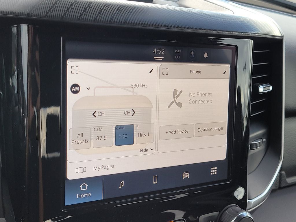 Big Horn Level 1 Equipment Group (115V Auxiliary Power Outlet, 2nd Row in Floor Storage Bins, 3 Rear Seat Head Restraints, 4 Way Front Headrests, 400W Inverter, Auto Power-Folding Mirrors, Auto-Dimming Exterior Driver Mirror, Auto-Dimming Rear-View Mirror, Black Exterior Mirrors, Black Premium Power Mirrors, Body Color Fender Flares, Bucket Seats, Center Console Parts Module, Convex Wide-Angle Exterior Mirror Insert, Deluxe Cloth Bucket Seats, Exterior Mirrors Courtesy Lamps, Exterior Mirrors with Heating Element, Exterior Mirrors with Supplemental Signals, Front Seat Back Map Pockets, Full Length Floor Console, Glove Box Lamp, Heated Front Seats, Heated Steering Wheel, Leather Wrapped Steering Wheel, Manual Adjust 4-Way Front Passenger Seat, Power 2-Way Driver Lumbar Adjust, Power Adjust 8-Way Driver Seat, Power Adjustable Pedals, Rear 60/40 Folding Seat, Rear Center Armrest, Rear Dome with on/Off Switch Lamp, Rear Power Sliding Window, Rear Window Defroster, SiriusXM Radio Service, SiriusXM Satellite Radio, Steering Wheel Mounted Audio Controls, Sun Visors with Illuminated Vanity Mirrors, and Universal Garage Door Opener), Quick Order Package 27Z Big Horn, 33 Gallon Fuel Tank, 4-Wheel Disc Brakes, 48V Belt Starter Generator, 4G LTE Wi-Fi Hot Spot, 6 Speakers, ABS brakes, Air Conditioning, Alloy wheels, AM/FM radio, Apple CarPlay, Apple CarPlay/Android Auto, Auto High-beam Headlights, Brake assist, Bumpers: chrome, Cloth Bucket Seats, Compass, Connectivity - US/Canada, Delay-off headlights, Driver door bin, Dual front impact airbags, Dual front side impact airbags, Electronic Stability Control, Front anti-roll bar, Front Bucket Seats, Front Center Armrest w/Storage, Front fog lights, Front License Plate Bracket, Front reading lights, Front wheel independent suspension, Fully automatic headlights, Global Telematics Box Module, Google Android Auto, GPS Antenna Input, Heated door mirrors, Illuminated entry, Integrated Center Stack Radio, Integrated Voice Command with Bluetooth®, Low tire pressure warning, Manual Adjust 4-Way Driver Seat, Manual Folding Exterior Mirrors, Manufacturer's Statement of Origin, MOPAR Front and Rear Rubber Floor Mats, Occupant sensing airbag, Outside temperature display, Overhead airbag, Overhead console, Panic alarm, ParkView Rear Back-Up Camera, Passenger door bin, Passenger vanity mirror, Power door mirrors, Power steering, Power windows, Radio data system, Radio: Uconnect 5 W with 8.4 Display, RAM Grille Badge - Chrome, Rear anti-roll bar, Rear step bumper, Rear Wheelhouse Liners, Remote keyless entry, Speed control, Supplier Part Tracking (J-1), Tachometer, Telescoping steering wheel, Tilt steering wheel, Traction control, Trip computer, USB Host Flip, Variably intermittent wipers, Voltmeter, and Wheels: 18 x 8 Cast-Aluminum Painted.