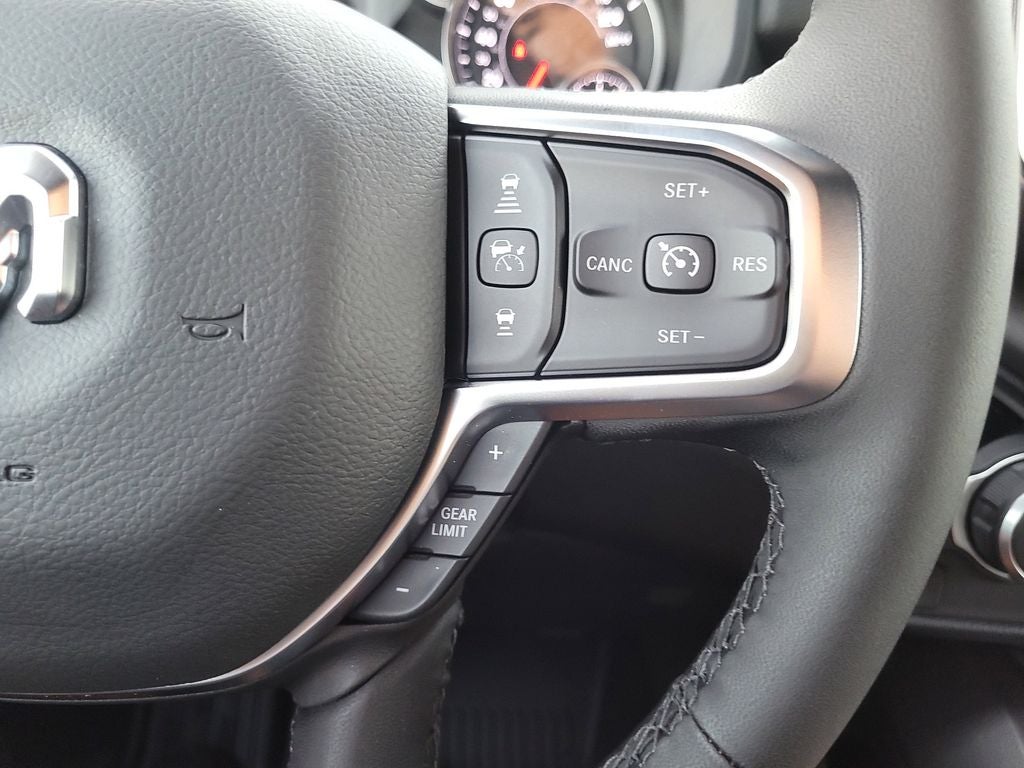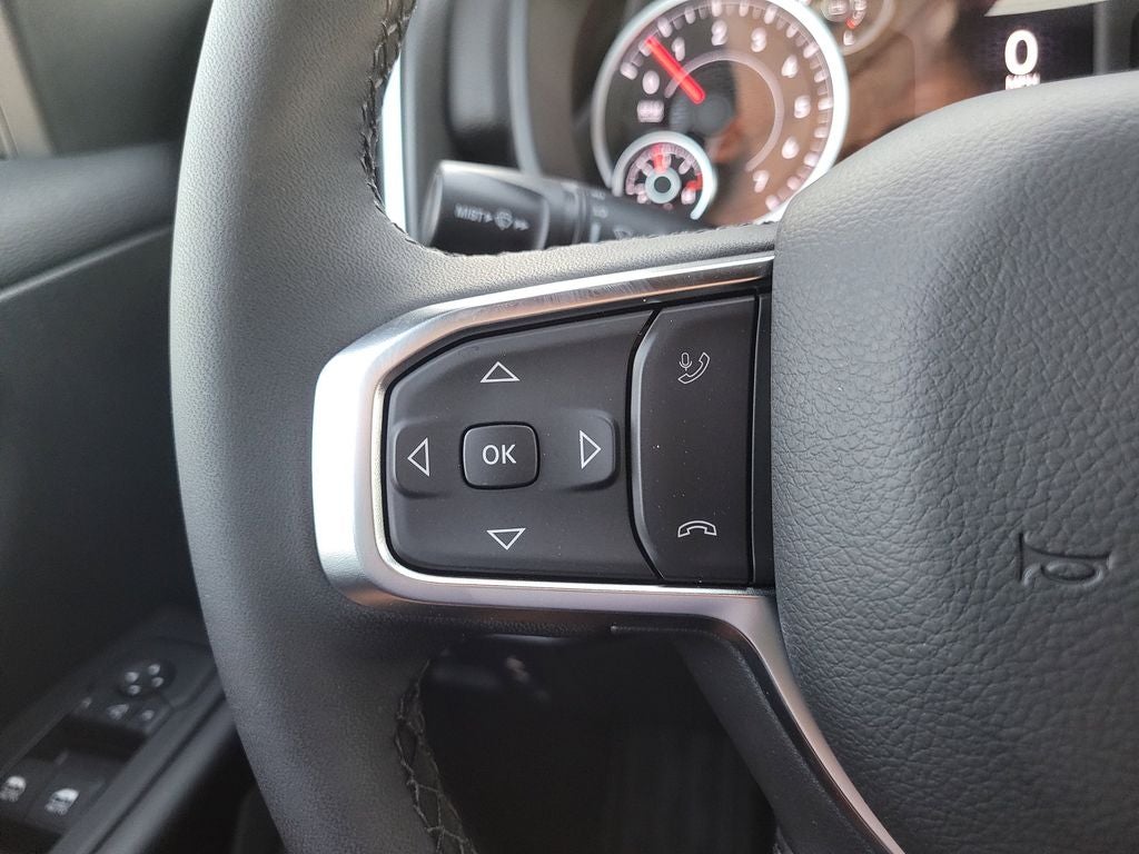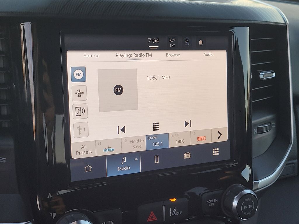Bed Utility Group (Exterior 115V AC Outlet, MOPAR 4 Adjustable Cargo Tie-Down Hooks, MOPAR Spray in Bedliner, and Pick-Up Box Lighting), Big Horn Level 1 Equipment Group (115V Auxiliary Power Outlet, 2nd Row in Floor Storage Bins, 3 Rear Seat Head Restraints, 4 Way Front Headrests, 400W Inverter, Auto Power-Folding Mirrors, Auto-Dimming Exterior Driver Mirror, Auto-Dimming Rear-View Mirror, Black Exterior Mirrors, Black Premium Power Mirrors, Body Color Fender Flares, Bucket Seats, Center Console Parts Module, Convex Wide-Angle Exterior Mirror Insert, Deluxe Cloth Bucket Seats, Exterior Mirrors Courtesy Lamps, Exterior Mirrors with Heating Element, Exterior Mirrors with Supplemental Signals, Front Seat Back Map Pockets, Full Length Floor Console, Glove Box Lamp, Heated Front Seats, Heated Steering Wheel, Leather Wrapped Steering Wheel, Manual Adjust 4-Way Front Passenger Seat, Power 2-Way Driver Lumbar Adjust, Power Adjust 8-Way Driver Seat, Power Adjustable Pedals, Rear 60/40 Folding Seat, Rear Center Armrest, Rear Dome with on/Off Switch Lamp, Rear Power Sliding Window, Rear Window Defroster, SiriusXM Radio Service, SiriusXM Satellite Radio, Steering Wheel Mounted Audio Controls, Sun Visors with Illuminated Vanity Mirrors, and Universal Garage Door Opener), Night Edition (Accent Color Door Handles, Accent Color Premium Power Mirrors, Accent Color Tailgate Handle, Anti-Spin Differential Rear Axle, Black Exterior Truck Badging, Black Headlamp Bezels, Black Interior Accents, Black Painted Exterior Mirrors Caps, Black Tail Lamp Bezels, Body Color Front Bumper, Body Color Rear Bumper with Step Pads, Dual Exhaust with Black Tips, Grille Black Surround Black Mesh, RAM Grille Badge - Black, and Wheels: 20 x 9.0 Aluminum Painted Clad), Quick Order Package 27Z Big Horn, 4-Wheel Disc Brakes, 48V Belt Starter Generator, 4G LTE Wi-Fi Hot Spot, 6 Speakers, ABS brakes, Air Conditioning, Alloy wheels, AM/FM radio, Apple CarPlay, Apple CarPlay/Android Auto, Auto High-beam Headlights, Brake assist, Bumpers: chrome, Cloth Bucket Seats, Compass, Connectivity - US/Canada, Delay-off headlights, Driver door bin, Dual front impact airbags, Dual front side impact airbags, Electronic Stability Control, Front anti-roll bar, Front Bucket Seats, Front Center Armrest w/Storage, Front fog lights, Front License Plate Bracket, Front reading lights, Front wheel independent suspension, Fully automatic headlights, Global Telematics Box Module, Google Android Auto, GPS Antenna Input, Heated door mirrors, Illuminated entry, Integrated Center Stack Radio, Integrated Voice Command with Bluetooth®, Low tire pressure warning, Manual Adjust 4-Way Driver Seat, Manual Folding Exterior Mirrors, Manufacturer's Statement of Origin, MOPAR Front and Rear Rubber Floor Mats, Occupant sensing airbag, Outside temperature display, Overhead airbag, Overhead console, Panic alarm, ParkView Rear Back-Up Camera, Passenger door bin, Passenger vanity mirror, Power door mirrors, Power steering, Power windows, Radio data system, Radio: Uconnect 5 W with 8.4 Display, RAM Grille Badge - Chrome, Rear anti-roll bar, Rear step bumper, Rear Underseat Compartment Storage, Rear Wheelhouse Liners, Remote keyless entry, Speed control, Supplier Part Tracking (J-1), Tachometer, Telescoping steering wheel, Tilt steering wheel, Traction control, Trip computer, USB Host Flip, Variably intermittent wipers, and Voltmeter.