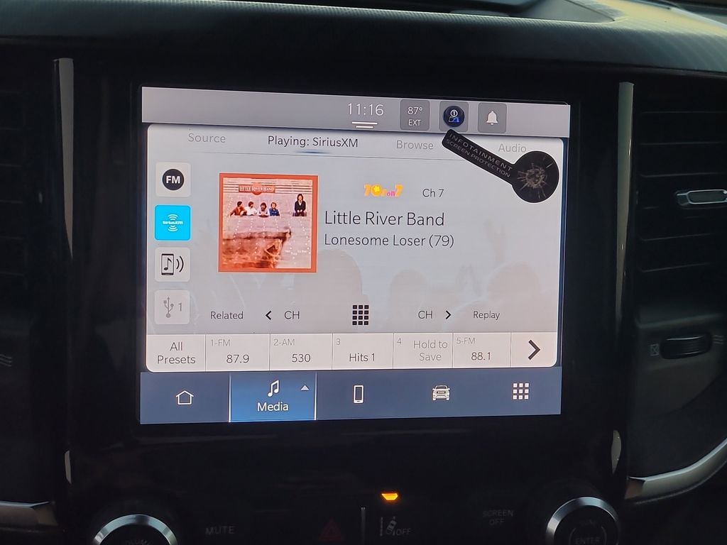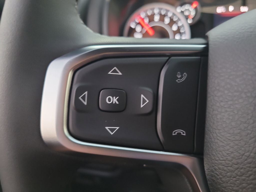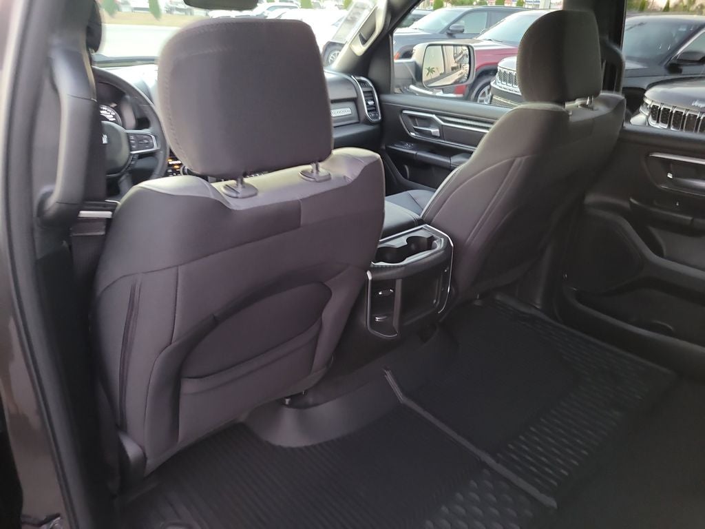Bed Utility Group (Exterior 115V AC Outlet, MOPAR 4 Adjustable Cargo Tie-Down Hooks, MOPAR Spray in Bedliner, and Pick-Up Box Lighting), Big Horn Level 1 Equipment Group (115V Auxiliary Power Outlet, 2nd Row in Floor Storage Bins, 3 Rear Seat Head Restraints, 4 Way Front Headrests, 400W Inverter, Auto Power-Folding Mirrors, Auto-Dimming Exterior Driver Mirror, Auto-Dimming Rear-View Mirror, Black Exterior Mirrors, Black Premium Power Mirrors, Body Color Fender Flares, Bucket Seats, Center Console Parts Module, Convex Wide-Angle Exterior Mirror Insert, Deluxe Cloth Bucket Seats, Exterior Mirrors Courtesy Lamps, Exterior Mirrors with Heating Element, Exterior Mirrors with Supplemental Signals, Front Seat Back Map Pockets, Full Length Floor Console, Glove Box Lamp, Heated Front Seats, Heated Steering Wheel, Leather Wrapped Steering Wheel, Manual Adjust 4-Way Front Passenger Seat, Power 2-Way Driver Lumbar Adjust, Power Adjust 8-Way Driver Seat, Power Adjustable Pedals, Rear 60/40 Folding Seat, Rear Center Armrest, Rear Dome with on/Off Switch Lamp, Rear Power Sliding Window, Rear Window Defroster, SiriusXM Radio Service, SiriusXM Satellite Radio, Steering Wheel Mounted Audio Controls, Sun Visors with Illuminated Vanity Mirrors, and Universal Garage Door Opener), Off Road Group (E-Locker Rear Axle, Front Extra Heavy Duty Shock Absorbers, Off Road Decals, Raised Ride Height, Rear Extra Heavy Duty Shock Absorbers, Selec-Speed Control, and Tow Hooks), Quick Order Package 27Z Big Horn, 4-Wheel Disc Brakes, 48V Belt Starter Generator, 4G LTE Wi-Fi Hot Spot, 6 Speakers, 9 Amplified Speakers with Subwoofer, ABS brakes, Air Conditioning, Alloy wheels, AM/FM radio, Apple CarPlay, Apple CarPlay/Android Auto, Auto High-beam Headlights, Brake assist, Bumpers: chrome, Cloth Bucket Seats, Compass, Connectivity - US/Canada, Delay-off headlights, Driver door bin, Dual front impact airbags, Dual front side impact airbags, Electronic Stability Control, Front anti-roll bar, Front Bucket Seats, Front Center Armrest w/Storage, Front fog lights, Front reading lights, Front wheel independent suspension, Fully automatic headlights, Global Telematics Box Module, Google Android Auto, GPS Antenna Input, Heated door mirrors, Illuminated entry, Integrated Center Stack Radio, Integrated Voice Command with Bluetooth®, Low tire pressure warning, Manual Adjust 4-Way Driver Seat, Manual Folding Exterior Mirrors, Manufacturer's Statement of Origin, MOPAR Front and Rear Rubber Floor Mats, Occupant sensing airbag, Outside temperature display, Overhead airbag, Overhead console, Panic alarm, ParkView Rear Back-Up Camera, Passenger door bin, Passenger vanity mirror, Power door mirrors, Power steering, Power windows, Radio data system, Radio: Uconnect 5 W with 8.4 Display, RAM Grille Badge - Chrome, Rear anti-roll bar, Rear step bumper, Rear Wheelhouse Liners, Remote keyless entry, Speed control, Supplier Part Tracking (J-1), Tachometer, Telescoping steering wheel, Tilt steering wheel, Traction control, Trailer Brake Control, Trip computer, USB Host Flip, Variably intermittent wipers, and Voltmeter.