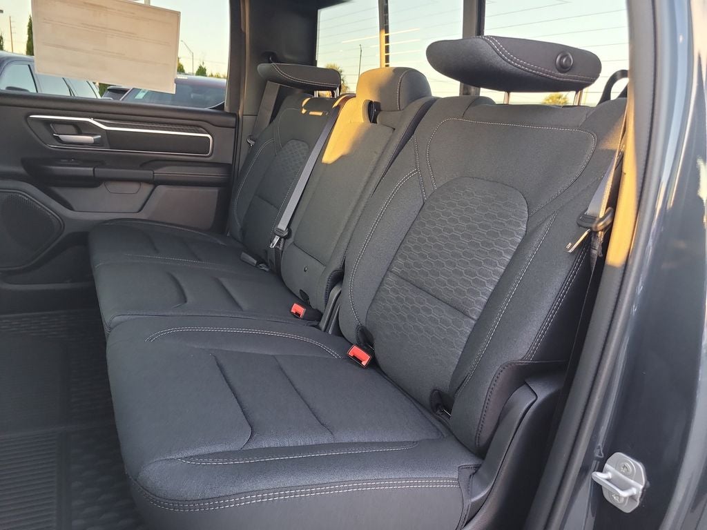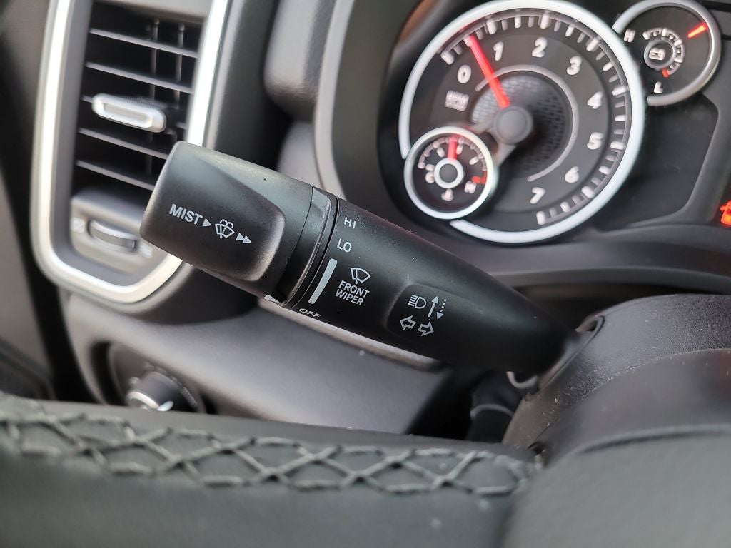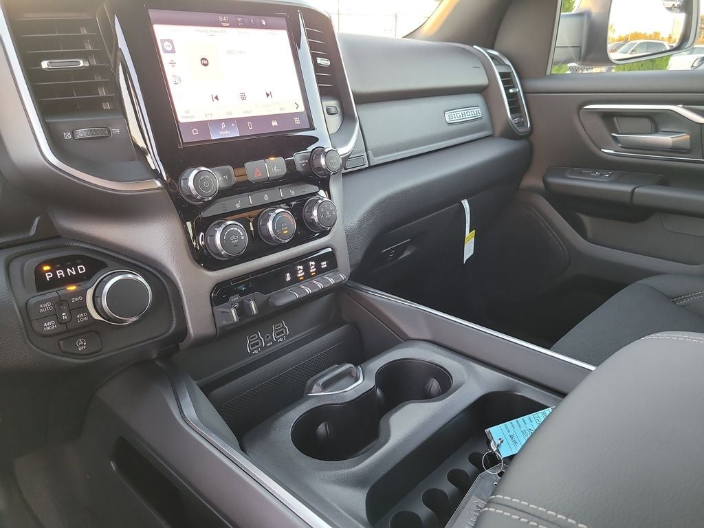 Bed Utility Group (Exterior 115V AC Outlet, MOPAR 4 Adjustable Cargo Tie-Down Hooks, MOPAR Spray in Bedliner, and Pick-Up Box Lighting), Big Horn Level 1 Equipment Group (115V Auxiliary Power Outlet, 2nd Row in Floor Storage Bins, 3 Rear Seat Head Restraints, 4 Way Front Headrests, 400W Inverter, Auto Power-Folding Mirrors, Auto-Dimming Exterior Driver Mirror, Auto-Dimming Rear-View Mirror, Black Exterior Mirrors, Black Premium Power Mirrors, Body Color Fender Flares, Bucket Seats, Center Console Parts Module, Convex Wide-Angle Exterior Mirror Insert, Deluxe Cloth Bucket Seats, Exterior Mirrors Courtesy Lamps, Exterior Mirrors with Heating Element, Exterior Mirrors with Supplemental Signals, Front Seat Back Map Pockets, Full Length Floor Console, Glove Box Lamp, Heated Front Seats, Heated Steering Wheel, Leather Wrapped Steering Wheel, Manual Adjust 4-Way Front Passenger Seat, Power 2-Way Driver Lumbar Adjust, Power Adjust 8-Way Driver Seat, Power Adjustable Pedals, Rear 60/40 Folding Seat, Rear Center Armrest, Rear Dome with on/Off Switch Lamp, Rear Power Sliding Window, Rear Window Defroster, SiriusXM Radio Service, SiriusXM Satellite Radio, Steering Wheel Mounted Audio Controls, Sun Visors with Illuminated Vanity Mirrors, and Universal Garage Door Opener), Night Edition (Accent Color Door Handles, Accent Color Premium Power Mirrors, Accent Color Tailgate Handle, Anti-Spin Differential Rear Axle, Black Exterior Truck Badging, Black Headlamp Bezels, Black Interior Accents, Black Painted Exterior Mirrors Caps, Black Tail Lamp Bezels, Body Color Front Bumper, Body Color Rear Bumper with Step Pads, Dual Exhaust with Black Tips, Grille Black Surround Black Mesh, RAM Grille Badge - Black, and Wheels: 20 x 9.0 Aluminum Painted Clad), Quick Order Package 27Z Big Horn, 33 Gallon Fuel Tank, 4-Wheel Disc Brakes, 48V Belt Starter Generator, 4G LTE Wi-Fi Hot Spot, 6 Speakers, ABS brakes, Air Conditioning, Alloy wheels, AM/FM radio, Apple CarPlay, Apple CarPlay/Android Auto, Auto High-beam Headlights, Brake assist, Bumpers: chrome, Cloth Bucket Seats, Compass, Connectivity - US/Canada, Delay-off headlights, Driver door bin, Dual front impact airbags, Dual front side impact airbags, Electronic Stability Control, Front anti-roll bar, Front Bucket Seats, Front Center Armrest w/Storage, Front fog lights, Front License Plate Bracket, Front reading lights, Front wheel independent suspension, Fully automatic headlights, Global Telematics Box Module, Google Android Auto, GPS Antenna Input, Heated door mirrors, Illuminated entry, Integrated Center Stack Radio, Integrated Voice Command with Bluetooth®, Low tire pressure warning, Manual Adjust 4-Way Driver Seat, Manual Folding Exterior Mirrors, Manufacturer's Statement of Origin, MOPAR Front and Rear Rubber Floor Mats, Occupant sensing airbag, Outside temperature display, Overhead airbag, Overhead console, Panic alarm, ParkView Rear Back-Up Camera, Passenger door bin, Passenger vanity mirror, Power door mirrors, Power steering, Power windows, Radio data system, Radio: Uconnect 5 W with 8.4 Display, RAM Grille Badge - Chrome, Rear anti-roll bar, Rear step bumper, Remote keyless entry, Speed control, Supplier Part Tracking (J-1), Tachometer, Telescoping steering wheel, Tilt steering wheel, Traction control, Trailer Brake Control, Trip computer, USB Host Flip, Variably intermittent wipers, and Voltmeter.