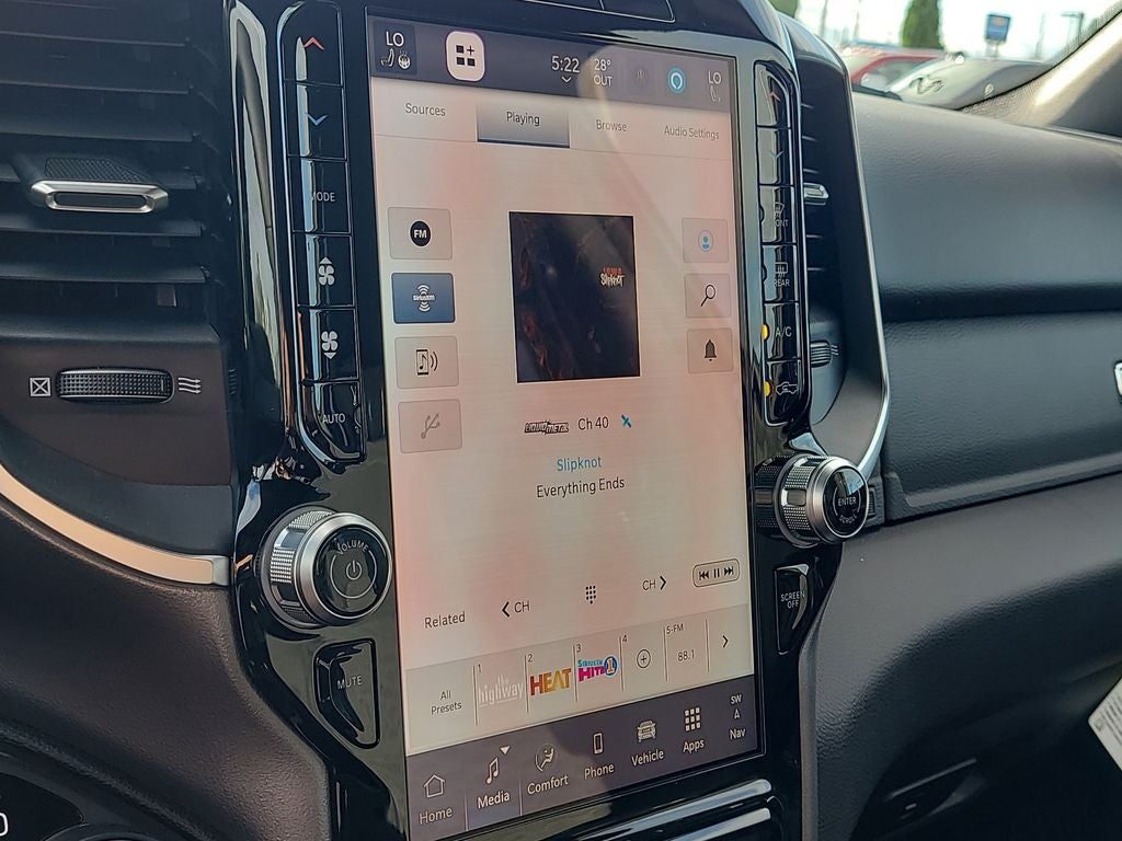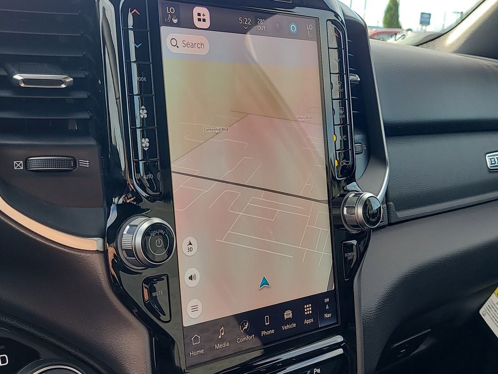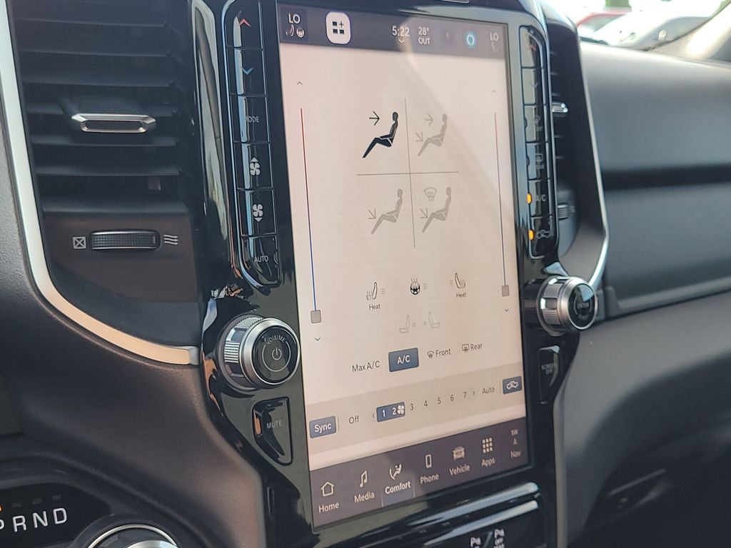 Bed Utility Group (Exterior 115V AC Outlet, MOPAR 4 Adjustable Cargo Tie-Down Hooks, MOPAR Spray in Bedliner, and Pick-Up Box Lighting), Big Horn Level 2 Equipment Group (115V Auxiliary Power Outlet, 115V Auxiliary Rear Power Outlet, 12 Touchscreen Display, 2nd Row in Floor Storage Bins, 3 Rear Seat Head Restraints, 4 Way Front Headrests, 400W Inverter, 4G LTE Wi-Fi Hot Spot, 9 Amplified Speakers with Subwoofer, Air Conditioning ATC with Dual Zone Control, Apple CarPlay, Auto Power-Folding Mirrors, Auto-Dimming Exterior Driver Mirror, Auto-Dimming Rear-View Mirror, Black Exterior Mirrors, Black Premium Power Mirrors, Body Color Fender Flares, Bucket Seats, Center Console Parts Module, Cluster 7.0 TFT Color Display, Configurable Drive Mode, Connected Travel and Traffic Services, Connectivity - US/Canada, Convex Wide-Angle Exterior Mirror Insert, Deluxe Cloth Bucket Seats, Disassociated Touchscreen Display, Exterior Mirrors Courtesy Lamps, Exterior Mirrors with Heating Element, Exterior Mirrors with Supplemental Signals, Front Seat Back Map Pockets, Full Length Floor Console, Global Telematics Box Module, Glove Box Lamp, Google Android Auto, GPS Antenna Input, GPS Navigation, HD Radio, Heated Front Seats, Heated Steering Wheel, Integrated Center Stack Radio, Integrated Voice Command with Bluetooth®, Leather Wrapped Steering Wheel, LED Dome Lamp with on/Off Switch, LED Footwell Lighting, Manual Adjust 4-Way Front Passenger Seat, Media Hub with 2 Charge Only USBs, Overhead LED Lamps, Power 2-Way Driver Lumbar Adjust, Power Adjust 8-Way Driver Seat, Power Adjustable Pedals, Premium Overhead Console, Radio: Uconnect 5 Navigation with 12.0 Display, Rear 60/40 Folding Seat, Rear Center Armrest, Rear Power Sliding Window, Rear Window Defroster, Remote Tailgate Release, Security Alarm, SiriusXM Radio Service, SiriusXM with 360L, Steering Wheel Mounted Audio Controls, Sun Visors with Illuminated Vanity Mirrors, Universal Garage Door Opener, and USB Host Flip), Night Edition (Accent Color Door Handles, Accent Color Premium Power Mirrors, Accent Color Tailgate Handle, Anti-Spin Differential Rear Axle, Black Exterior Truck Badging, Black Headlamp Bezels, Black Interior Accents, Black Painted Exterior Mirrors Caps, Black Tail Lamp Bezels, Body Color Front Bumper, Body Color Rear Bumper with Step Pads, Dual Exhaust with Black Tips, Grille Black Surround Black Mesh, RAM Grille Badge - Black, and Wheels: 20 x 9.0 Aluminum Painted Clad), Quick Order Package 21Z Big Horn, 4-Wheel Disc Brakes, 48V Belt Starter Generator, 6 Speakers, ABS brakes, Air Conditioning, Alloy wheels, AM/FM radio, Apple CarPlay/Android Auto, Auto High-beam Headlights, Brake assist, Bumpers: chrome, Cloth Bucket Seats, Compass, Delay-off headlights, Driver door bin, Dual front impact airbags, Dual front side impact airbags, Electronic Stability Control, Front anti-roll bar, Front Bucket Seats, Front Center Armrest w/Storage, Front fog lights, Front License Plate Bracket, Front reading lights, Front wheel independent suspension, Fully automatic headlights, Heated door mirrors, Illuminated entry, Low tire pressure warning, Manual Adjust 4-Way Driver Seat, Manual Folding Exterior Mirrors, Manufacturer's Statement of Origin, MOPAR Front and Rear Rubber Floor Mats, Occupant sensing airbag, Outside temperature display, Overhead airbag, Overhead console, Panic alarm, ParkView Rear Back-Up Camera, Passenger door bin, Passenger vanity mirror, Power door mirrors, Power steering, Power windows, Radio data system, Radio: Uconnect 5 W with 8.4 Display, RAM Grille Badge - Chrome, Rear anti-roll bar, Rear step bumper, Rear Underseat Compartment Storage, Rear Wheelhouse Liners, Remote keyless entry, Speed control, Supplier Part Tracking (J-1), Tachometer, Telescoping steering wheel, Tilt steering wheel, Traction control, Trailer Brake Cont