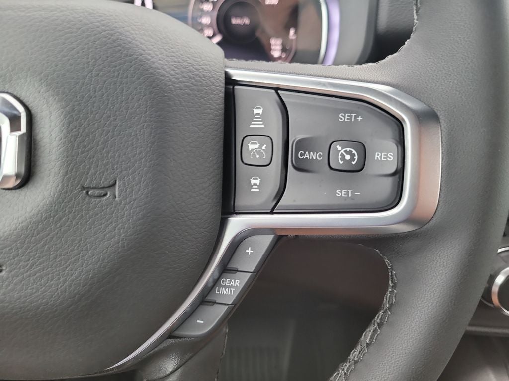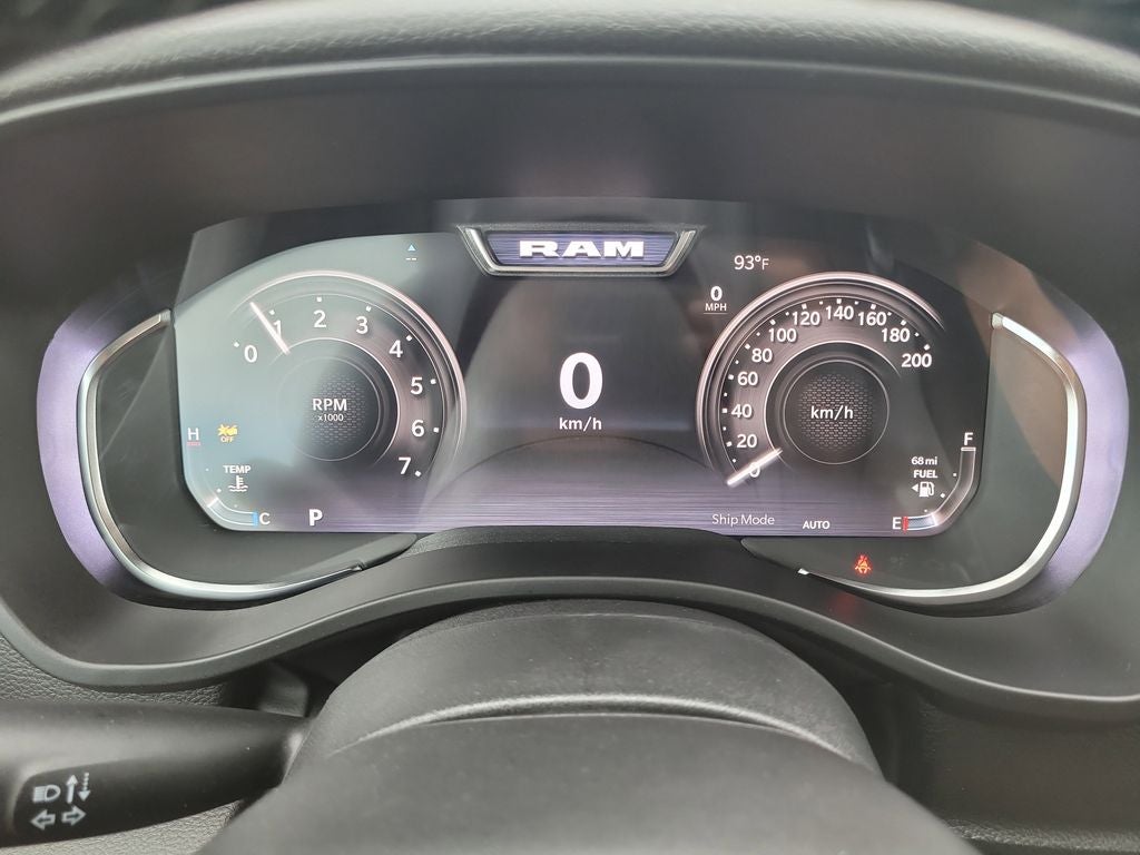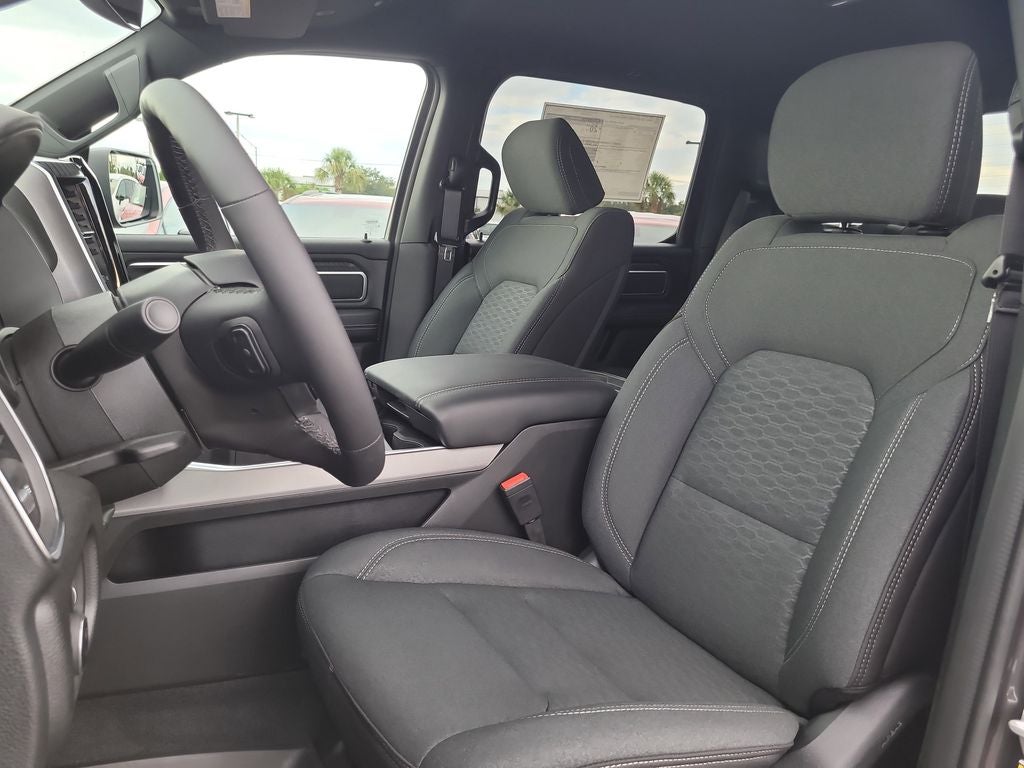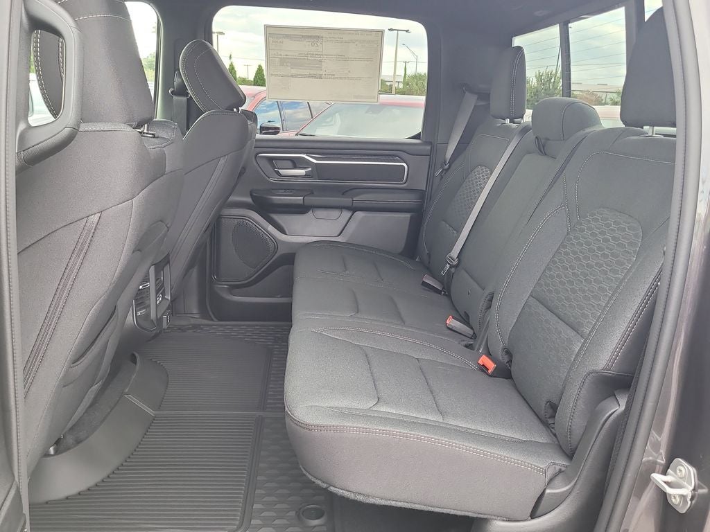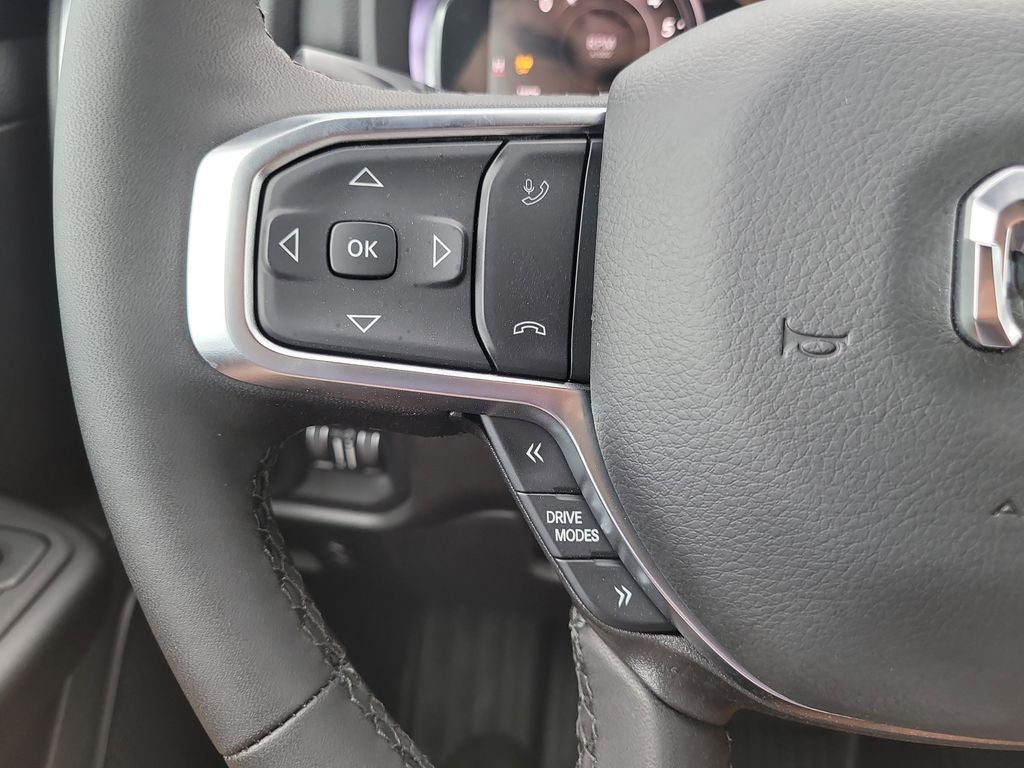 Big Horn Level 2 Equipment Group (115V Auxiliary Power Outlet, 115V Auxiliary Rear Power Outlet, 12 Touchscreen Display, 3 Rear Seat Head Restraints, 4 Way Front Headrests, 400W Inverter, 4G LTE Wi-Fi Hot Spot, Apple CarPlay, Auto Power-Folding Mirrors, Auto-Dimming Exterior Driver Mirror, Auto-Dimming Rear-View Mirror, Black Exterior Mirrors, Black Premium Power Mirrors, Body Color Fender Flares, Bucket Seats, Center Console Parts Module, Cluster 7.0 TFT Color Display, Configurable Drive Mode, Connectivity - US/Canada, Convex Wide-Angle Exterior Mirror Insert, Deluxe Cloth Bucket Seats, Disassociated Touchscreen Display, Exterior Mirrors Courtesy Lamps, Front Seat Back Map Pockets, Full Length Floor Console, Glove Box Lamp, Google Android Auto, GPS Antenna Input, GPS Navigation, HD Radio, Heated Front Seats, Heated Steering Wheel, Integrated Center Stack Radio, Leather Wrapped Steering Wheel, LED Footwell Lighting, Manual Adjust 4-Way Front Passenger Seat, Overhead LED Lamps, Power 2-Way Driver Lumbar Adjust, Power Adjust 8-Way Driver Seat, Power Adjustable Pedals, Premium Overhead Console, Rear 60/40 Folding Seat, Rear Center Armrest, Rear Power Sliding Window, Rear Window Defroster, Remote Tailgate Release, Security Alarm, SiriusXM Radio Service, Steering Wheel Mounted Audio Controls, Universal Garage Door Opener, and USB Host Flip), Night Edition (Accent Color Door Handles, Accent Color Premium Power Mirrors, Accent Color Tailgate Handle, Anti-Spin Differential Rear Axle, Black Exterior Truck Badging, Black Headlamp Bezels, Black Interior Accents, Black Painted Exterior Mirrors Caps, Black Tail Lamp Bezels, Body Color Front Bumper, Grille Black Surround Black Mesh, RAM Grille Badge - Black, and Wheels: 20 x 9.0 Aluminum Painted Clad), Quick Order Package 21Z Big Horn, 4-Wheel Disc Brakes, 48V Belt Starter Generator, 6 Speakers, ABS brakes, Air Conditioning, Alloy wheels, AM/FM radio, Apple CarPlay/Android Auto, Auto High-beam Headlights, Brake assist, Bumpers: chrome, Cloth Bucket Seats, Cluster 12 TFT Color Display, Compass, Delay-off headlights, Driver door bin, Dual front impact airbags, Dual front side impact airbags, Electronic Stability Control, Front anti-roll bar, Front Bucket Seats, Front Center Armrest w/Storage, Front fog lights, Front reading lights, Front wheel independent suspension, Fully automatic headlights, Heated door mirrors, Illuminated entry, Low tire pressure warning, Manual Adjust 4-Way Driver Seat, Manual Folding Exterior Mirrors, Occupant sensing airbag, Outside temperature display, Overhead airbag, Overhead console, Panic alarm, ParkView Rear Back-Up Camera, Passenger door bin, Passenger vanity mirror, Power door mirrors, Power steering, Power windows, Radio data system, RAM Grille Badge - Chrome, Rear anti-roll bar, Rear step bumper, Rear Wheelhouse Liners, Remote keyless entry, Speed control, Supplier Part Tracking (J-1), Tachometer, Telescoping steering wheel, Tilt steering wheel, Traction control, Trip computer, Variably intermittent wipers, Voltmeter, and Wheels: 18 x 8 Cast-Aluminum Painted.