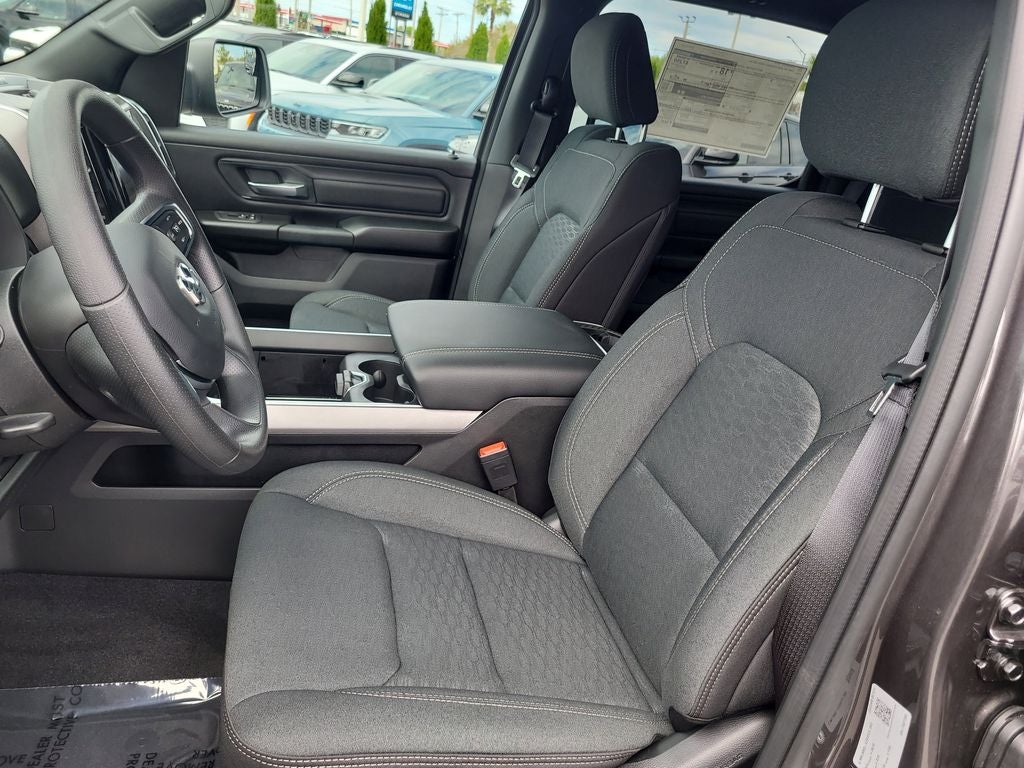 Bed Utility Group (400W Inverter, Exterior 115V AC Outlet, MOPAR 4 Adjustable Cargo Tie-Down Hooks, MOPAR Deployable Bed Step, MOPAR Spray in Bedliner, and Pick-Up Box Lighting), Black Express Edition (2nd Row in Floor Storage Bins, 3 Rear Seat Head Restraints, 4 Way Front Headrests, Anti-Spin Differential Rear Axle, Black Chrome Front Lower Fascia Trim, Black Interior Accents, Body Color Front Bumper, Body Color Rear Bumper with Step Pads, Bridgestone Brand Tires, Bucket Seats, Center Console Parts Module, Cloth Bucket Seats, Cluster 7.0 TFT Color Display, For More Info, Call 800-643-2112, Front and Rear Floor Mats, Front LED Fog Lamps, Full Length Floor Console, Grille Black Surround Black Mesh, Manual Adjust 4-Way Driver Seat, Manual Adjust 4-Way Front Passenger Seat, Mopar Black Tubular Side Steps, Rear Folding Seat, Rear Power Sliding Window, SiriusXM Radio Service, SiriusXM Satellite Radio, Sport Performance Hood, and Wheels: 20 x 9.0 Aluminum Painted Clad), Quick Order Package 27D Express (Front Center Seat Cushion Storage, Grille Surround 1 Body Color Texture 1 Black, and Wheels: 20 x 9.0 Aluminum Polished Painted), Tradesman Level 1 Equipment Group (Cloth Bench Seat), 4-Wheel Disc Brakes, 48V Belt Starter Generator, 4G LTE Wi-Fi Hot Spot, 6 Speakers, ABS brakes, Air Conditioning, AM/FM radio, Apple CarPlay, Apple CarPlay/Android Auto, Auto High-beam Headlights, Black Exterior Mirrors, Brake assist, Compass, Connectivity - US/Canada, Delay-off headlights, Driver door bin, Dual front impact airbags, Dual front side impact airbags, Electronic Stability Control, Exterior Mirrors with Heating Element, For Details Visit DriveUconnect.com, Front anti-roll bar, Front Center Armrest, Front License Plate Bracket, Front reading lights, Front wheel independent suspension, Fully automatic headlights, Global Telematics Box Module, Google Android Auto, GPS Antenna Input, Heated door mirrors, Heavy Duty Vinyl 40/20/40 Split Bench Seat, Illuminated entry, Integrated Center Stack Radio, Integrated Voice Command with Bluetooth®, Low tire pressure warning, Manual Folding Exterior Mirrors, Manufacturer's Statement of Origin, Occupant sensing airbag, Outside temperature display, Overhead airbag, Overhead console, Panic alarm, ParkView Rear Back-Up Camera, Passenger door bin, Passenger vanity mirror, Power door mirrors, Power steering, Power windows, Radio data system, Radio: Uconnect 5 W with 8.4 Display, Rear anti-roll bar, Rear step bumper, Remote keyless entry, Speed control, Supplier Part Tracking (J-1), Tachometer, Telescoping steering wheel, Tilt steering wheel, Traction control, USB Host Flip, Variably intermittent wipers, Voltmeter, and Wheels: 18 x 7.5 Steel PainteD.