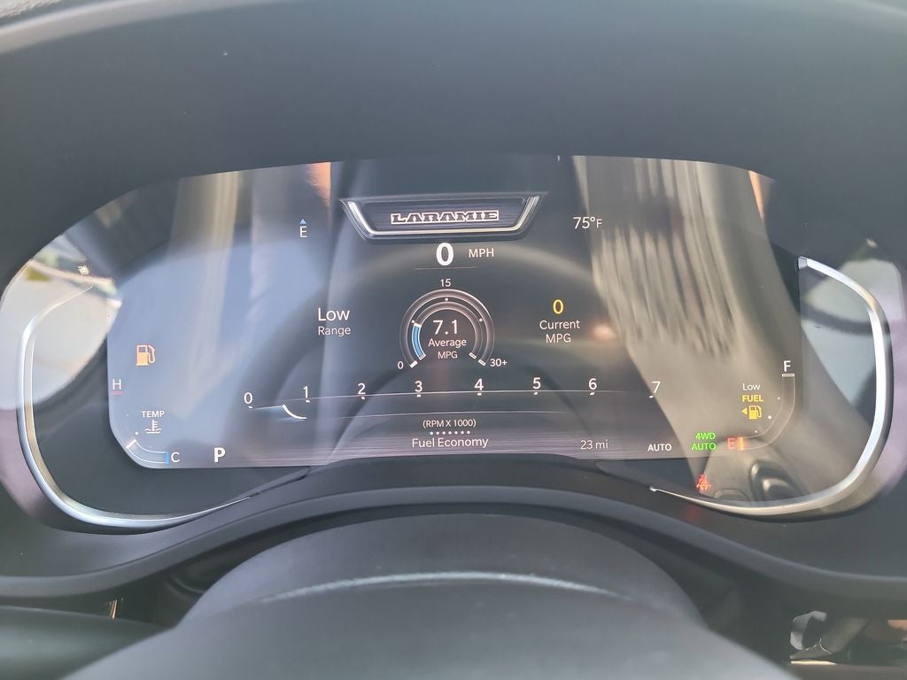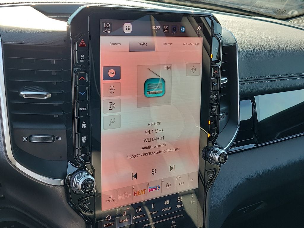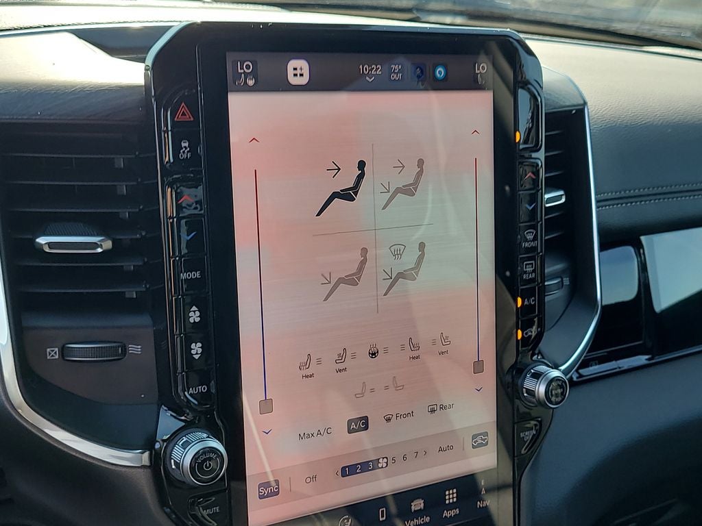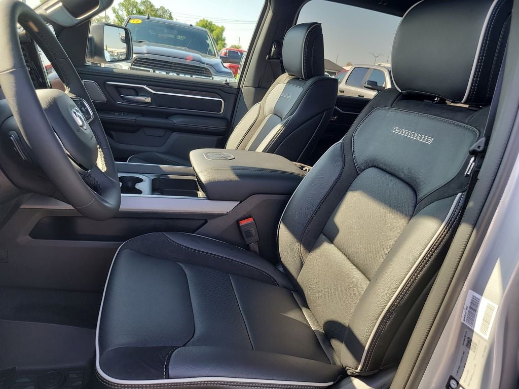 Bed Utility Group (Exterior 115V AC Outlet, MOPAR 4 Adjustable Cargo Tie-Down Hooks, and MOPAR Spray in Bedliner), Laramie Level 2 Equipment Group (14.4 Touchscreen Display, 4G LTE Wi-Fi Hot Spot, Cluster 12 TFT Color Display, Connected Travel and Traffic Services, Connectivity - US/Canada, Front Passenger Interactive Display, GPS Navigation, Harman/Kardon 19 Speaker Premium Sound, Integrated Center Stack Radio, Integrated Voice Command with Bluetooth®, Power Tailgate, Radio: Uconnect 5 Nav with 14.4 Display, Rain Sensitive Windshield Wipers, SiriusXM Radio Service, SiriusXM with 360L, and USB Host Flip), Quick Order Package 27H Laramie, Sport Appearance Package (Accent Color Premium Power Mirrors, Auto Power-Folding Mirrors, Auto-Dimming Exterior Driver Mirror, Black Interior Accents, Black Painted Exterior Mirrors Caps, Body Color Front Bumper, Body Color Rear Bumper with Step Pads, Bridgestone Brand Tires, Convex Wide-Angle Exterior Mirror Insert, Exterior Mirrors Courtesy Lamps, Exterior Mirrors with Heating Element, Exterior Mirrors with Memory, Exterior Mirrors with Supplemental Signals, Grille Surround 3 Body Color Tex 2 Black, RAM Grille Badge - Chrome, and Sport Performance Hood), 10 Speakers, 4-Wheel Disc Brakes, ABS brakes, Active Noise Control System, Adjustable pedals, Air Conditioning, Alloy wheels, AM/FM radio: SiriusXM with 360L, Anti-Spin Differential Rear Axle, Apple CarPlay/Android Auto, Audio memory, Auto High-beam Headlights, Auto-dimming door mirrors, Auto-dimming Rear-View mirror, Automatic temperature control, Brake assist, Bumpers: chrome, Chrome Exterior Mirrors, Compass, Delay-off headlights, Driver door bin, Driver vanity mirror, Dual front impact airbags, Dual front side impact airbags, Electronic Stability Control, Front anti-roll bar, Front Bucket Seats, Front Center Armrest w/Storage, Front dual zone A/C, Front fog lights, Front License Plate Bracket, Front reading lights, Front wheel independent suspension, Fully automatic headlights, Garage door transmitter, Heated door mirrors, Heated front seats, Heated rear seats, Heated steering wheel, Illuminated entry, Leather steering wheel, Leather Trimmed Bucket Seats, Low tire pressure warning, Manufacturer's Statement of Origin, Memory seat, MOPAR Front and Rear Rubber Floor Mats, Multi-Function Tailgate, Navigation System, Occupant sensing airbag, Off-Road Information Pages, Outside temperature display, Overhead airbag, Overhead console, Panic alarm, ParkView Rear Back-Up Camera, Passenger door bin, Passenger vanity mirror, Pedal memory, Power Deployable Running Boards, Power door mirrors, Power driver seat, Power passenger seat, Power steering, Power windows, Radio data system, Radio: Uconnect 5 Navigation with 12.0 Display, RAM's Head Badge, Rear anti-roll bar, Rear reading lights, Rear seat center armrest, Rear step bumper, Remote keyless entry, Security system, Speed control, Split folding rear seat, Steering wheel mounted audio controls, Tachometer, Telescoping steering wheel, Tilt steering wheel, Traction control, Trailer Brake Control, Trip computer, Turn signal indicator mirrors, Variably intermittent wipers, Ventilated front seats, Voltmeter, and Wheels: 20 x 9 Premium Paint/Polish.