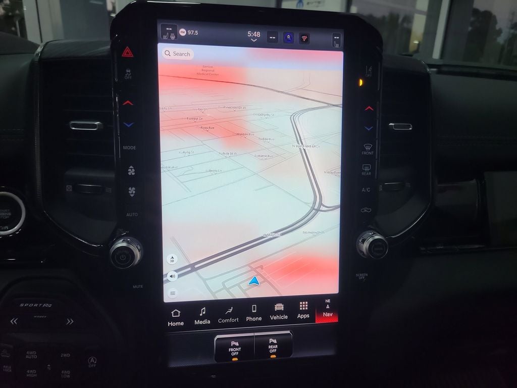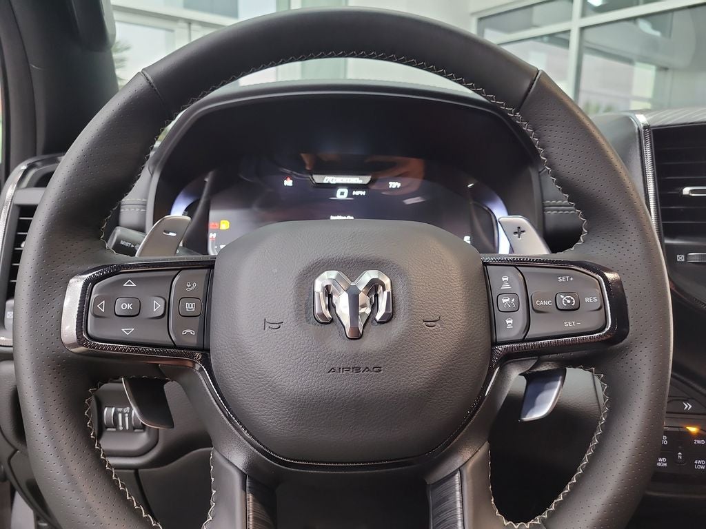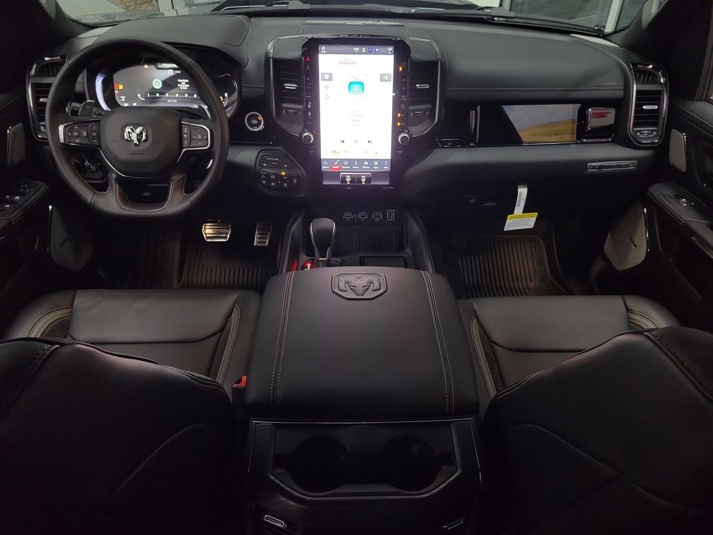 G/T Package (4 Way Front Headrests, Bucket Seats, Driver Seat Memory, Floor Console, Front Seat Back Map Pockets, G/T Decal, G/T Exhaust, GT Interior Theme, Heated Front Seats, Heated Second Row Seats, Heated Steering Wheel, Leather Wrapped Shift Knob, Leather-Wrapped Steering Wheel, Leather/Vinyl Bucket Seats, MOPAR Bright Pedal Kit, Performance Pages, Power 4-Way Driver Lumbar Adjust, Power 4-Way Passenger Lumbar Adjust, Power Adjust 8-Way Driver Seat, Power Adjust 8-Way Front Passenger Seat, Rear 60/40 Folding Split Recline Seat, Steering Wheel Mounted Shift Control, Under Seat Lighting, and Ventilated Front Seats), Quick Order Package 21W Rebel, Rebel Level 2 Equipment Group (115V Auxiliary Rear Power Outlet, 14.4 Touchscreen Display, 2-Door Passive Entry, Front Door Locks, 4G LTE Wi-Fi Hot Spot, Accent Color Door Handles, Accent Color Premium Power Mirrors, Accent Color Tailgate Handle, Apple CarPlay, Auto Power-Folding Mirrors, Auto-Dimming Exterior Driver Mirror, Black Painted Exterior Mirrors Caps, Connected Travel and Traffic Services, Connectivity - US/Canada, Convex Wide-Angle Exterior Mirror Insert, Disassociated Touchscreen Display, Dual Wireless Charging Pad, Exterior Mirrors Approach Lamps, Exterior Mirrors Courtesy Lamps, Exterior Mirrors with Heating Element, Exterior Mirrors with Memory, Exterior Mirrors with Supplemental Signals, Front Passenger Interactive Display, Global Telematics Box Module, Google Android Auto, GPS Antenna Input, GPS Navigation, Harman/Kardon 19 Speaker Premium Sound, HD Radio, Integrated Center Stack Radio, Integrated Voice Command with Bluetooth®, Media Hub with 2 Charge Only USBs, Off-Road Information Pages, Power 2-Way Passenger Lumbar Adjust, Power Adjustable Pedals with Memory, Power Tailgate, Proximity Approach/Departure Lamps, Radio: Uconnect 5 Nav with 14.4 Display, Radio/Driver Seat/Mirrors/Pedals Memory, Rain Sensitive Windshield Wipers, Rear Window Defroster, Security Alarm, SiriusXM Radio Service, SiriusXM with 360L, Smartphone as a Key Capable, and USB Host Flip), Technology Group (12-Way/1-Way Trailer Connector, Heads-Up Display, and LED CHMSL Lamp), 10 Speakers, 3.92 Rear Axle Ratio, 4-Wheel Disc Brakes, ABS brakes, Active Noise Control System, Air Conditioning, Alloy wheels, AM/FM radio: SiriusXM with 360L, Apple CarPlay/Android Auto, Auto High-beam Headlights, Auto-dimming Rear-View mirror, Automatic temperature control, Black Exterior Mirrors, Brake assist, Cloth/Vinyl Bucket Seats, Compass, Delay-off headlights, Driver door bin, Driver vanity mirror, Dual front impact airbags, Dual front side impact airbags, Electronic Stability Control, Front anti-roll bar, Front Bucket Seats, Front Center Armrest w/Storage, Front dual zone A/C, Front fog lights, Front reading lights, Front wheel independent suspension, Full Length Upgraded Floor Console, Fully automatic headlights, Garage door transmitter, Heated door mirrors, Heated front seats, Heated steering wheel, Illuminated entry, Leather steering wheel, Low tire pressure warning, Manual Folding Exterior Mirrors, Navigation System, Occupant sensing airbag, Outside temperature display, Overhead airbag, Overhead console, Panic alarm, ParkView Rear Back-Up Camera, Passenger door bin, Passenger vanity mirror, Power 2-Way Driver Lumbar Adjust, Power door mirrors, Power driver seat, Power steering, Power windows, Radio data system, Radio: Uconnect 5 Navigation with 12.0 Display, Rear 60/40 Folding Seat, Rear anti-roll bar, Rear seat center armrest, Rear step bumper, Remote keyless entry, Speed control, Split folding rear seat, Steering wheel mounted audio controls, Tachometer, Telescoping steering wheel, Tilt steering wheel, Traction control, Trip computer, Variably intermittent wipers, Voltmeter, and Wheels: 18 x 8.0 Painted Mid-Gloss Black.