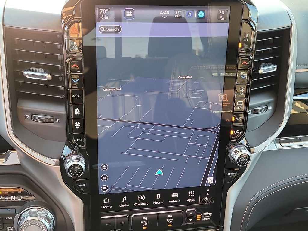 Quick Order Package 22V Tungsten, 12-Way/1-Way Trailer Connector, 3.92 Rear Axle Ratio, 4-Wheel Disc Brakes, ABS brakes, Adjustable pedals, Air Conditioning, Alloy wheels, AM/FM radio, Apple CarPlay/Android Auto, Audio memory, Auto High-beam Headlights, Auto Power-Folding Mirrors, Auto-dimming door mirrors, Auto-Dimming Exterior Driver Mirror, Auto-dimming Rear-View mirror, Auto-leveling suspension, Automatic temperature control, Bodyside moldings, Brake assist, Bumpers: body-color, Chrome Exterior Mirrors, Compass, Delay-off headlights, Driver door bin, Driver vanity mirror, Dual front impact airbags, Dual front side impact airbags, Electronic Stability Control, Exterior Mirrors Courtesy Lamps, Exterior Mirrors with Heating Element, Exterior Mirrors with Memory, Exterior Mirrors with Supplemental Signals, Exterior Parking Camera Rear, Front anti-roll bar, Front Bucket Seats, Front Center Armrest w/Storage, Front dual zone A/C, Front fog lights, Front reading lights, Front wheel independent suspension, Fully automatic headlights, Garage door transmitter, Heads-Up Display, Heated door mirrors, Heated front seats, Heated rear seats, Heated steering wheel, Illuminated entry, Leather steering wheel, Low tire pressure warning, Memory seat, Multi-Function Tailgate, Navigation System, Occupant sensing airbag, Outside temperature display, Overhead airbag, Overhead console, Panic alarm, Passenger door bin, Passenger vanity mirror, Pedal memory, Power adjustable front head restraints, Power door mirrors, Power driver seat, Power moonroof, Power passenger seat, Power steering, Power windows, Premium Leather Bucket Seats, Radio data system, Radio: Uconnect 5 Nav with 14.4 Display, Rain sensing wipers, RAM's Head Badge, Rear anti-roll bar, Rear reading lights, Rear seat center armrest, Rear step bumper, Rear window defroster, Remote keyless entry, Remote Tailgate Release, Security system, Speed control, Split folding rear seat, Steering wheel mounted audio controls, Tachometer, Telescoping steering wheel, Tilt steering wheel, Traction control, Trailer Brake Control, Trip computer, Turn signal indicator mirrors, Variably intermittent wipers, Ventilated front seats, Ventilated rear seats, Voltmeter, and Wheels: 22 x 9 Polish/Painted with Inserts.