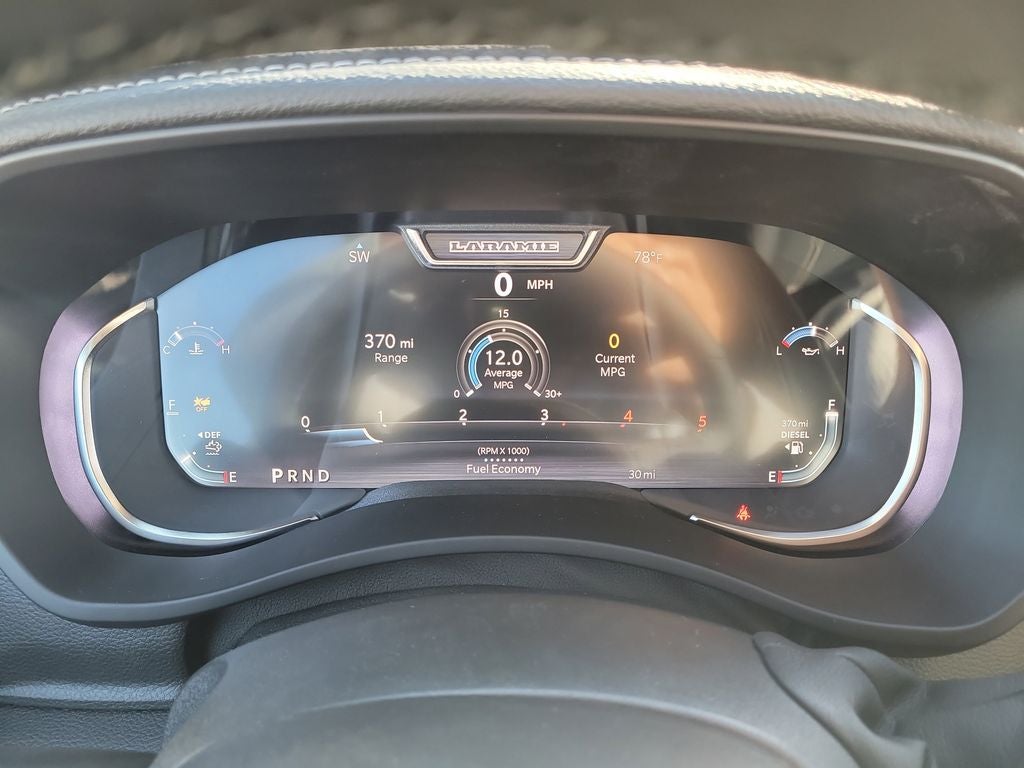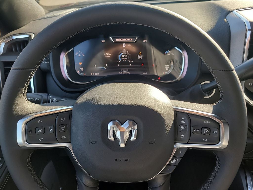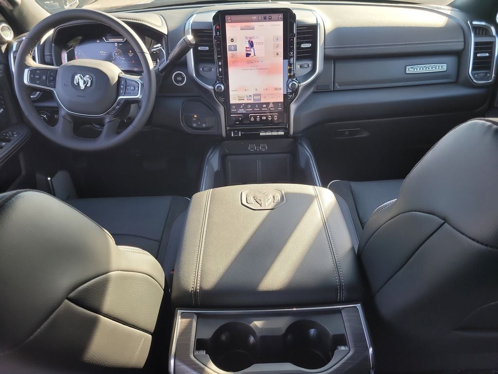 Bed Convenience Group (LED Bed Lighting and MOPAR Spray in Bedliner), Chrome Bumper Package (Bright Front Bumper and Bright Rear Bumper), Laramie Level 2 Equipment Group (#1 Seat Foam Cushion, 115V Auxiliary Rear Power Outlet, 14.4 Touchscreen Display, 17 Speaker Harman/Kardon Premium Sound, 2 Way Rear Headrest Seat, 2nd Row in Floor Storage Bins, 4 Way Front Headrests, 4G LTE Wi-Fi Hot Spot, Alexa Built-in, Anti-Spin Differential Rear Axle, Apple CarPlay, Auto Adjust in Reverse Exterior Mirrors, Auto Dim Exterior Mirror, Auto High Beam Headlamp Control, Auto Power-Folding Mirrors, Auto-Dimming Exterior Passenger Mirror, Bucket Seats, Chrome Exterior Mirrors, Connected Travel and Traffic Services, Connectivity - US/Canada, Disassociated Touchscreen Display, Dual Wireless Charging Pad, Emergency Vehicle Alert System (EVAS), Exterior Mirrors Courtesy Lamps, Exterior Mirrors with Heating Element, Exterior Mirrors with Memory, Exterior Mirrors with Supplemental Signals, Foam Bottle Insert (door Trim Panel), Folding Flat Load Floor Storage, For Details, Visit DriveUconnect.com, For More Info, Call 800-643-2112, Forward and Reverse Utility Lights, Front Seat Back Map Pockets, Full Length Upgraded Floor Console, Global Telematics Box Module, Google Android Auto, GPS Antenna Input, GPS Navigation, HD Radio, Heated Front Seats, Heated Steering Wheel, High Back Seats, Integrated Voice Command with Bluetooth®, Leather Trimmed Bucket Seats, Mirror Running Lights, Off-Road Info Pages, Power 2-Way Driver Lumbar Adjust, Power 2-Way Passenger Lumbar Adjust, Power Adjust 8-Way Driver Seat, Power Adjust 8-Way Front Passenger Seat, Power Adjust Mirrors, Power Adjustable Pedals with Memory, Power Heated Fold Telescopic Mirrors with Memory, Power Telescoping Mirrors, Power-Adjustable Convex Aux Mirrors, Radio: Uconnect 5 Nav with 14.4 Display, Radio/Driver Seat/Mirrors/Pedals Memory, Rain Sensitive Windshield Wipers, Rear 60/40 Folding Seat, Remote Tailgate Release, Selectable Tire Fill Alert, SiriusXM Radio Service, SiriusXM with 360L, Trailer Tow Pages, and Ventilated Front Seats), on Board Power System - 2.4KW, Quick Order Package 24H Laramie, 10 Speakers, 20 x 8.0 Polished Aluminum Wheels, 4-Wheel Disc Brakes, 5th Wheel/Gooseneck Towing Prep Group, ABS brakes, Air Conditioning, Alloy wheels, AM/FM radio: SiriusXM with 360L, Apple CarPlay/Android Auto, Auto Level Rear Air Suspension, Auto-dimming Rear-View mirror, Automatic temperature control, Black Wheel Center Hub, Brake assist, Bumpers: body-color, Capless Fuel Fill Without Discriminator, Center Hub, Clearance Lamps, Compass, Cummins Turbo Diesel Badge, Dash Pass Thru Wire Circuits, Delay-off headlights, Diesel Exhaust Brake, Driver door bin, Driver vanity mirror, Dual 730 Amp Maintenance Free Batteries, Dual front impact airbags, Dual front side impact airbags, Electronic Stability Control, Front anti-roll bar, Front Bumper Sight Shields, Front Center Armrest w/Storage, Front dual zone A/C, Front fog lights, Front License Plate Bracket, Front reading lights, Fully automatic headlights, Garage door transmitter, Heated door mirrors, Heated front seats, Heated Second Row Seats, Heated steering wheel, Heavy-Duty Engine Cooling, Illuminated entry, Instrument Panel Mounted Auxiliary Switches, Leather Trim 40/20/40 Bench Seat, Low tire pressure warning, Manufacturer's Statement of Origin, Navigation System, Occupant sensing airbag, Outside temperature display, Overhead airbag, Overhead console, Panic alarm, ParkView Rear Back-Up Camera, Passenger door bin, Passenger vanity mirror, Power Deployable Running Boards, Power door mirrors, Power driver seat, Power passenger seat, Power steering, Power windows, Radio data system, Radio: Uconnect 5 Navigation with 12.0 Display, Rear anti-roll bar, Rear reading lights, Rear seat center armrest, Rear step bumper, Rear window defroster, Remote keyl