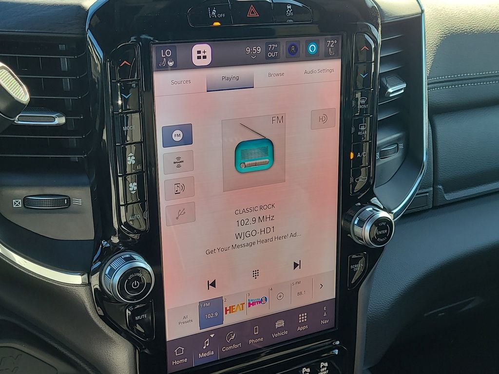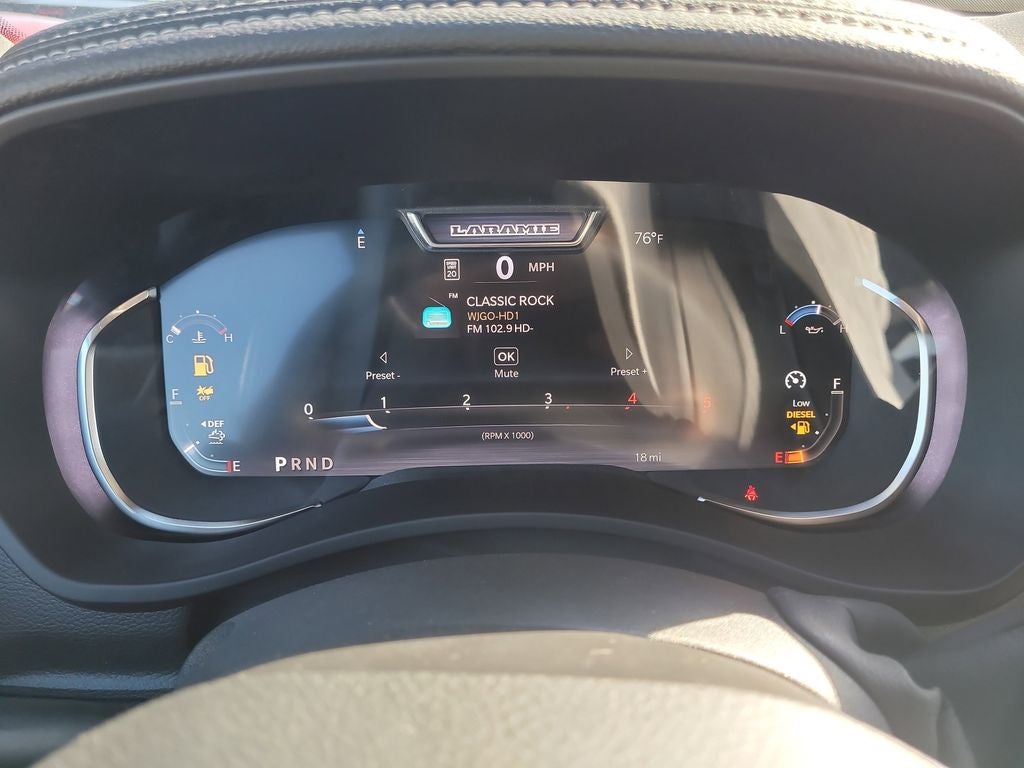 Laramie Level 1 Plus Equipment Group (#1 Seat Foam Cushion, 115V Auxiliary Rear Power Outlet, 2 Way Rear Headrest Seat, 2nd Row in Floor Storage Bins, 4 Way Front Headrests, Active Lane Management System, Adaptive Steering System, Anti-Spin Differential Rear Axle, Auto Adjust in Reverse Exterior Mirrors, Auto Dim Exterior Mirror, Auto High Beam Headlamp Control, Auto Power-Folding Mirrors, Auto-Dimming Exterior Passenger Mirror, Bucket Seats, Center Stop Lamp with Cargo View Camera, Chrome Exterior Mirrors, Drowsy Driver Detection, Dual Wireless Charging Pad, Exterior Mirrors Courtesy Lamps, Exterior Mirrors with Heating Element, Exterior Mirrors with Memory, Exterior Mirrors with Supplemental Signals, Foam Bottle Insert (door Trim Panel), Folding Flat Load Floor Storage, Forward and Reverse Utility Lights, Front Seat Back Map Pockets, Full Length Upgraded Floor Console, Heated Front Seats, Heated Steering Wheel, High Back Seats, Leather Trimmed Bucket Seats, LED Bed Lighting, Mirror Running Lights, MOPAR Deployable Bed Step, MOPAR Spray in Bedliner, Power 2-Way Driver Lumbar Adjust, Power 2-Way Passenger Lumbar Adjust, Power Adjust 8-Way Driver Seat, Power Adjust 8-Way Front Passenger Seat, Power Adjust Mirrors, Power Adjustable Pedals with Memory, Power Heated Fold Telescopic Mirrors with Memory, Power Telescoping Mirrors, Power-Adjustable Convex Aux Mirrors, Radio/Driver Seat/Mirrors/Pedals Memory, Rain Sensitive Windshield Wipers, Rear 60/40 Folding Seat, Remote Tailgate Release, Traffic Sign Recognition, and Ventilated Front Seats), Night Edition (Black Exterior Mirrors, Black Exterior Truck Badging, Black Wheel Center Hub, Body Color Grille-Surround, Gloss Black Grille Billets/Accents, Sport Performance Hood, and Wheels: 20 x 8.0 Black Painted Aluminum), Quick Order Package 24H Laramie, 10 Speakers, 4-Wheel Disc Brakes, 4G LTE Wi-Fi Hot Spot, 5th Wheel/Gooseneck Towing Prep Group, ABS brakes, Air Conditioning, Alexa Built-in, Alloy wheels, AM/FM radio: SiriusXM with 360L, Apple CarPlay, Apple CarPlay/Android Auto, Auto Level Rear Air Suspension, Auto-dimming Rear-View mirror, Automatic temperature control, Brake assist, Bumpers: body-color, Compass, Connected Travel and Traffic Services, Connectivity - US/Canada, Delay-off headlights, Delete Deployable Bed Step, Disassociated Touchscreen Display, Driver door bin, Driver vanity mirror, Dual front impact airbags, Dual front side impact airbags, Electronic Stability Control, Emergency Vehicle Alert System (EVAS), For Details, Visit DriveUconnect.com, For More Info, Call 800-643-2112, Front anti-roll bar, Front Center Armrest w/Storage, Front dual zone A/C, Front fog lights, Front License Plate Bracket, Front reading lights, Fully automatic headlights, Garage door transmitter, Global Telematics Box Module, Google Android Auto, GPS Antenna Input, GPS Navigation, HD Radio, Heated door mirrors, Heated front seats, Heated steering wheel, Illuminated entry, Integrated Voice Command with Bluetooth®, Leather Trim 40/20/40 Bench Seat, Low tire pressure warning, Manufacturer's Statement of Origin, Navigation System, Occupant sensing airbag, Off-Road Info Pages, Outside temperature display, Overhead airbag, Overhead console, Panic alarm, ParkView Rear Back-Up Camera, Passenger door bin, Passenger vanity mirror, Power door mirrors, Power driver seat, Power passenger seat, Power steering, Power windows, Radio data system, Radio: Uconnect 5 Navigation with 12.0 Display, Rear anti-roll bar, Rear reading lights, Rear seat center armrest, Rear step bumper, Rear window defroster, Remote keyless entry, Security system, Selectable Tire Fill Alert, SiriusXM Radio Service, SiriusXM with 360L, Speed control, Split folding rear seat, Steering wheel mounted audio controls, Tachometer, Tilt steering wheel, Traction control, Trailer Tow Pages, Trip computer, Turn si