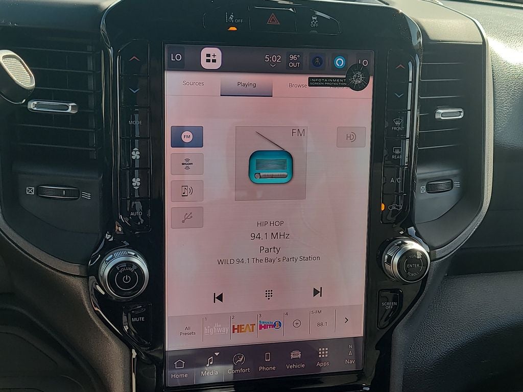 Bed Convenience Group (LED Bed Lighting and MOPAR Spray in Bedliner), Commercial Features Package, Quick Order Package 24C Black Express (2 Way Rear Headrest Seat, 4 Way Front Headrests, 40/20/40 Split Bench Seat, Auto Power-Folding Mirrors, Black Exterior Mirrors, Black Wheel Center Hub, Body Color Grille-Surround, Carpet Floor Covering, Cloth 40/20/40 Bench Seat, Exterior Mirrors Courtesy Lamps, Exterior Mirrors with Heating Element, Exterior Mirrors with Supplemental Signals, Forward and Reverse Utility Lights, Front and Rear Floor Mats, Front Armrest with Cupholders, Manual Adjust 4-Way Driver Seat, Manual Adjust 4-Way Front Passenger Seat, Mirror Running Lights, Mopar Black Tubular Side Steps, Painted Front Bumper, Painted Rear Bumper, ParkSense Front/Rear Park Assist System, Power Adjust Mirrors, Power Heated Folding Telescopic Mirrors, Power Telescoping Mirrors, Power-Adjustable Convex Aux Mirrors, Rear Folding Seat, Remote USB Port - Charge Only, Sport Performance Hood, Storage Tray, and Wheels: 20 x 8.0 Black Painted Aluminum), Safety Group (Active Lane Management System, Adaptive Steering System, Auto High Beam Headlamp Control, Auto-Dimming Rear-View Mirror, Blind Spot and Cross Path Detection, Cluster 7.0 TFT Color Display, Drowsy Driver Detection, LED Tail Lamps, Luxury Steering Wheel, Rain Sensitive Windshield Wipers, Red Tail Lamp Bezels, Steering Wheel Mounted Audio Controls, and Traffic Sign Recognition), Tradesman Level 1 Equipment Group (115-Volt Auxiliary Front Power Outlet, 12 Touchscreen Display, 400W Inverter, 4G LTE Wi-Fi Hot Spot, Air Conditioning ATC with Dual Zone Control, Alexa Built-in, Apple CarPlay, Connected Travel and Traffic Services, Connectivity - US/Canada, Disassociated Touchscreen Display, Emergency Vehicle Alert System (EVAS), Exterior 115V AC Outlet, For Details, Visit DriveUconnect.com, For More Info, Call 800-643-2112, Global Telematics Box Module, Google Android Auto, GPS Antenna Input, GPS Navigation, HD Radio, Integrated Voice Command with Bluetooth®, Off-Road Info Pages, Radio: Uconnect 5 Navigation with 12.0 Display, Rear Power Sliding Window, Selectable Tire Fill Alert, SiriusXM Radio Service, SiriusXM with 360L, Tinted Acoustic Windshield Glass, and Trailer Tow Pages), 4-Wheel Disc Brakes, 5th Wheel/Gooseneck Towing Prep Group, 6 Speakers, ABS brakes, Air Conditioning, AM/FM radio: SiriusXM, Anti-Spin Differential Rear Axle, Apple CarPlay/Android Auto, Brake assist, Clearance Lamps, Compass, Delay-off headlights, Driver door bin, Dual front impact airbags, Dual front side impact airbags, Electronic Stability Control, Front anti-roll bar, Front Center Armrest w/Storage, Front fog lights, Front License Plate Bracket, Front reading lights, Fully automatic headlights, Illuminated entry, Low tire pressure warning, Manual Folding Exterior Mirrors, Manual Telescoping Mirrors, Manufacturer's Statement of Origin, Occupant sensing airbag, Outside temperature display, Overhead airbag, Overhead console, Panic alarm, ParkView Rear Back-Up Camera, Passenger door bin, Passenger vanity mirror, Power steering, Power windows, Radio data system, Radio: Uconnect 5 with 8.4 Display, Rear anti-roll bar, Rear step bumper, Rear window defroster, Remote keyless entry, Speed control, Tachometer, Tilt steering wheel, Traction control, Variably intermittent wipers, Voltmeter, and Wheels: 17 x 7.5 Black Steel StyleD.