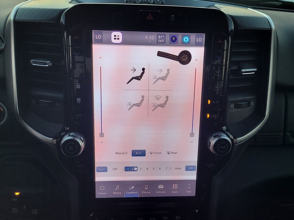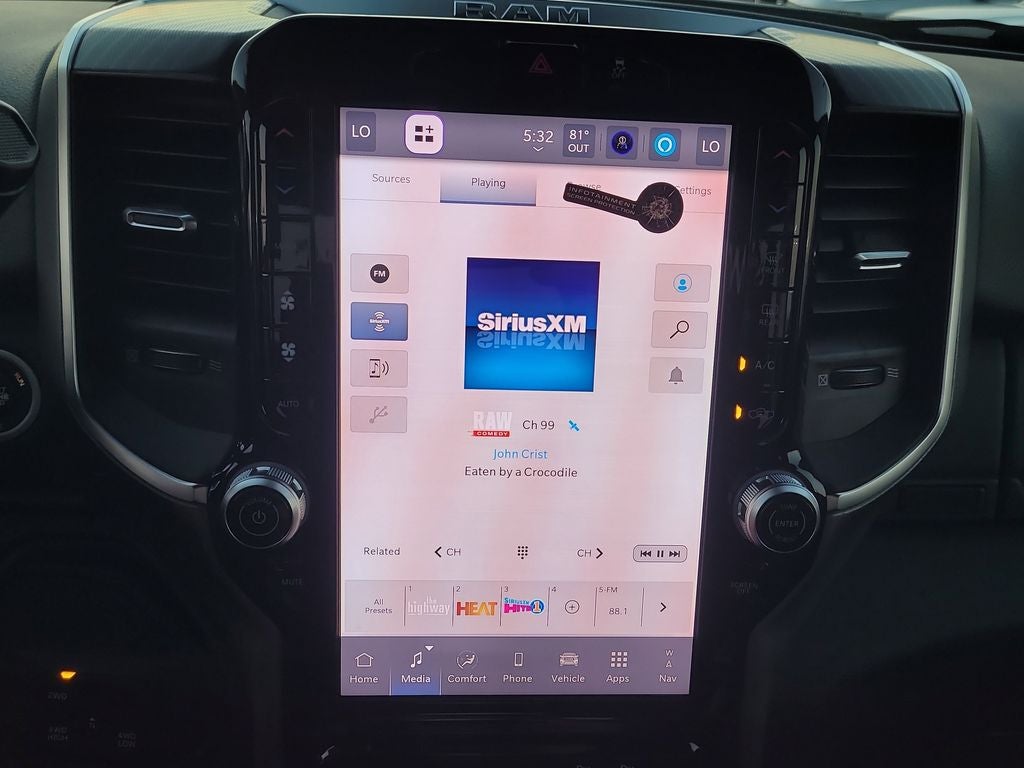 Big Horn Level 1 Plus Equipment Group (12 Touchscreen Display, 2 Way Rear Headrest Seat, 2nd Row in Floor Storage Bins, 4 Way Front Headrests, 40/20/40 Split Bench Seat, 4G LTE Wi-Fi Hot Spot, 9 Alpine Speakers with Subwoofer, Air Conditioning ATC with Dual Zone Control, Alexa Built-in, Apple CarPlay, Auto Power-Folding Mirrors, Auto-Dimming Rear-View Mirror, Black Exterior Mirrors, Cloth 40/20/40 Premium Bench Seat, Connected Travel and Traffic Services, Connectivity - US/Canada, Disassociated Touchscreen Display, Dual Glove Boxes, Emergency Vehicle Alert System (EVAS), Exterior Mirrors Courtesy Lamps, Exterior Mirrors with Heating Element, Exterior Mirrors with Supplemental Signals, Foam Bottle Insert (door Trim Panel), Folding Flat Load Floor Storage, Footwell Courtesy Lamp, For Details Visit DriveUconnect.com, For More Info, Call 800-643-2112, Forward and Reverse Utility Lights, Front Armrest with Cupholders, Front Center Seat Cushion Storage, Front Seat Back Map Pockets, Global Telematics Box Module, Glove Box Lamp, Google Android Auto, GPS Antenna Input, GPS Navigation, HD Radio, Integrated Voice Command with Bluetooth®, LED Bed Lighting, Locking Lower Glove Box, Luxury Steering Wheel, Manual Adjust 4-Way Front Passenger Seat, Mirror Running Lights, MOPAR Deployable Bed Step, MOPAR Spray in Bedliner, Off-Road Information Pages, Power 2-Way Driver Lumbar Adjust, Power Adjust 8-Way Driver Seat, Power Adjust Mirrors, Power Heated Fold Telescopic Mirrors, Power Telescoping Mirrors, Power-Adjustable Convex Aux Mirrors, Radio: Uconnect 5 Navigation with 12.0 Display, Rear 60/40 Folding Seat, Rear Dome with on/Off Switch Lamp, Remote Start System, Remote USB Port - Charge Only, Selectable Tire Fill Alert, SiriusXM Radio Service, SiriusXM with 360L, Steering Wheel Mounted Audio Controls, Storage Tray, and Trailer Tow Pages), Quick Order Package 24Z Big Horn, Sport Appearance Package (Black Interior Accents, Body Color Grille Surround, Painted Front Bumper, Painted Rear Bumper, and Sport Decal), 20 x 8.0 Polished Aluminum Wheels, 4-Wheel Disc Brakes, 5th Wheel/Gooseneck Towing Prep Group, 6 Speakers, ABS brakes, Air Conditioning, Alloy wheels, AM/FM radio: SiriusXM, Apple CarPlay/Android Auto, Brake assist, Bumpers: chrome, Center Hub, Clearance Lamps, Cloth 40/20/40 Bench Seat, Compass, Dash Pass Thru Wire Circuits, Delay-off headlights, Driver door bin, Dual Alternators Rated At 400 Amps, Dual Alternators Rated At 480 Amps, Dual front impact airbags, Dual front side impact airbags, Electronic Stability Control, Front anti-roll bar, Front Center Armrest w/Storage, Front fog lights, Front License Plate Bracket, Front reading lights, Fully automatic headlights, Heated door mirrors, Illuminated entry, Instrument Panel Mounted Auxiliary Switches, Low tire pressure warning, Manual Adjust 4-Way Driver Seat, Manufacturer's Statement of Origin, MOPAR Front and Rear Rubber Floor Mats, Occupant sensing airbag, on Board Power System - 2.4KW, Outside temperature display, Overhead airbag, Overhead console, Panic alarm, ParkView Rear Back-Up Camera, Passenger door bin, Passenger vanity mirror, Power door mirrors, Power steering, Power windows, Radio data system, Radio: Uconnect 5 with 8.4 Display, Rear Folding Seat, Rear seat center armrest, Rear step bumper, Rear Wheelhouse Liners, Rear window defroster, Remote keyless entry, Speed control, Tachometer, Tilt steering wheel, Traction control, Trip computer, Turn signal indicator mirrors, Variably intermittent wipers, Voltmeter, and Wheels: 18 x 8.0 Polished AluminuM.