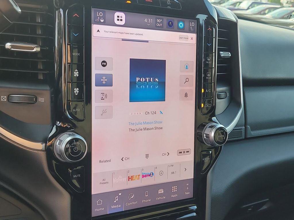 Big Horn Level 2 Plus Equipment Group (115-Volt Auxiliary Front Power Outlet, 12 Touchscreen Display, 2 Way Rear Headrest Seat, 2nd Row in Floor Storage Bins, 4 Way Front Headrests, 400W Inverter, 4G LTE Wi-Fi Hot Spot, 9 Alpine Speakers with Subwoofer, Active Lane Management System, Adaptive Steering System, Air Conditioning ATC with Dual Zone Control, Alexa Built-in, Apple CarPlay, Auto High Beam Headlamp Control, Auto Power-Folding Mirrors, Auto-Dimming Rear-View Mirror, Black Exterior Mirrors, Blind Spot and Cross Path Detection, Bucket Seats, Center Stop Lamp with Cargo View Camera, Cluster 7.0 TFT Color Display, Connected Travel and Traffic Services, Connectivity - US/Canada, Dampened Tailgate, Disassociated Touchscreen Display, Drowsy Driver Detection, Dual Glove Boxes, Dual Wireless Charging Pad, Emergency Vehicle Alert System (EVAS), Exterior 115V AC Outlet, Exterior Mirrors Courtesy Lamps, Exterior Mirrors with Heating Element, Exterior Mirrors with Supplemental Signals, Foam Bottle Insert (door Trim Panel), Folding Flat Load Floor Storage, Footwell Courtesy Lamp, For Details Visit DriveUconnect.com, For More Info, Call 800-643-2112, Forward and Reverse Utility Lights, Front Seat Back Map Pockets, Full Length Upgraded Floor Console, Global Telematics Box Module, Glove Box Lamp, Google Android Auto, GPS Antenna Input, GPS Navigation, HD Radio, Heated Front Seats, Heated Steering Wheel, Integrated Voice Command with Bluetooth®, LED Bed Lighting, LED Tail Lamps, Locking Lower Glove Box, Luxury Steering Wheel, Manual Adjust 4-Way Front Passenger Seat, Mirror Running Lights, MOPAR Deployable Bed Step, MOPAR Spray in Bedliner, Off-Road Information Pages, Power 2-Way Driver Lumbar Adjust, Power Adjust 8-Way Driver Seat, Power Adjust Mirrors, Power Adjustable Pedals, Power Heated Fold Telescopic Mirrors, Power Telescoping Mirrors, Power-Adjustable Convex Aux Mirrors, Premium Cloth Bucket Seats, Radio: Uconnect 5 Navigation with 12.0 Display, Rain Sensitive Windshield Wipers, Rear 60/40 Folding Seat, Rear Dome with on/Off Switch Lamp, Rear Power Sliding Window, Red Tail Lamp Bezels, Remote Start System, Selectable Tire Fill Alert, SiriusXM Radio Service, SiriusXM with 360L, Steering Wheel Mounted Audio Controls, Sun Visors with Illuminated Vanity Mirrors, Surround View Camera System, Traffic Sign Recognition, Trailer Reverse Guidance, Trailer Tire Pressure Monitoring System, Trailer Tow Pages, and Universal Garage Door Opener), Max Tow Package (5th Wheel/Gooseneck Towing Prep Group), Quick Order Package 24Z Big Horn, Sport Appearance Package (Black Interior Accents, Body Color Grille Surround, Painted Front Bumper, Painted Rear Bumper, and Sport Decal), 4-Wheel Disc Brakes, 40/20/40 Split Bench Seat, 6 Speakers, 6000# Front Axle with Hub Extension, ABS brakes, Air Conditioning, Alloy wheels, AM/FM radio: SiriusXM, Apple CarPlay/Android Auto, Box and Rear Fender Clearance Lamps, Brake assist, Bumpers: chrome, Center Hub, Clearance Lamps, Cloth 40/20/40 Bench Seat, Compass, Delay-off headlights, Driver door bin, Dual front impact airbags, Dual front side impact airbags, Dual Rear Wheels, Electronic Stability Control, Front anti-roll bar, Front Armrest with Cupholders, Front Center Armrest w/Storage, Front fog lights, Front reading lights, Fully automatic headlights, Heated door mirrors, Illuminated entry, Low tire pressure warning, Manual Adjust 4-Way Driver Seat, MOPAR Front and Rear Rubber Floor Mats, Nexen Brand Tires, Occupant sensing airbag, Outside temperature display, Overhead airbag, Overhead console, Panic alarm, ParkView Rear Back-Up Camera, Passenger door bin, Passenger vanity mirror, Power door mirrors, Power steering, Power windows, Radio data system, Radio: Uconnect 5 with 8.4 Display, Rear Folding Seat, Rear seat center armrest, Rear step bumper, Rear Wheelhouse Liners, Rear window defroster, Remote keyless entry,
