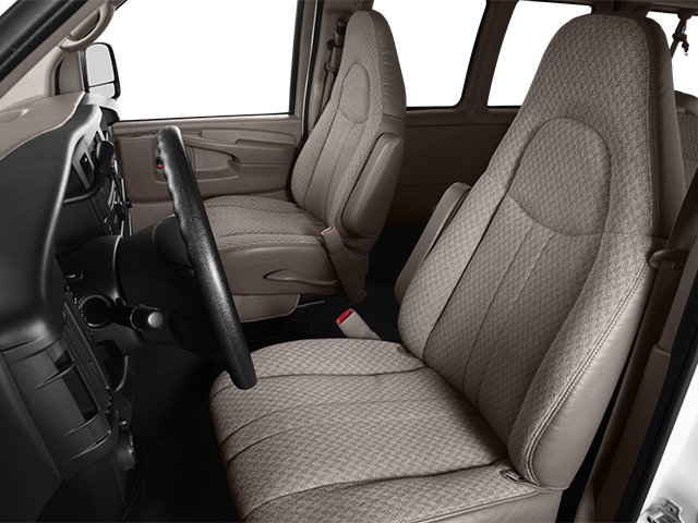 * 2014 KBB.com Brand Image Awards Passenger Chrome Appearance Package (Chrome Grille, Front & Rear Chrome Bumpers w/Step-Pad, and Dual Composite Halogen Headlamps), Convenience Package (Cruise Control and Tilt Steering Wheel), Preferred Equipment Group 1LT (145 Amp Alternator, Custom Cloth Seat Trim, Deluxe Console, Driver & Front Passenger Padded Visors, Full-Floor Color-Keyed Carpeting, Rear Air, Rear Auxiliary Heater, Reclining Front Bucket Seats w/Inboard Armrests, Remote Keyless Entry, Wheel Trim w/Chrome Center Caps, and 8-Point Digital Compass), Express 3500 LT Passenger, Extended Passenger Van, Vortec 6.0L V8 SFI Flex Fuel, 6-Speed Automatic HD with Electronic Overdrive, RWD, Summit White, Medium Pewter Cloth, 12-Passenger Seating (2-3-3-4 Seating Config), 15-Passenger Seating (2-3-3-3-4 Seating Config), 16 x 6.5 Steel Wheels, 2 Speakers, 3.42 Rear Axle Ratio, 3rd row seats: bench, 4-Wheel Disc Brakes, 4th-Row Bench Seat, ABS brakes, Air Conditioning, AM/FM radio, AM/FM Stereo w/Seek & Scan, Compass, Delay-off headlights, Driver door bin, Driver vanity mirror, Driver's Seat Mounted Armrest, Dual front impact airbags, Electronic Stability Control, Emergency communication system, Front anti-roll bar, Front Bucket Seats, Front reading lights, Front wheel independent suspension, Fully automatic headlights, Low tire pressure warning, Molded Assist Steps, Overhead airbag, Passenger cancellable airbag, Passenger door bin, Passenger seat mounted armrest, Passenger vanity mirror, Power steering, Power windows, Reading Lights, Rear air conditioning, Rear reading lights, Speed control, Tachometer, Tilt steering wheel, Traction control, Trip computer, Underhood Lights, Variably intermittent wipers, and Voltmeter.
