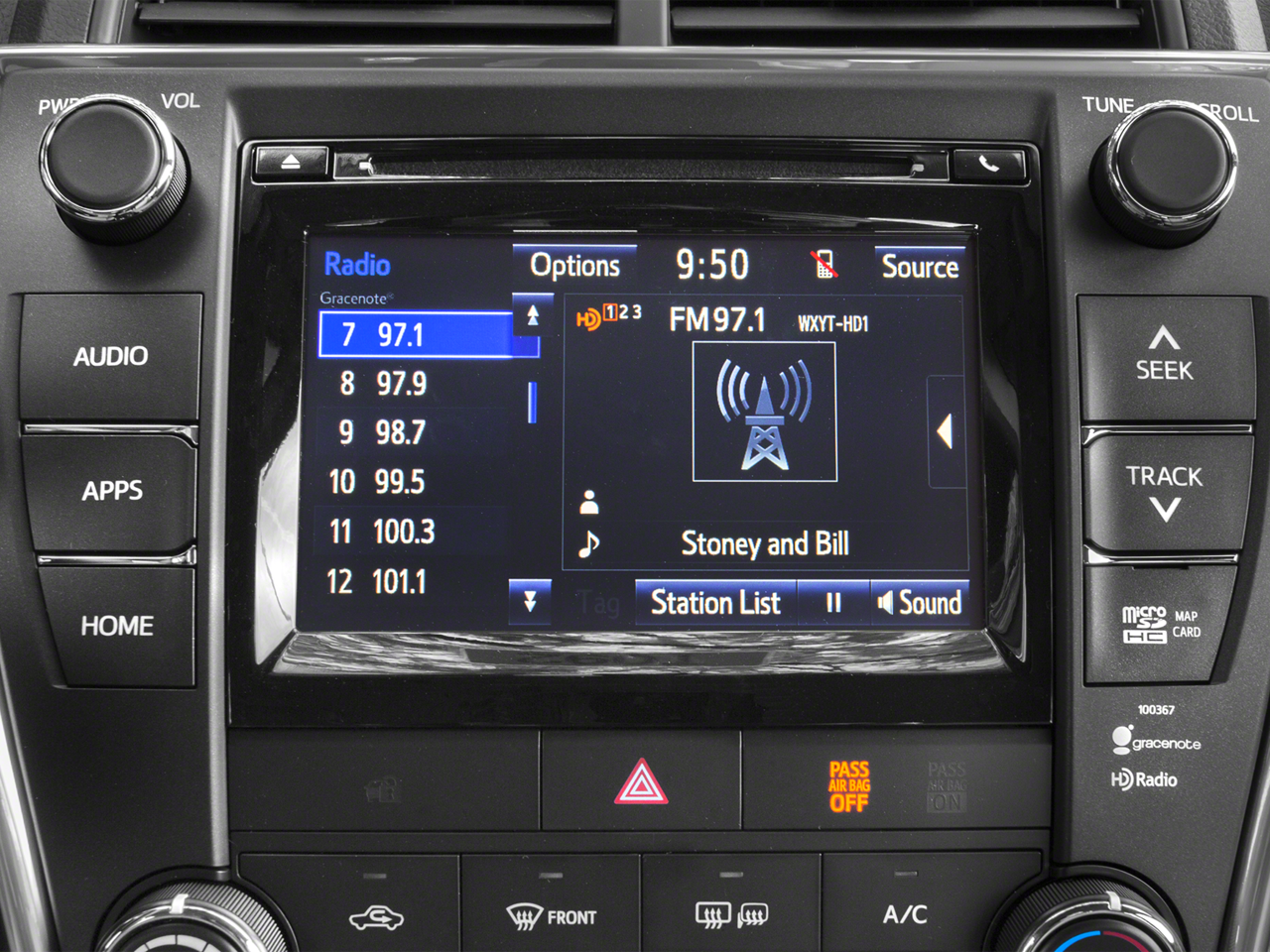 - Radio: Entune Audio -inc: Entune multimedia bundle w/6.1" touch-screen display, AM/FM CD player, MP3/WMA playback capability, 6 speakers, auxiliary audio jack, USB 2.0 port w/iPod connectivity and control, advanced voice recognition, hands-free phone capability, phone book access and music streaming via Bluetooth® wireless technology and Siri Eyes Free w/integrated backup camera display
