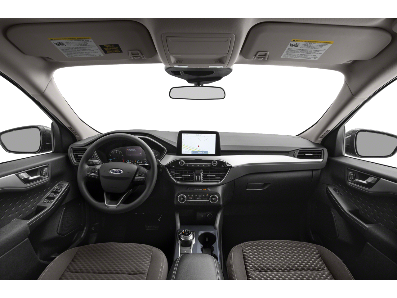* JD Power Automotive Performance, Execution and Layout (APEAL) Study Equipment Group 200A, Ford Co-Pilot360 Assist (Adaptive Cruise Control w/Stop-and-Go and Voice-Activated Touchscreen Navigation System), 3.52 Axle Ratio, 4-Wheel Disc Brakes, 6 Speakers, ABS brakes, Air Conditioning, Alloy wheels, AM/FM radio: SiriusXM, AM/FM Stereo, Auto High-beam Headlights, Automatic temperature control, Brake assist, Bumpers: body-color, Compass, Delay-off headlights, Driver door bin, Driver vanity mirror, Dual front impact airbags, Dual front side impact airbags, Easy Access Cargo Shade, Electronic Stability Control, Emergency communication system: SYNC 3 911 Assist, Exterior Parking Camera Rear, FordPass Connect, Four wheel independent suspension, Front & Rear Floor Liners, Front anti-roll bar, Front Bucket Seats, Front Center Armrest, Front License Plate Bracket, Front reading lights, Fully automatic headlights, Heated door mirrors, Heated front seats, Heated Unique Cloth Front Bucket Seats, Illuminated entry, Knee airbag, Low tire pressure warning, Occupant sensing airbag, Outside temperature display, Overhead airbag, Overhead console, Panic alarm, Passenger door bin, Passenger vanity mirror, Power door mirrors, Power driver seat, Power steering, Power windows, Radio data system, Rear anti-roll bar, Rear reading lights, Rear seat center armrest, Rear window defroster, Rear window wiper, Remote keyless entry, Speed control, Speed-sensing steering, Speed-Sensitive Wipers, Split folding rear seat, Spoiler, Steering wheel mounted audio controls, SYNC 3 Communications & Entertainment System, Tachometer, Telescoping steering wheel, Tilt steering wheel, Traction control, Trip computer, Variably intermittent wipers, and Wheels: 17 Shadow Silver-Painted Aluminum.