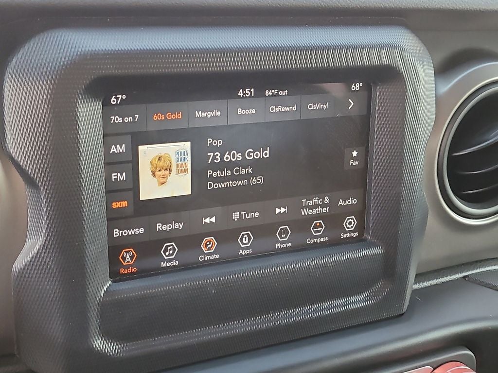 * 2020 KBB.com 10 Favorite New-for-2020 Cars * NACTOY 2020 North American Truck of the Year Convenience Group (Universal Garage Door Opener), Quick Order Package 24S (Automatic Headlamps, Deep Tint Sunscreen Windows, Front 1-Touch Down Power Windows, Leather Wrapped Steering Wheel, Normal Duty Plus Suspension, Power Heated Mirrors, Power Tailgate Lock, Remote Keyless Entry, Security Alarm, Speed Sensitive Power Locks, Sun Visors w/Illuminated Vanity Mirrors, and Wheels: 17 x 7.5 Tech Silver Aluminum), Safety Group (Blind Spot & Cross Path Detection, LED Taillamps, and ParkSense Rear Park Assist System), Technology Group (7.0 Touch Screen Display, Air Conditioning w/Auto Temperature Control, Apple CarPlay, Cluster 7.0 TFT Color Display, Google Android Auto, Integrated Center Stack Radio, Radio: Uconnect 4 w/7 Display, SiriusXM Satellite Radio, USB Host Flip, 1-Year SiriusXM Radio Service, For More Info, Call 800-643-2112, and GPS Antenna Input), Gladiator Sport, FCA US LLC Certified Pre-Owned Certified, 4D Crew Cab, 3.6L V6 24V VVT, 8-Speed Automatic, 4WD, Firecracker Red Clearcoat, Black Cloth, 110 mph Vehicle Max Speed Calibration, 3.73 Rear Axle Ratio, 4-Wheel Disc Brakes, 8 Speakers, ABS brakes, Air Conditioning, AM/FM radio, Anti-Lock 4-Wheel Disc Heavy Duty Brakes, Black 3-Piece Hard Top, Brake assist, Cloth Low-Back Bucket Seats, Compass, Delay-off headlights, Driver door bin, Driver vanity mirror, Dual front impact airbags, Dual front side impact airbags, Electronic Stability Control, Freedom Panel Storage Bag, Front anti-roll bar, Front Bucket Seats, Front Center Armrest w/Storage, Front fog lights, Front reading lights, Integrated roll-over protection, Low tire pressure warning, MOPAR Black Tubular Steps, No Soft Top, Normal Duty Suspension, Occupant sensing airbag, Outside temperature display, ParkView Rear Back-Up Camera, Passenger door bin, Passenger vanity mirror, Power steering, Radio data system, Radio: Uconnect 3 w/5 Display, Rear anti-roll bar, Rear reading lights, Rear Sliding Window, Rear Window Defroster, Speed control, Split folding rear seat, Steering wheel mounted audio controls, Tachometer, Telescoping steering wheel, Tilt steering wheel, Traction control, Trip computer, Variably intermittent wipers, and Wheels: 17 x 7.5 Black Steel Styled.