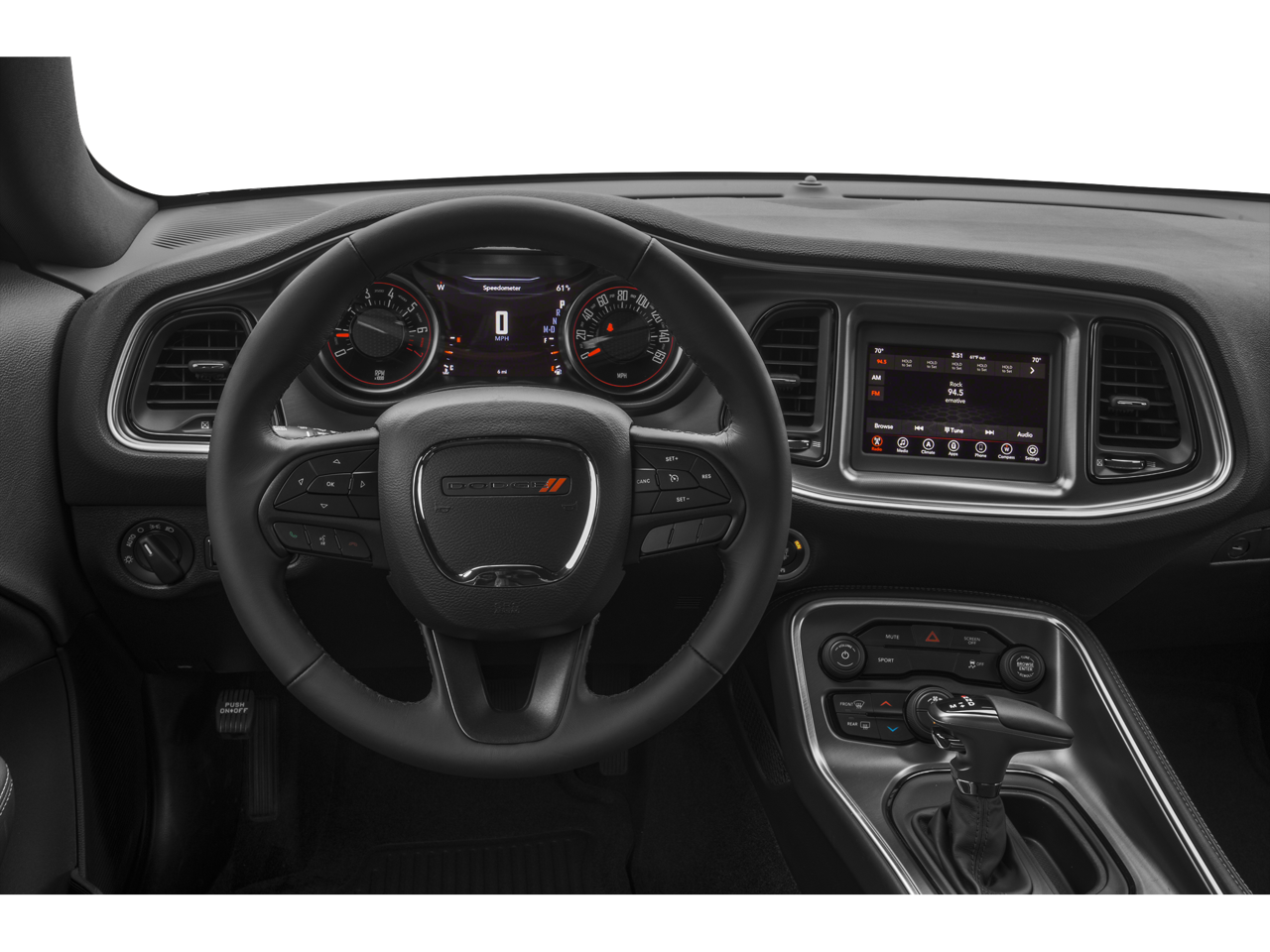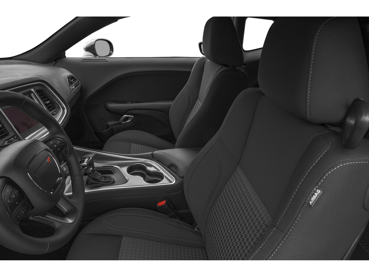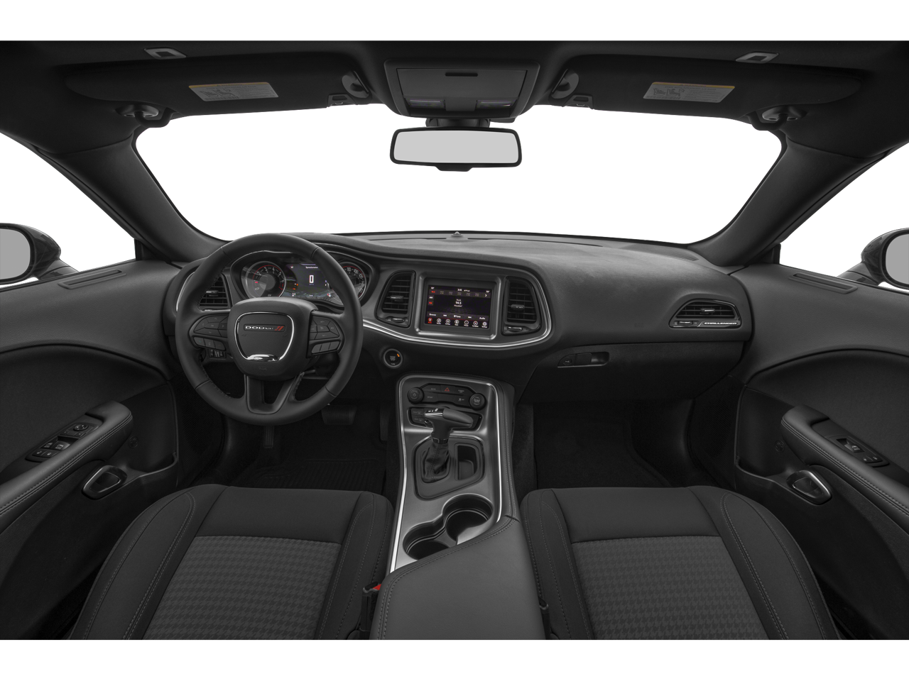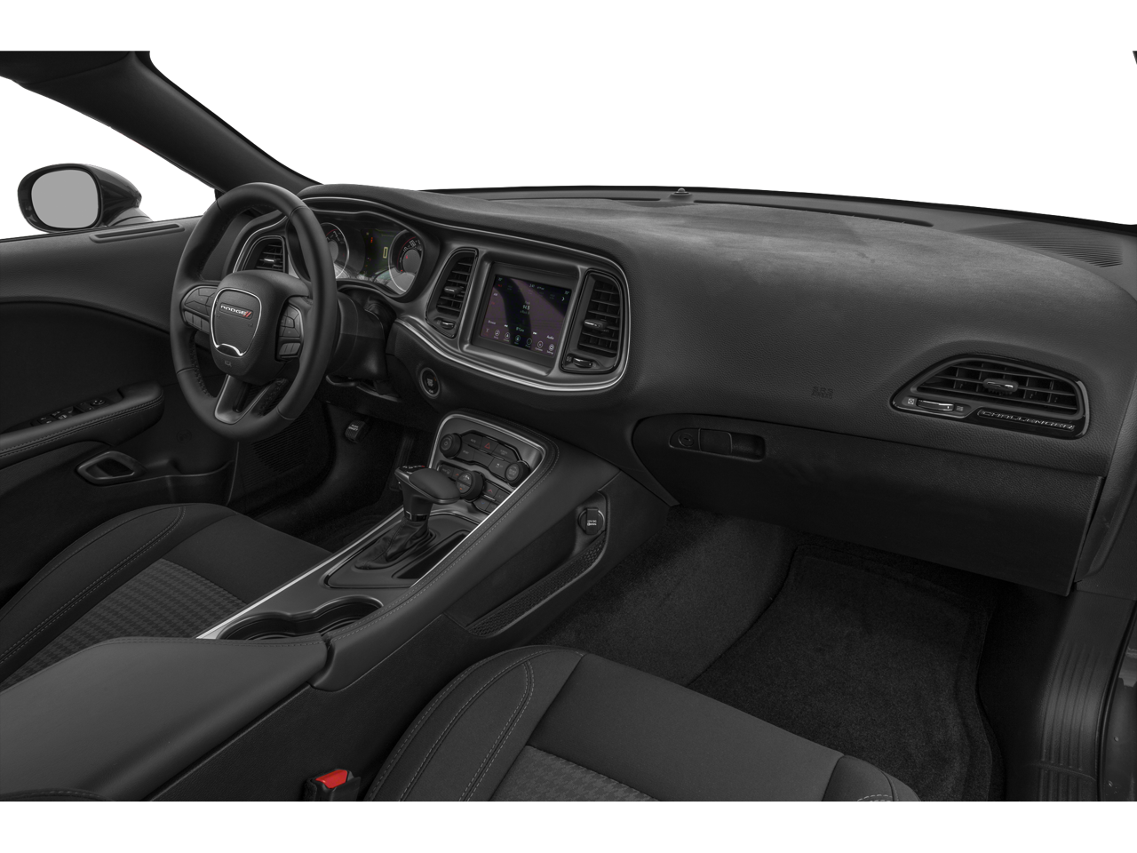 Blacktop Package (Black Fuel Filler Door, Black Grille w/Bezel, Challenger Blacktop Grille Badge, Gloss Black I/P Cluster Trim Rings, Leather Performance Steering Wheel, Rear Black Spoiler, Satin Black Dodge Tail Lamp Badge, and Wheels: 20 x 8.0 Black Noise Painted), Quick Order Package 2EA, 4-Wheel Disc Brakes, 5-Year SiriusXM Traffic Service, 5-Year SiriusXM Travel Link Service, 6 Speakers, ABS brakes, Air Conditioning, Alloy wheels, AM/FM radio, Anti-whiplash front head restraints, Apple CarPlay, Apple CarPlay/Android Auto, Auto-dimming Rear-View mirror, Automatic temperature control, Brake assist, Bumpers: body-color, Compass, Delay-off headlights, Driver door bin, Driver vanity mirror, Dual front impact airbags, Dual front side impact airbags, Electronic Stability Control, For More Info, Call 800-643-2112, Four wheel independent suspension, Front anti-roll bar, Front Bucket Seats, Front Center Armrest, Front dual zone A/C, Front reading lights, Fully automatic headlights, Google Android Auto, GPS Antenna Input, GPS Navigation, Heated door mirrors, Houndstooth Cloth Sport Seat, Illuminated entry, Integrated Center Stack Radio, Integrated Voice Command w/Bluetooth®, Leather Shift Knob, Low tire pressure warning, Media Hub (2 USB, AUX), Outside temperature display, Overhead airbag, Overhead console, Panic alarm, ParkView Rear Back-Up Camera, Passenger door bin, Passenger vanity mirror, Power door mirrors, Power driver seat, Power steering, Power windows, Radio data system, Radio: Uconnect 4 w/7 Display, Radio: Uconnect 4C Nav w/8.4 Display, Rear anti-roll bar, Rear reading lights, Rear seat center armrest, Rear window defroster, Remote keyless entry, Security system, SiriusXM Radio Service, SiriusXM Satellite Radio, SiriusXM Traffic Plus, SiriusXM Travel Link, Speed control, Speed-sensing steering, Split folding rear seat, Spoiler, Steering wheel mounted audio controls, Tachometer, Telescoping steering wheel, Tilt steering wheel, Traction control, Trip computer, USB Host Flip, Variably intermittent wipers, and Wheels: 18 x 7.5 Cast Aluminum.