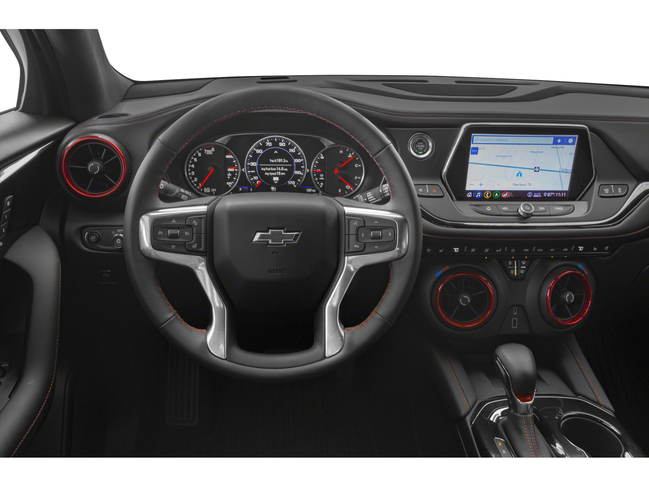 Driver Confidence II Package (Adaptive Cruise Control, Enhanced Automatic Emergency Braking, HD Surround Vision, LED Headlamps, Rear Camera Mirror, Safety Alert Seat, Wireless Charging, and Rear Camera Mirror Washer), Enhanced Convenience Package (Heated Rear Outboard Seating Positions, Memory Settings For Driver Seat & Exterior Mirrors, Power Tilt & Telescoping Steering Column, and Ventilated Driver & Front Passenger Seats), Preferred Equipment Group 1RS (Heated Driver & Front Passenger Seats and Heated Steering Wheel), Trailering Equipment (170 Amp Alternator, Heavy-Duty Cooling System, Hitch Guidance, and Hitch View), Blazer RS, 4D Sport Utility, 3.6L V6 SIDI, 9-Speed Automatic with Overdrive, FWD, Black, Jet Black Leather, Navigation System, 3.49 Final Drive Axle Ratio, 4-Wheel Disc Brakes, 6 Speakers, 6-Speaker Audio System Feature, 6-Way Power Front Passenger Seat Adjuster, ABS brakes, Air Conditioning, Alloy wheels, AM/FM radio: SiriusXM with 360L, Apple CarPlay/Android Auto, Auto High-beam Headlights, Auto-dimming door mirrors, Auto-dimming Rear-View mirror, Automatic temperature control, Black Illuminated Front Bowtie Emblem (LPO), Brake assist, Bumpers: body-color, Child-Seat-Sensing Airbag, Compass, Delay-off headlights, Driver door bin, Driver vanity mirror, Dual front impact airbags, Dual front side impact airbags, Electronic Stability Control, Emergency communication system: OnStar and Chevrolet connected services capable, Exterior Parking Camera Rear, Four wheel independent suspension, Front anti-roll bar, Front Bucket Seats, Front Center Armrest, Front dual zone A/C, Front reading lights, Fully automatic headlights, Garage door transmitter, Heated door mirrors, Heated front seats, Heated steering wheel, High-Intensity Discharge Headlights, Illuminated entry, Knee airbag, Leather Shift Knob, Low tire pressure warning, Occupant sensing airbag, Outside temperature display, Overhead airbag, Overhead console, Panic alarm, Passenger door bin, Passenger vanity mirror, Perforated Leather-Appointed Seat Trim, Power door mirrors, Power driver seat, Power Liftgate, Power Panoramic Tilt-Sliding Sunroof, Power passenger seat, Power steering, Power windows, Radio data system, Radio: Chevrolet Infotainment 3 Plus System, Rear anti-roll bar, Rear reading lights, Rear seat center armrest, Rear window defroster, Rear window wiper, Remote keyless entry, Ride & Handling Suspension, Security system, SiriusXM w/360L, Speed control, Speed-sensing steering, Split folding rear seat, Spoiler, Steering wheel mounted audio controls, Tachometer, Telescoping steering wheel, Tilt steering wheel, Traction control, Trip computer, Turn signal indicator mirrors, Variably intermittent wipers, Voltmeter, Wheels: 20 Dark Android Machined-Face Aluminum, and Wheels: 21 Gloss Black Aluminum.