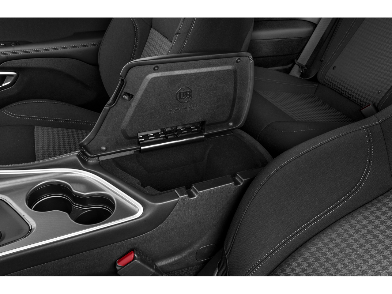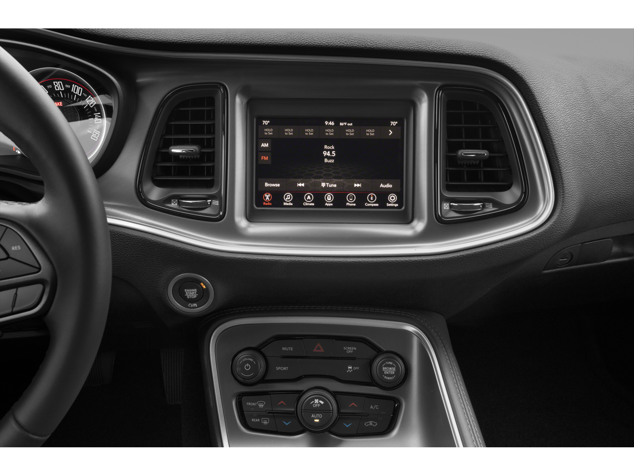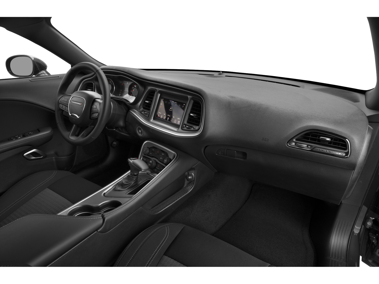 Inside, the Challenger SXT offers a wealth of premium features, including a 7-inch Uconnect infotainment system with Apple CarPlay and Android Auto integration, dual-zone automatic climate control, and a rearview camera. The Houndstooth cloth sport seats provide both style and comfort, while the leather-wrapped steering wheel and shift knob add a touch of refinement.
