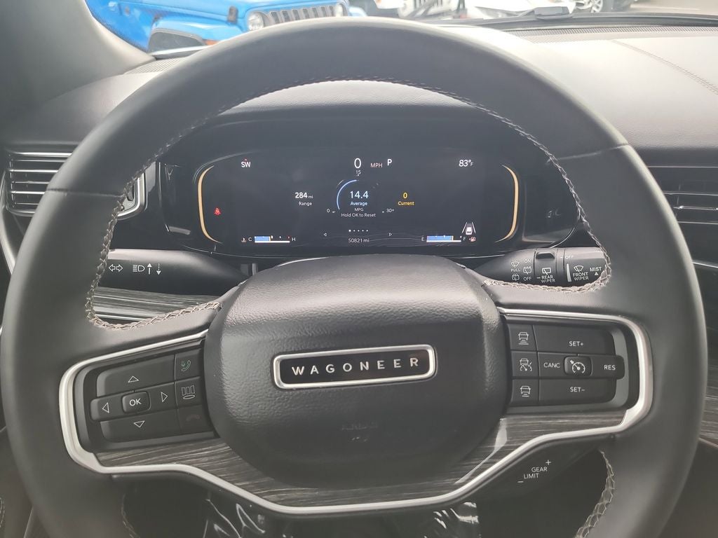The Wagoneer's refined interior is a sanctuary of comfort and sophistication, with genuine wood accents, heated and ventilated front seats, and a premium Harman Kardon audio system. Elevate your journeys with the convenience of a power liftgate, hands-free operation, and a host of advanced safety technologies, including Blind Spot Monitoring and Adaptive Cruise Control.