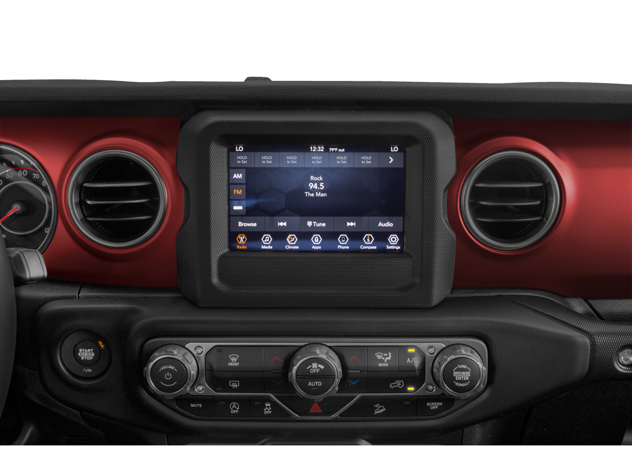 Advanced Safety Group (Advanced Brake Assist, Auto High Beam Headlamp Control, and Full Speed Forward Collision Warning Plus), Dual Top Group (Black 3-Piece Hard Top, Freedom Panel Storage Bag, No Soft Top, Premium Black Sunrider Soft Top w/Dual Top Group, Rear Window Defroster, and Rear Window Wiper/Washer), LED Lighting Group (Daytime Running Lamps LED Accents, Front LED Fog Lamps, LED Premium Reflector Headlamps, and LED Taillamps), Quick Order Package 26R, Safety Group (Blind Spot & Cross Path Detection and ParkSense Rear Park Assist System), Steel Bumper Group (Steel Front Bumper and Steel Rear Bumper), Trailer Tow & HD Electrical Group (240 Amp Alternator, 7 & 4 Pin Wiring Harness, 700 Amp Maintenance Free Battery, Auxiliary Switches, and Class II Receiver Hitch), 4-Wheel Disc Brakes, 9 Speakers, ABS brakes, Air Conditioning, Alloy wheels, AM/FM radio: SiriusXM, Apple CarPlay/Android Auto, Auto-dimming Rear-View mirror, Automatic temperature control, Aux Battery, Brake assist, Compass, Corning Gorilla Glass, Delay-off headlights, Driver door bin, Driver vanity mirror, Dual front impact airbags, Dual front side impact airbags, Electronic Stability Control, Emergency communication system: SiriusXM Guardian, Engine Oil Cooler, Front anti-roll bar, Front Bucket Seats, Front Center Armrest w/Storage, Front dual zone A/C, Front fog lights, Front License Plate Bracket, Front reading lights, Fully automatic headlights, Garage door transmitter, Heated door mirrors, Illuminated entry, Integrated roll-over protection, Leather steering wheel, Low tire pressure warning, MOPAR All-Weather Floor Mats, MOPAR Doors Off Mirror Kit, MOPAR Hardtop Headliner, MOPAR Hinge-Gate Reinforcement, MOPAR Satin Black Grille, Navigation System, Non-Lock Fuel Cap w/o Discriminator, Occupant sensing airbag, Outside temperature display, Panic alarm, ParkView Rear Back-Up Camera, Passenger door bin, Passenger vanity mirror, Performance Suspension, Power door mirrors, Power steering, Power windows, Premium Cloth Low-Back Bucket Seats, Radio data system, Radio: Uconnect 4C Nav w/8.4 Display, Rear anti-roll bar, Rear reading lights, Remote keyless entry, Remote Start System, Security system, Speed control, Split folding rear seat, Steering wheel mounted audio controls, Stop-Start Dual Battery System, Tachometer, Telescoping steering wheel, Tilt steering wheel, Traction control, Trip computer, Variably intermittent wipers, Voltmeter, and Wheels: 17 x 7.5 Machined w/Black Pockets.