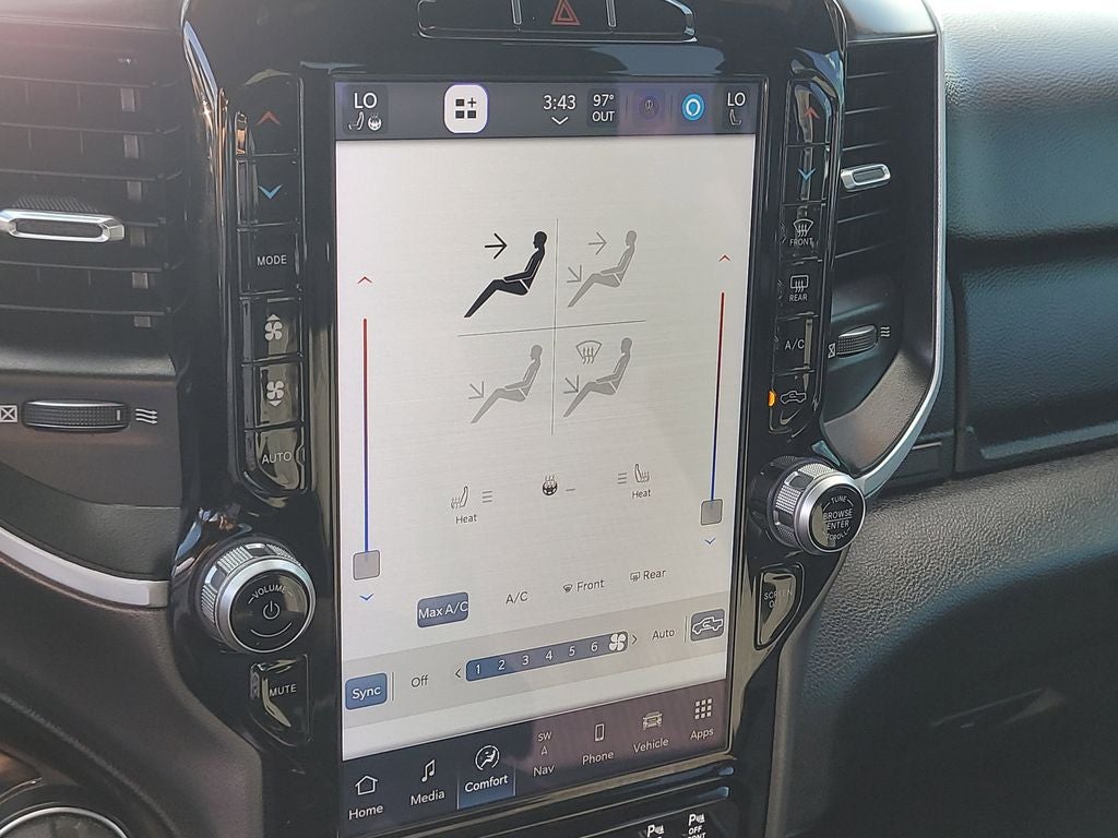 Big Horn Level 2 Equipment Group (115V Auxiliary Power Outlet, 115V Auxiliary Rear Power Outlet, 4G LTE Wi-Fi Hot Spot, 8.4 Touchscreen Display, Air Conditioning ATC w/Dual Zone Control, Apple CarPlay, Auto-Dimming Exterior Driver Mirror, Auto-Dimming Rear-View Mirror, Black Exterior Mirrors, Black Premium Power Mirrors, Bluetooth® Handsfree Phone & Audio, Class IV Receiver Hitch, Cluster 7.0 TFT Color Display, Connectivity - US/Canada, Convex Wide-Angle Mirror Insert, Exterior Mirrors Courtesy Lamps, Exterior Mirrors w/Heating Element, Exterior Mirrors w/Supplemental Signals, For Details, Visit DriveUconnect.com, For More Info, Call 800-643-2112, Global Telematics Box Module (TBM), Glove Box Lamp, Google Android Auto, GPS Antenna Input, Heated Front Seats, Heated Steering Wheel, Integrated Center Stack Radio, Media Hub w/2 Charge Only USBs, ParkSense Front/Rear Park Assist w/Stop, Power 2-Way Driver Lumbar Adjust, Power 8-Way Driver Seat, Power Adjustable Pedals, Power-Folding Mirrors, Radio: Uconnect 5 W w/8.4 Display, Rear Dome w/On/Off Switch Lamp, Rear Power Sliding Window, Rear Window Defroster, Remote Start System, Security Alarm, SiriusXM Radio Service, SiriusXM Satellite Radio, Sun Visors w/Illuminated Vanity Mirrors, Universal Garage Door Opener, USB Host Flip, and 400W Inverter), Quick Order Package 23Z Big Horn (Big Horn Badge), Quick Order Package 24Z Big Horn, Sport Appearance Package (All Plant-Installed Decals, Black Interior Accents, Body Color Exterior Mirrors, Body Color Front Bumper, Body Color Premium Power Mirrors, Body Color Rear Bumper w/Step Pads, Bridgestone Brand Tires, Deluxe Cloth Bucket Seats, Sport Decal, 3 Rear Seat Head Restraints, 4 Way Front Headrests, Bucket Seats, Delete LED Lamp - Floor Console Bin, Front Seat Back Map Pockets, Full Length Floor Console, Manual Adjust 4-Way Front Passenger Seat, and Rear 60/40 Folding Seat), 1500 Big Horn/Lone Star, 4D Quad Cab, HEMI 5.7L V8 Multi Displacement VVT, 8-Speed Automatic, RWD, Diamond Black Crystal Pearlcoat, Black Cloth, 12 Touchscreen Display, 4-Wheel Disc Brakes, 48V Belt Starter Generator, 6 Speakers, 9 Amplified Speakers w/Subwoofer, ABS brakes, Air Conditioning, All R1 High Radios, All Radio Equipped Vehicles, Alloy wheels, AM/FM radio, Brake assist, Bumpers: chrome, Cloth Bench Seat, Compass, Connected Travel & Traffic Services, Delay-off headlights, Disassociated Touchscreen Display, Driver door bin, Dual front impact airbags, Dual front side impact airbags, Electronic Stability Control, Emergency communication system: SiriusXM Guardian, Front anti-roll bar, Front Center Armrest w/Storage, Front fog lights, Front reading lights, Front wheel independent suspension, Fully automatic headlights, GPS Navigation, HD Radio, Heated door mirrors, Illuminated entry, Integrated Voice Command w/Bluetooth®, Leather steering wheel, LED Footwell Lighting, Low tire pressure warning, Occupant sensing airbag, Outside temperature display, Overhead airbag, Overhead console, Panic alarm, ParkView Rear Back-Up Camera, Passenger door bin, Passenger vanity mirror, Power door mirrors, Power steering, Power windows, Radio data system, Radio: Uconnect 3 w/5 Display, Radio: Uconnect 5 Nav w/12.0 Display, Rear anti-roll bar, Rear seat center armrest, Rear step bumper, Remote keyless entry, SiriusXM w/360L, Speed control, Split folding rear seat, Steering wheel mounted audio controls, Tachometer, Telescoping steering wheel, Tilt steering wheel, Traction control, Trip computer, Variably intermittent wipers, Voltmeter, Wheels: 18 x 8 Cast-Aluminum Painted, and Wheels: 20 x 9 Aluminum Chrome ClaD.