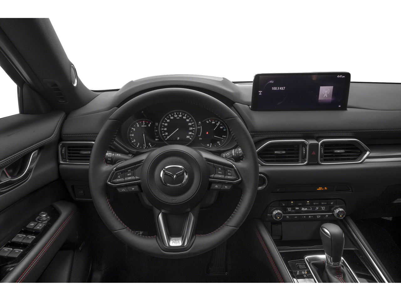 Roof Rails & Cross Bars Package, 10 Speakers, 4-Wheel Disc Brakes, 4.411 Axle Ratio, ABS brakes, Air Conditioning, Alloy wheels, AM/FM radio: SiriusXM, AppLink/Apple CarPlay and Android Auto, Auto High-beam Headlights, Auto-dimming Rear-View mirror, Automatic temperature control, Black Lug Nuts & Black Wheel Locks, Brake assist, Bumpers: body-color, Delay-off headlights, Driver door bin, Driver vanity mirror, Dual front impact airbags, Dual front side impact airbags, E911 Automatic Emergency Notification, Electronic Stability Control, Emergency communication system: MAZDA CONNECT, Exterior Parking Camera Rear, Four wheel independent suspension, Front anti-roll bar, Front Bucket Seats, Front Center Armrest w/Storage, Front dual zone A/C, Front reading lights, Fully automatic headlights, Garage door transmitter: HomeLink, Heads-Up Display, Heated door mirrors, Heated front seats, Heated rear seats, Heated steering wheel, Heated/Ventilated Front Bucket Seats, Illuminated Door Sill Trim Plates, Illuminated entry, Infotainment System Voice Command, Leather Seat Trim, Leather Shift Knob, Leather steering wheel, Low tire pressure warning, Machine Gray Metallic Paint, Memory seat, Multifunction Commander Control, Occupant sensing airbag, Outside temperature display, Overhead airbag, Overhead console, Pandora, Panic alarm, Passenger door bin, Passenger vanity mirror, Power door mirrors, Power driver seat, Power Liftgate, Power moonroof, Power passenger seat, Power steering, Power windows, Radio Broadcast Data System Program Information, Radio data system, Radio: AM/FM/HD Audio System, Rain sensing wipers, Rear anti-roll bar, Rear Bumper Guard, Rear reading lights, Rear seat center armrest, Rear window defroster, Rear window wiper, Remote keyless entry, SMS Text Msg Audio Delivery & Reply, Speed control, Speed-sensing steering, Split folding rear seat, Spoiler, Steering wheel mounted audio controls, Tachometer, Telescoping steering wheel, Tilt steering wheel, Traction control, Trip computer, Turn signal indicator mirrors, Variably intermittent wipers, Ventilated front seats, and Wheels: 19 x 7J Aluminum Alloy.