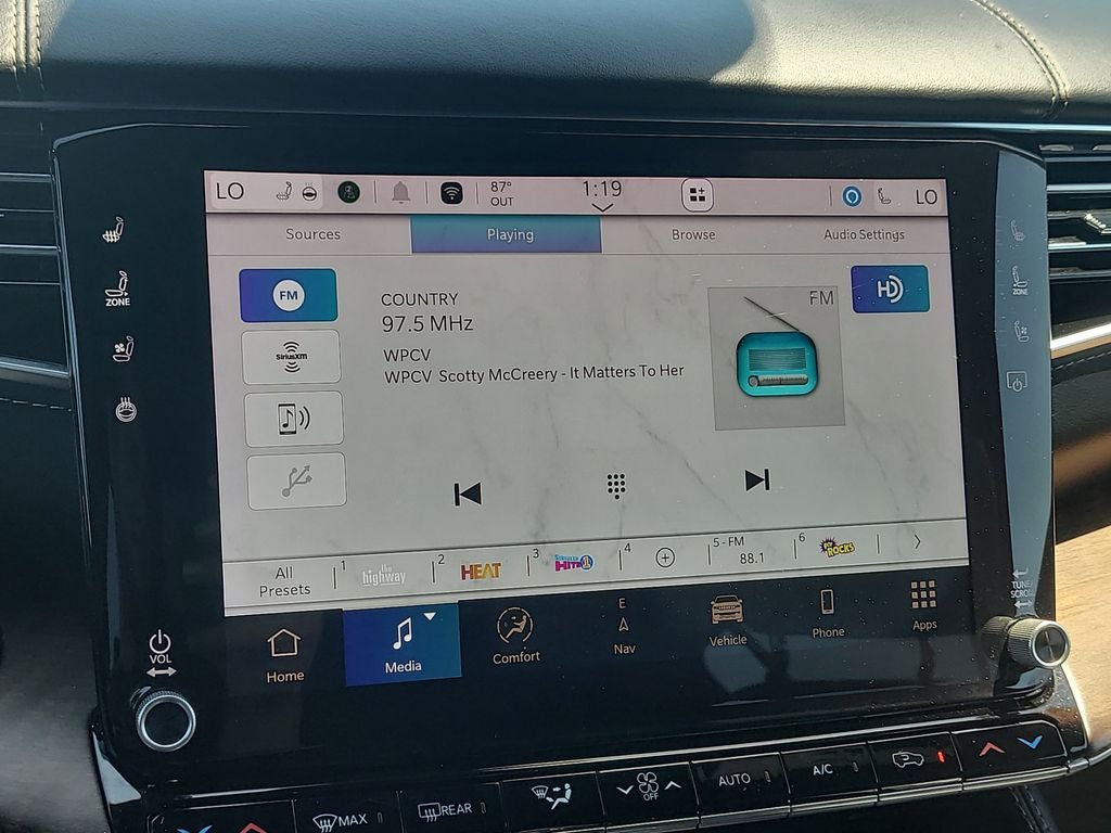 Comfort and convenience are paramount in the Grand Wagoneer L, with features like Heated Front and Rear Seats, Ventilated Front Seats, and a Power Liftgate elevating your driving experience. The Leather Trimmed Bucket Seats and Genuine Wood Accents throughout the cabin exude a refined and sophisticated ambiance, making every ride a true pleasure.