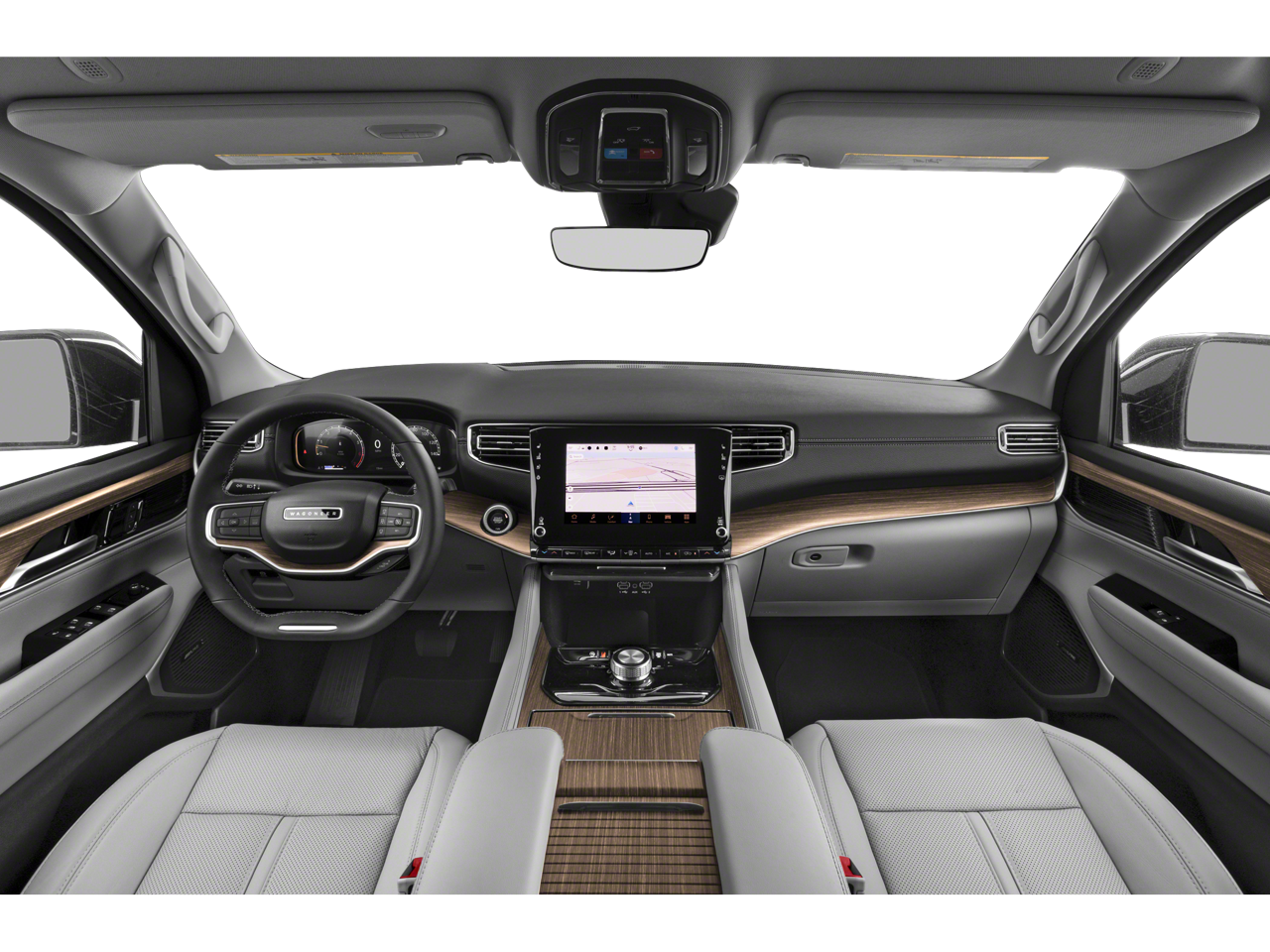 Flexible Seating Group (7-Passenger Seating, Floor Console w/Cupholder, and Power Tip/Slide Recline 2nd Row Buckets), Quick Order Package 25J, 10 Speakers, 3.55 Rear Axle Ratio, 3rd row seats: bench, 4-Wheel Disc Brakes, ABS brakes, Adjustable pedals, Air Conditioning, Alloy wheels, AM/FM radio: SiriusXM with 360L, Anti-whiplash front head restraints, Apple CarPlay/Android Auto, Audio memory, Auto-dimming door mirrors, Auto-dimming Rear-View mirror, Auto-leveling suspension, Automatic temperature control, Brake assist, Bumpers: body-color, Compass, Delay-off headlights, Driver door bin, Driver vanity mirror, Driver's Seat Mounted Armrest, Dual front impact airbags, Dual front side impact airbags, Electronic Stability Control, Emergency communication system: Wagoneer Connect, Exterior Parking Camera Rear, Four wheel independent suspension, Front anti-roll bar, Front Bucket Seats, Front Center Armrest w/Storage, Front dual zone A/C, Front fog lights, Front reading lights, Fully automatic headlights, Garage door transmitter, Genuine wood console insert, Genuine wood dashboard insert, Genuine wood door panel insert, Heated door mirrors, Heated front seats, Heated steering wheel, Illuminated entry, Knee airbag, Leather Trimmed Bucket Seats, Low tire pressure warning, Memory seat, Navigation System, Normal Duty Suspension, Occupant sensing airbag, Outside temperature display, Overhead airbag, Overhead console, Panic alarm, Passenger door bin, Passenger seat mounted armrest, Passenger vanity mirror, Pedal memory, Power adjustable front head restraints, Power door mirrors, Power driver seat, Power Liftgate, Power passenger seat, Power steering, Power windows, Radio data system, Radio: Uconnect 5 Nav w/10.1 Display, Rain sensing wipers, Rear air conditioning, Rear anti-roll bar, Rear reading lights, Rear seat center armrest, Rear window defroster, Rear window wiper, Reclining 3rd row seat, Remote keyless entry, Security system, Speed control, Speed-sensing steering, Speed-Sensitive Wipers, Split folding rear seat, Steering wheel memory, Steering wheel mounted audio controls, Tachometer, Telescoping steering wheel, Tilt steering wheel, Traction control, Trip computer, Turn signal indicator mirrors, Variably intermittent wipers, Ventilated front seats, Voltmeter, and Wheels: 20 x 9.0 Premium 2 Aluminum.