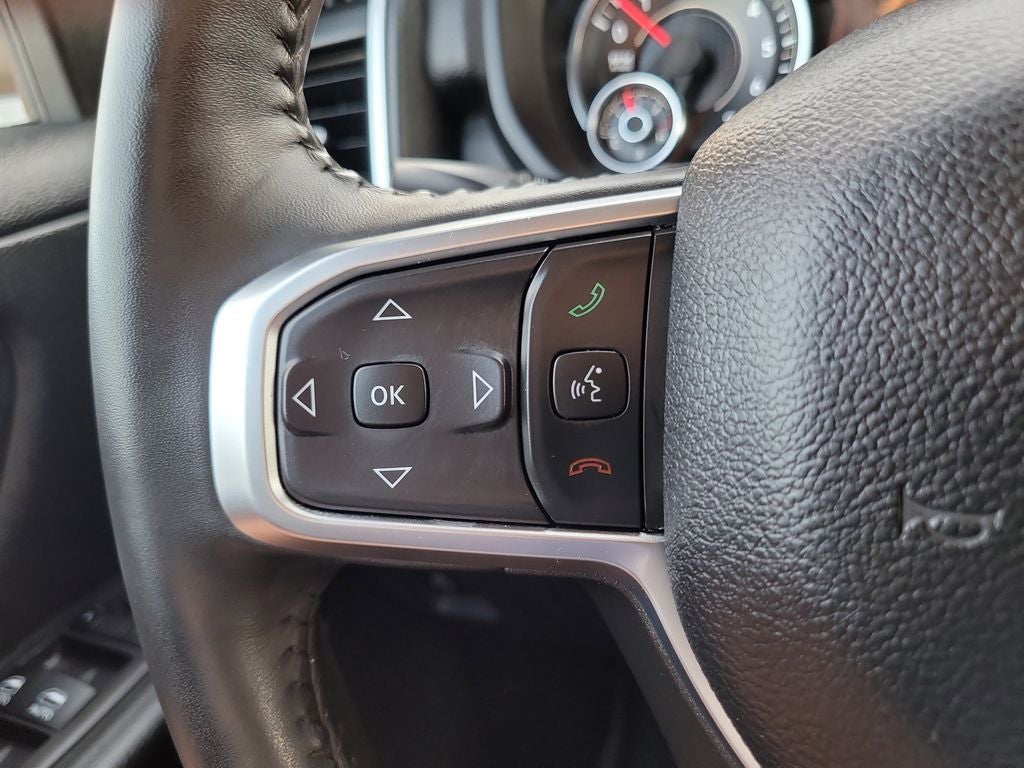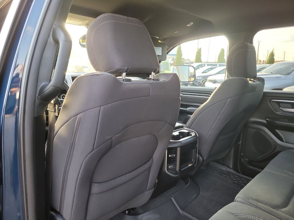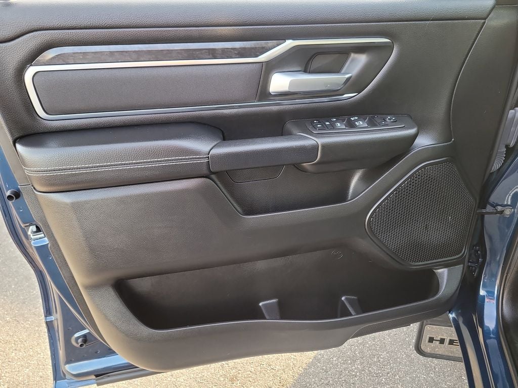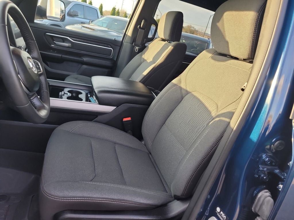 Big Horn Level 1 Equipment Group (2nd Row In Floor Storage Bins, 4G LTE Wi-Fi Hot Spot, Apple CarPlay, Auto-Dimming Exterior Driver Mirror, Auto-Dimming Rear-View Mirror, Black Premium Power Mirrors, Bluetooth® Handsfree Phone & Audio, Class IV Receiver Hitch, Connectivity - US/Canada, Convex Wide-Angle Exterior Mirror Insert, Exterior Mirrors Courtesy Lamps, Exterior Mirrors w/Heating Element, Exterior Mirrors w/Supplemental Signals, For Details, Visit DriveUconnect.com, For More Info, Call 800-643-2112, Front Fog Lamps, Global Telematics Box Module (TBM), Glove Box Lamp, Google Android Auto, Heated Front Seats, Heated Steering Wheel, Passenger Sun Visor w/Illuminated Mirror, Power-Folding Mirrors, Radio: Uconnect 5 W w/8.4 Display, Rear Dome w/On/Off Switch Lamp, Rear Power Sliding Window, Rear Window Defroster, SiriusXM Radio Service, SiriusXM Satellite Radio, and USB Host Flip), Quick Order Package 23Z Big Horn, Quick Order Package 27Z Big Horn, Sport Appearance Package (Black Interior Accents, Body Color Door Handles, Body Color Exterior Mirrors, Body Color Front Bumper, Body Color Premium Power Mirrors, Body Color Rear Bumper w/Step Pads, Deluxe Cloth Bucket Seats, Grille Surround 1 Body Color Texture 2 Black, RAM Grille Badge - Chrome, 3 Rear Seat Head Restraints, 4 Way Front Headrests, Bucket Seats, Front Seat Back Map Pockets, Full Length Floor Console, Manual Adjust 4-Way Front Passenger Seat, Power 2-Way Driver Lumbar Adjust, Power 8-Way Driver Seat, Rear 60/40 Folding Seat, and Rear Center Armrest), Trailer Tow Group (Black Trailer Tow Power Mirrors, Trailer Brake Control, Trailer Light Check, Trailer Reverse Steering Control, and Trailer Tire Pressure Monitoring System), 1500 Big Horn/Lone Star, FCA US LLC Certified Pre-Owned Certified, 4D Crew Cab, HEMI 5.7L V8 Multi Displacement VVT eTorque, 8-Speed Automatic, RWD, Patriot Blue Pearlcoat, Black Cloth, 3.21 Rear Axle Ratio, 4-Wheel Disc Brakes, 48V Belt Starter Generator, 6 Speakers, 9 Amplified Speakers w/Subwoofer, ABS brakes, Air Conditioning, Alloy wheels, AM/FM radio, Anti-Spin Differential Rear Axle, Brake assist, Bumpers: chrome, Cloth Bench Seat, Compass, Delay-off headlights, Driver door bin, Dual front impact airbags, Dual front side impact airbags, Electronic Stability Control, Emergency communication system: RAM Connect, Exterior Parking Camera Rear, Front anti-roll bar, Front Center Armrest w/Storage, Front reading lights, Front wheel independent suspension, Fully automatic headlights, Heated door mirrors, Illuminated entry, Integrated Voice Command w/Bluetooth®, Leather steering wheel, Low tire pressure warning, Manufacturer's Statement of Origin, MOPAR Front & Rear Rubber Floor Mats, Occupant sensing airbag, Outside temperature display, Overhead airbag, Overhead console, Panic alarm, Passenger door bin, Passenger vanity mirror, Power door mirrors, Power steering, Power windows, Radio data system, Radio: Uconnect 3 w/5 Display, Rear anti-roll bar, Rear seat center armrest, Rear step bumper, Remote keyless entry, Remote Start System, Speed